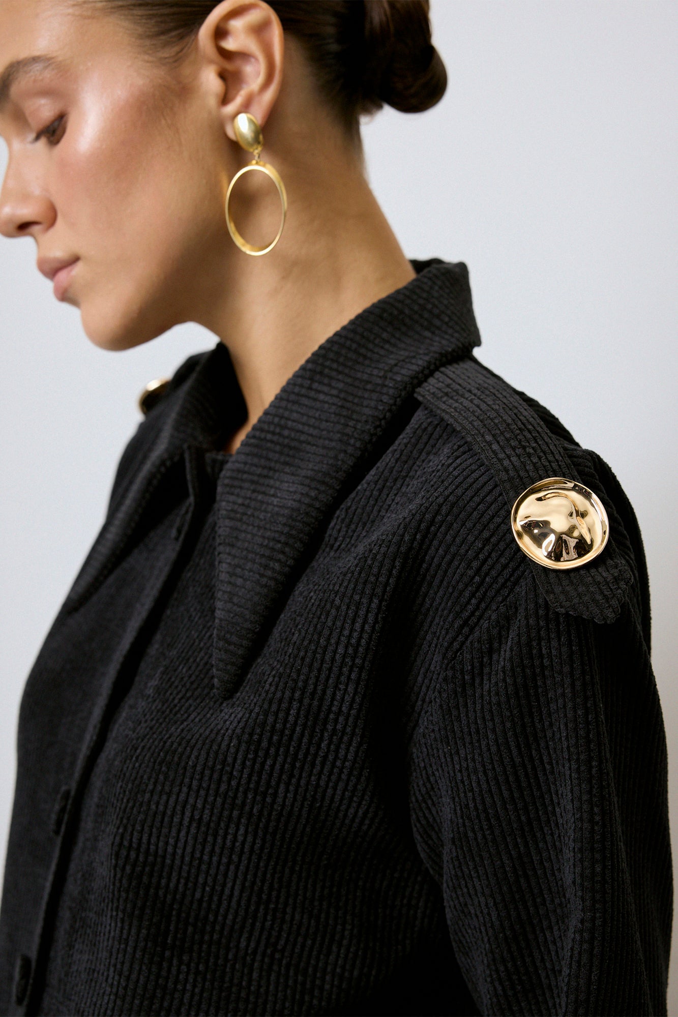 APOLET DETAYLI FİTİLLİ KADİFE GÖMLEK