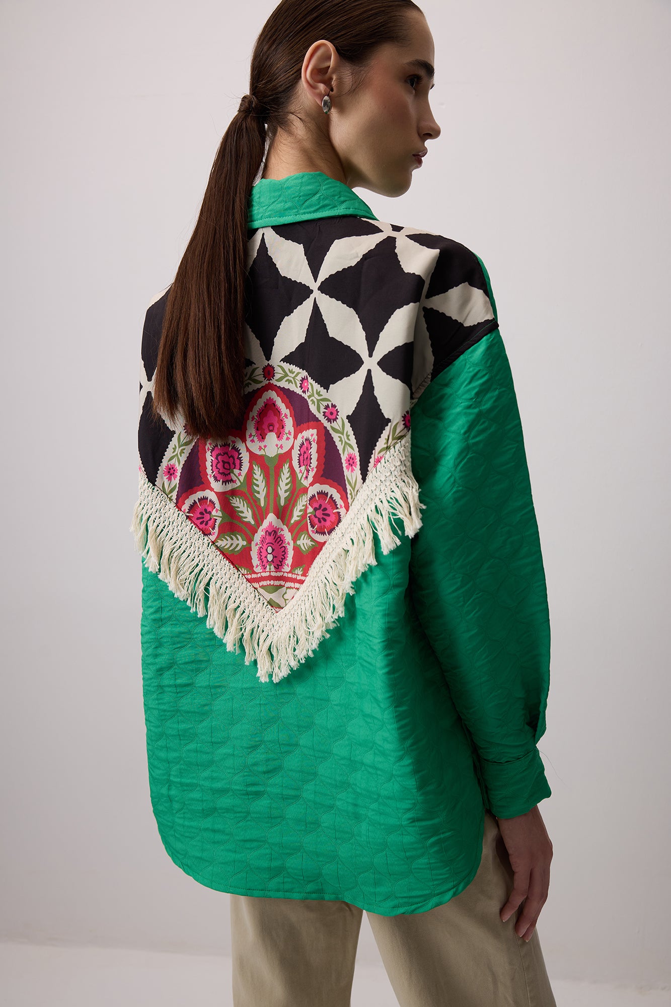 ARKASI BASKILI KAPİTONE GÖMLEK