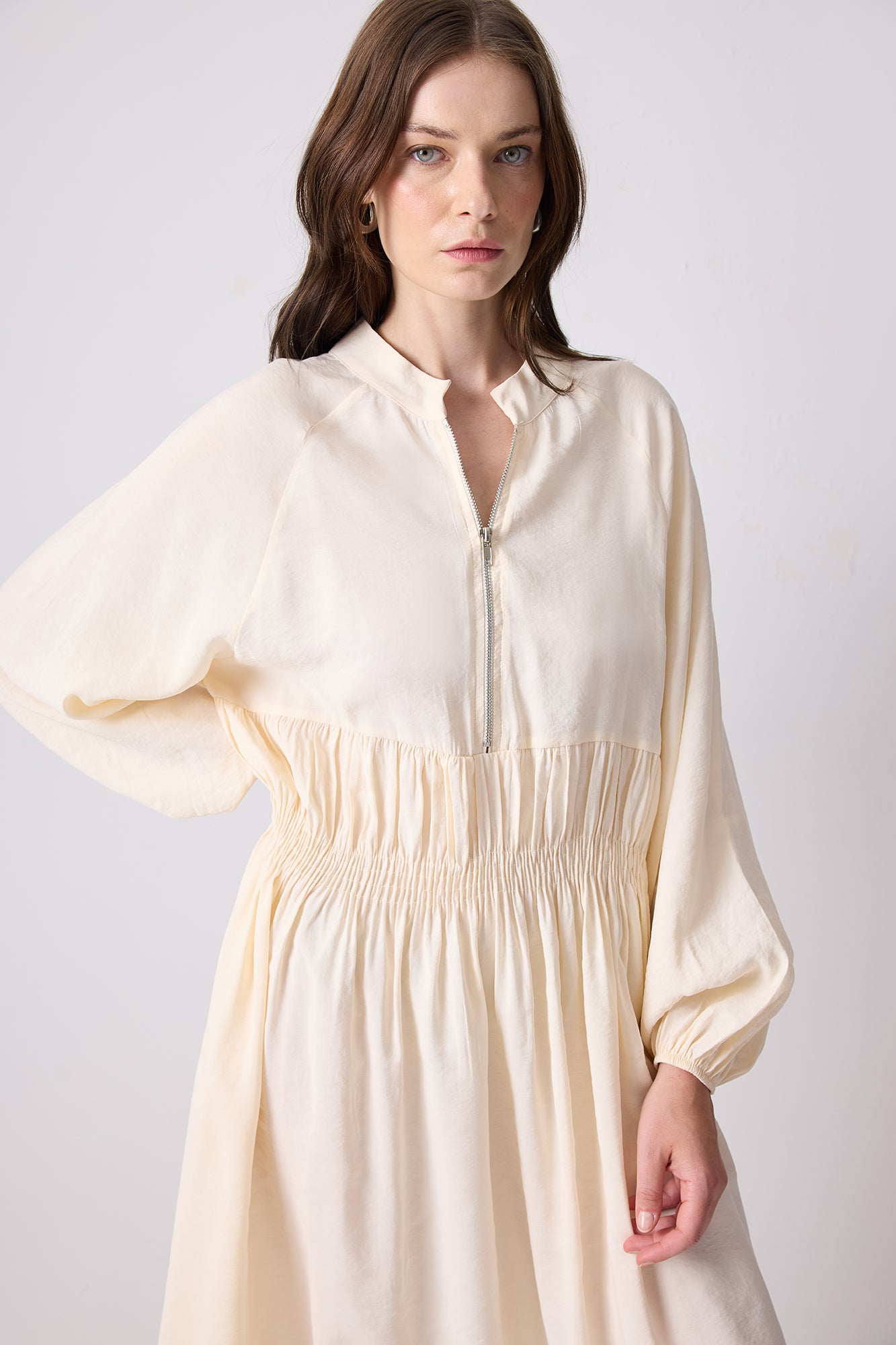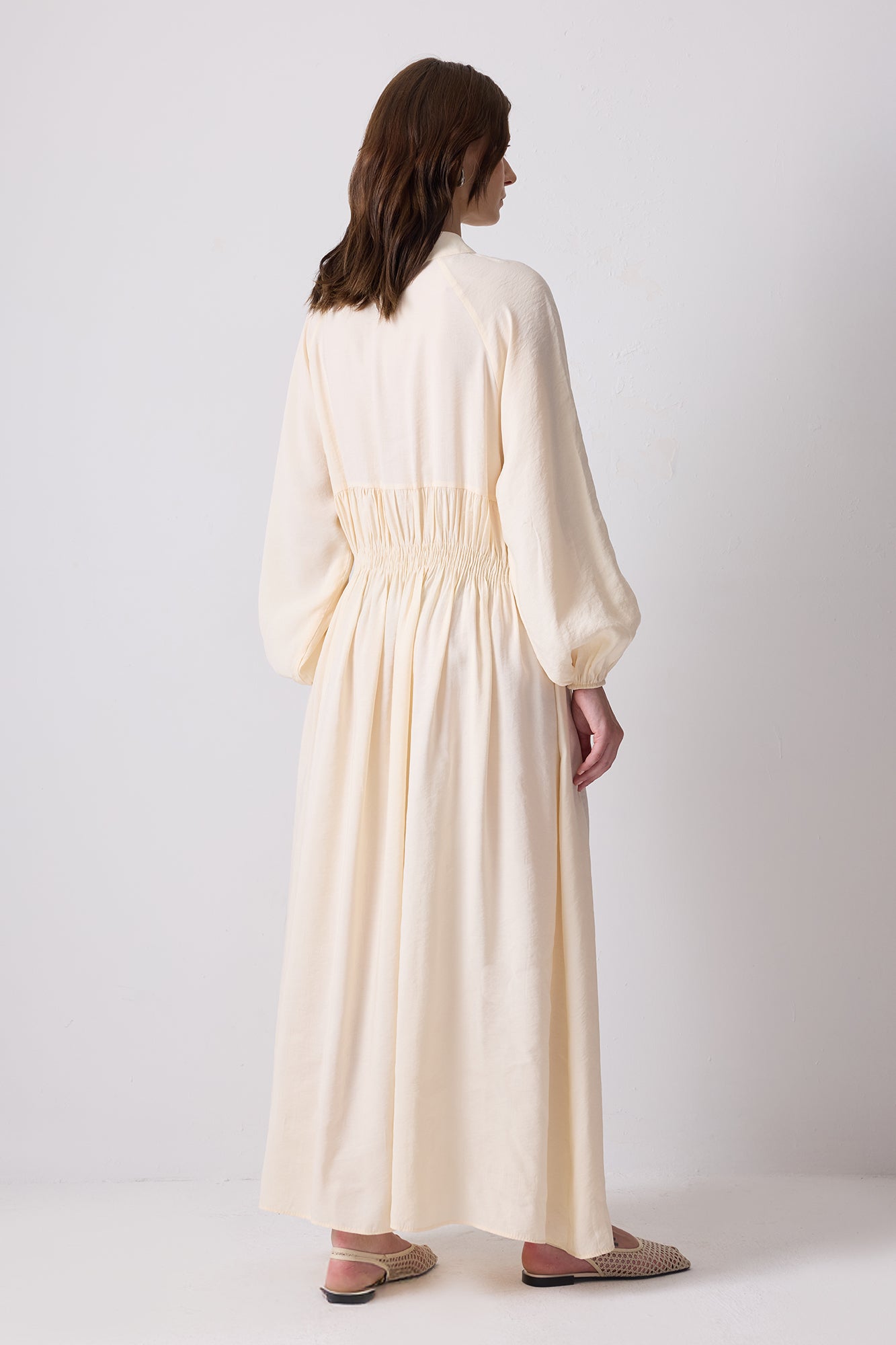 BELİ BÜZGÜLÜ OVERSIZE ELBİSE