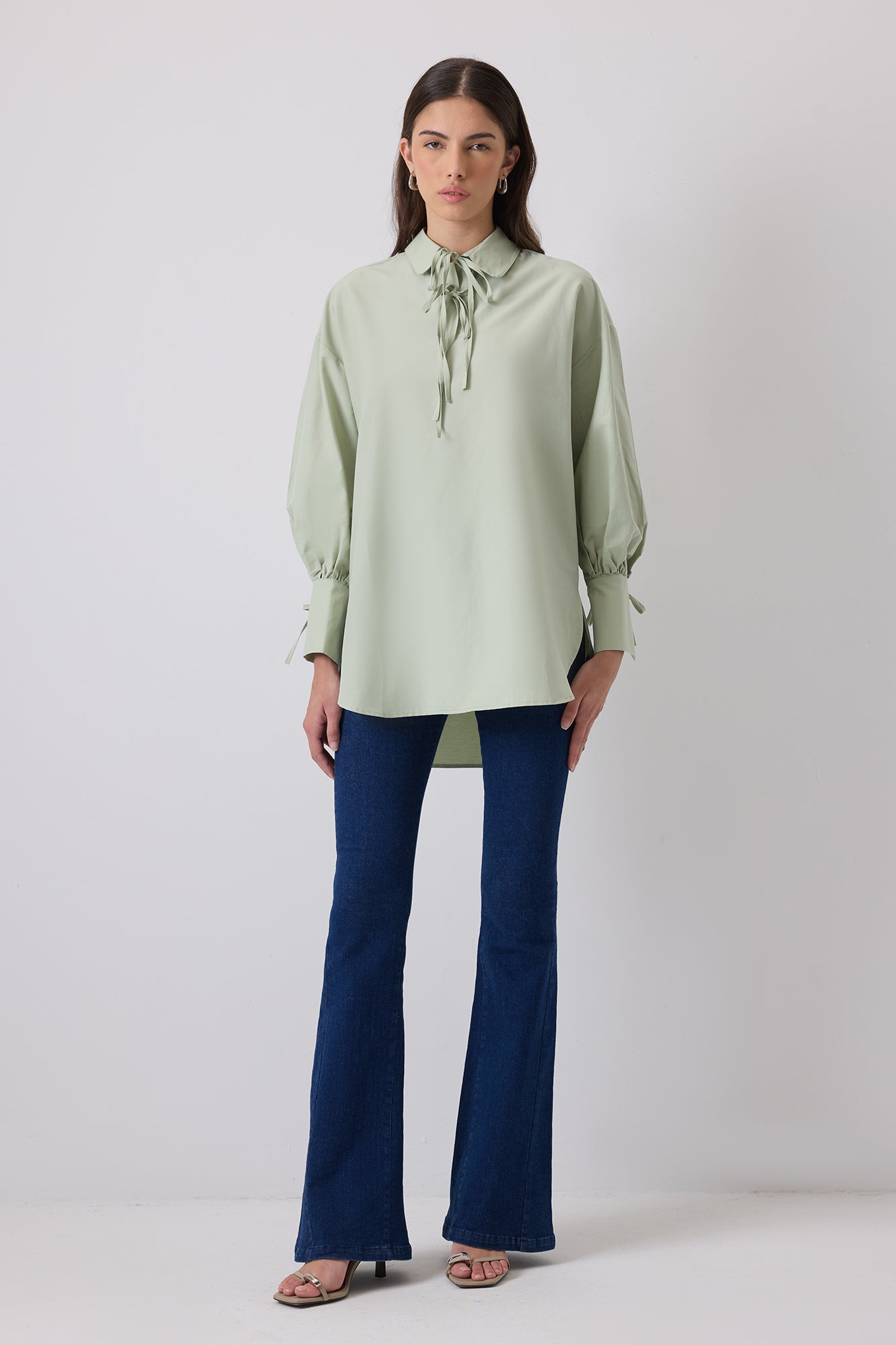 %100 PAMUKLU BİYELİ GÖMLEK YAKA TUNİK
