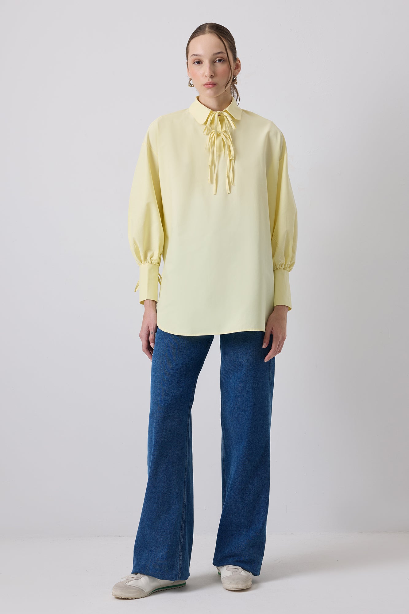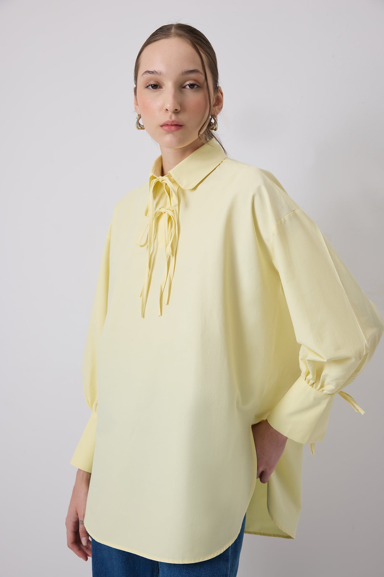 %100 PAMUKLU BİYELİ GÖMLEK YAKA TUNİK