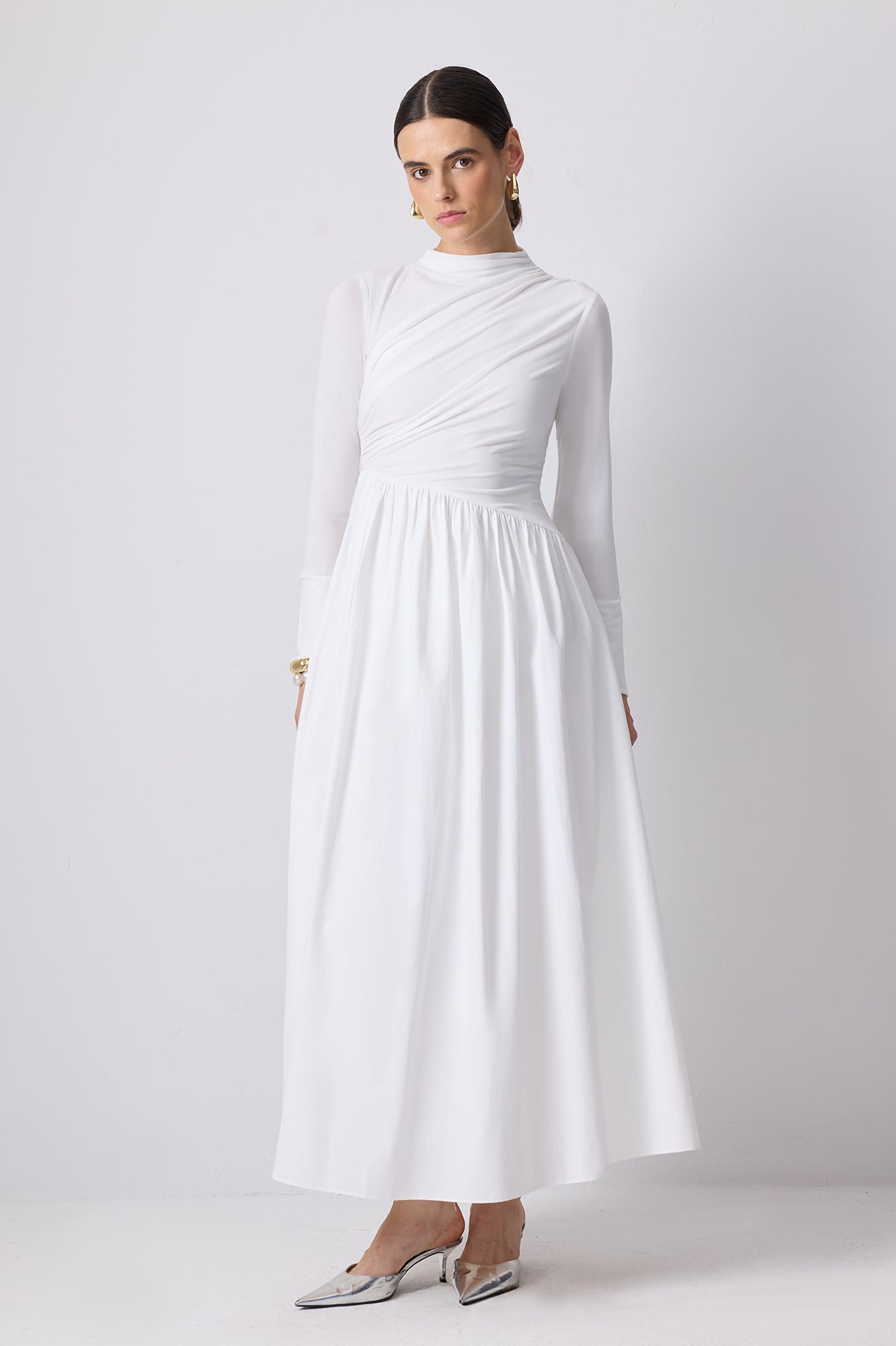DRAPE DETAYLI ASİMETRİK ELBİSE