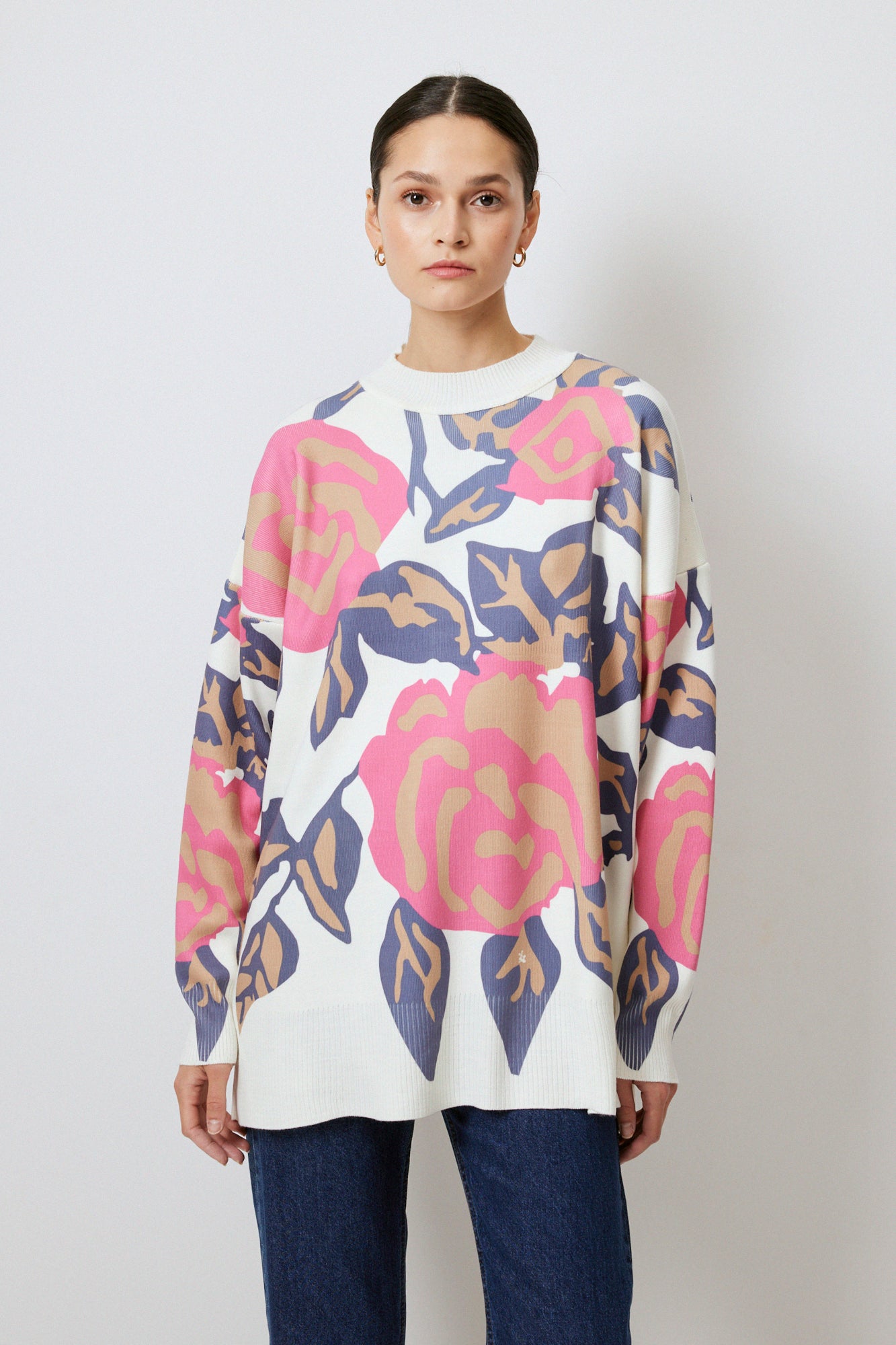 ÇİÇEK DESENLİ TRİKO KAZAK