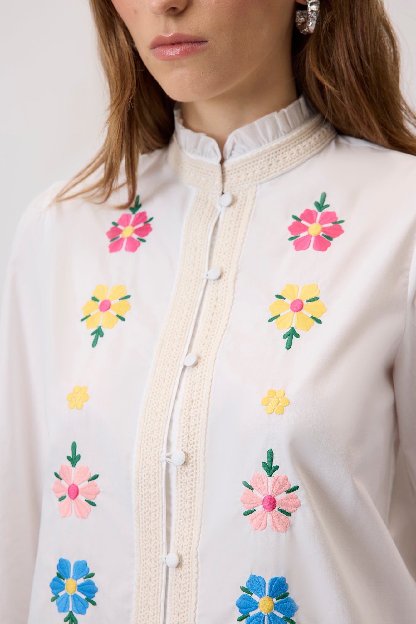 ÇİÇEK NAKIŞLI POPLİN GÖMLEK