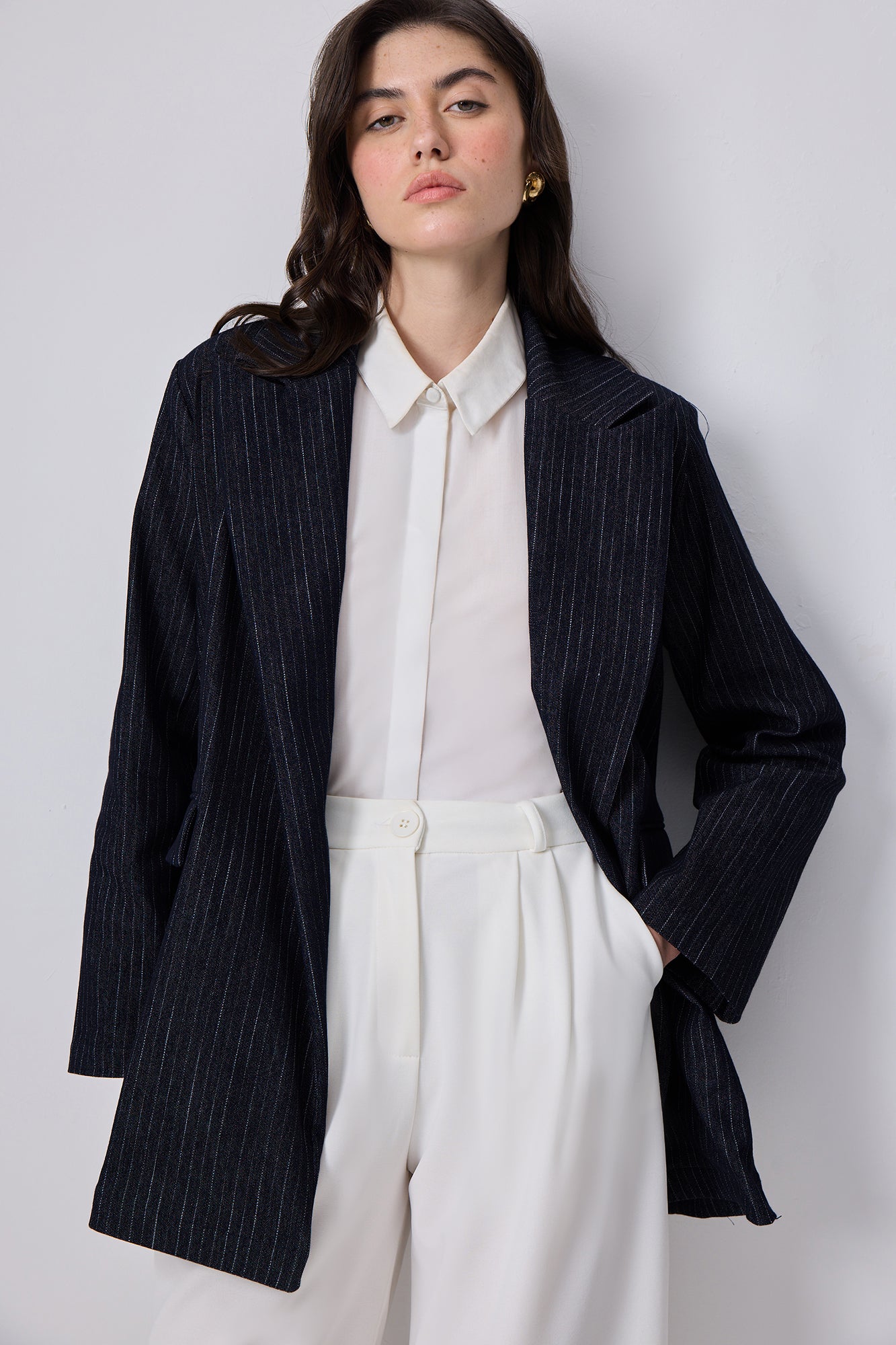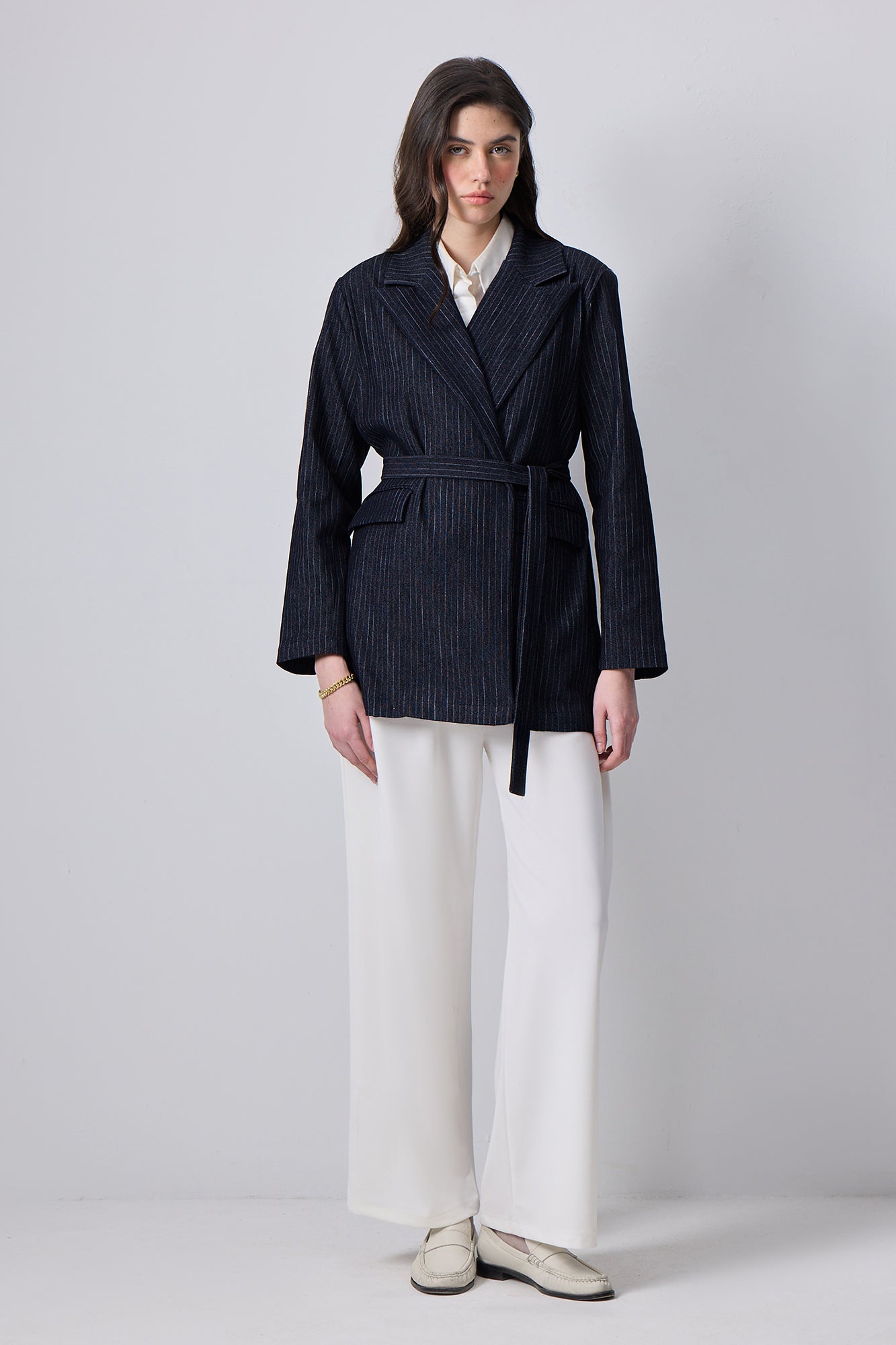 ÇİZGİLİ KEMERLİ DENIM CEKET