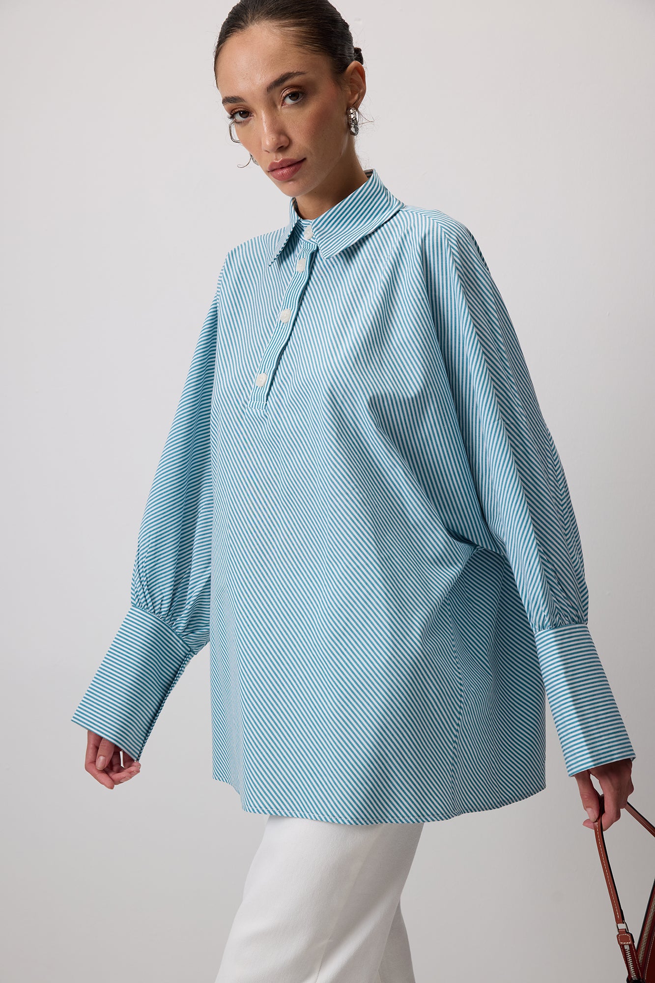 ÇİZGİLİ OVERSİZE POPLİN TUNİK