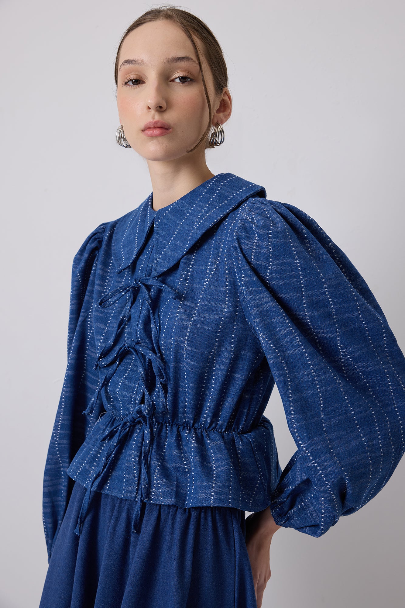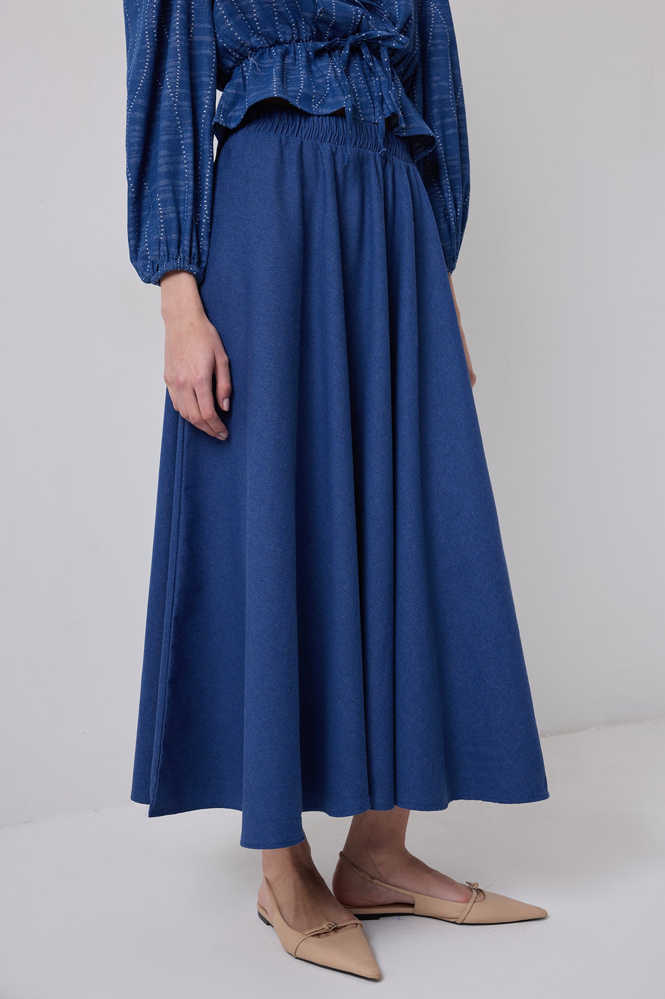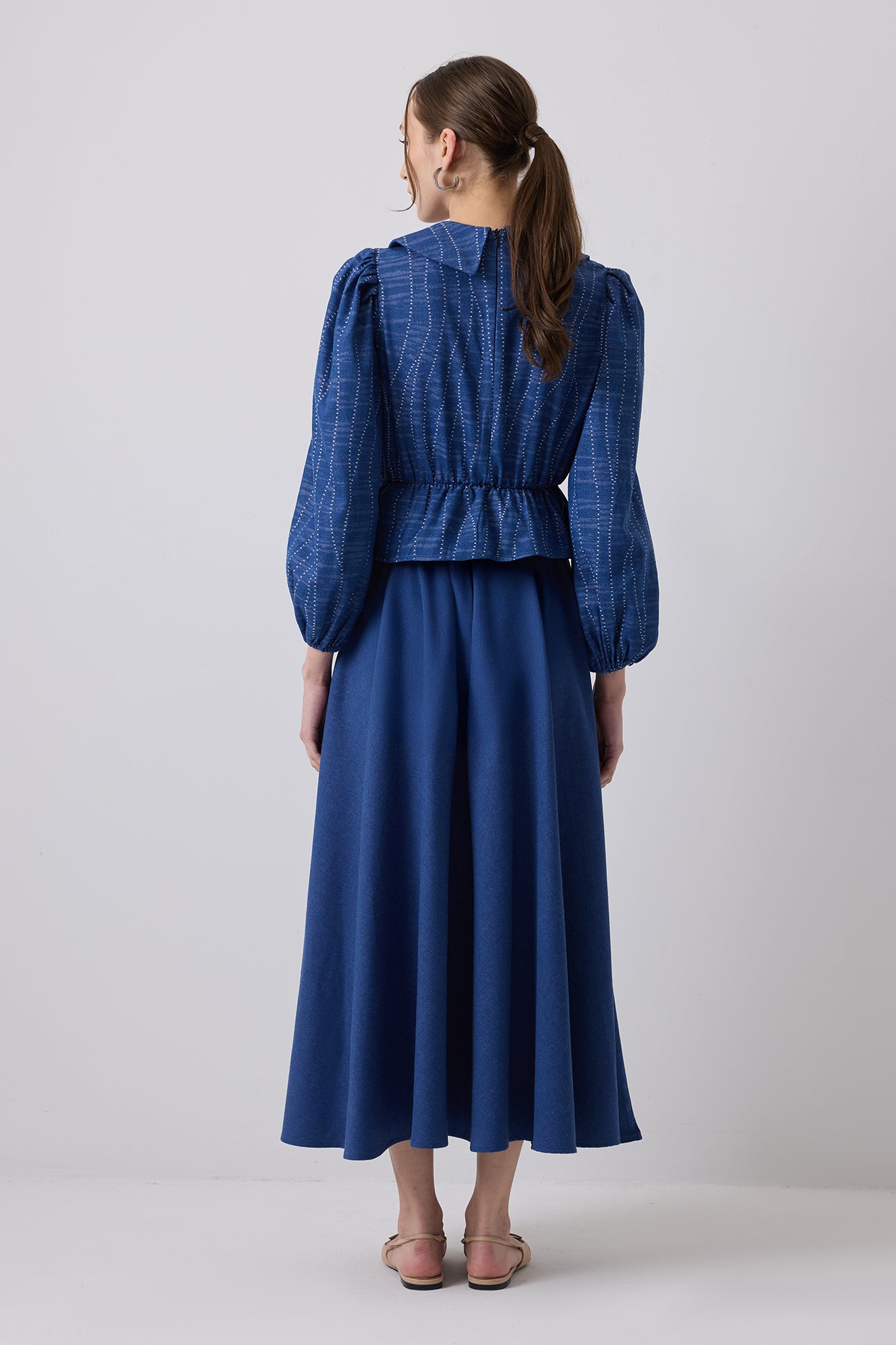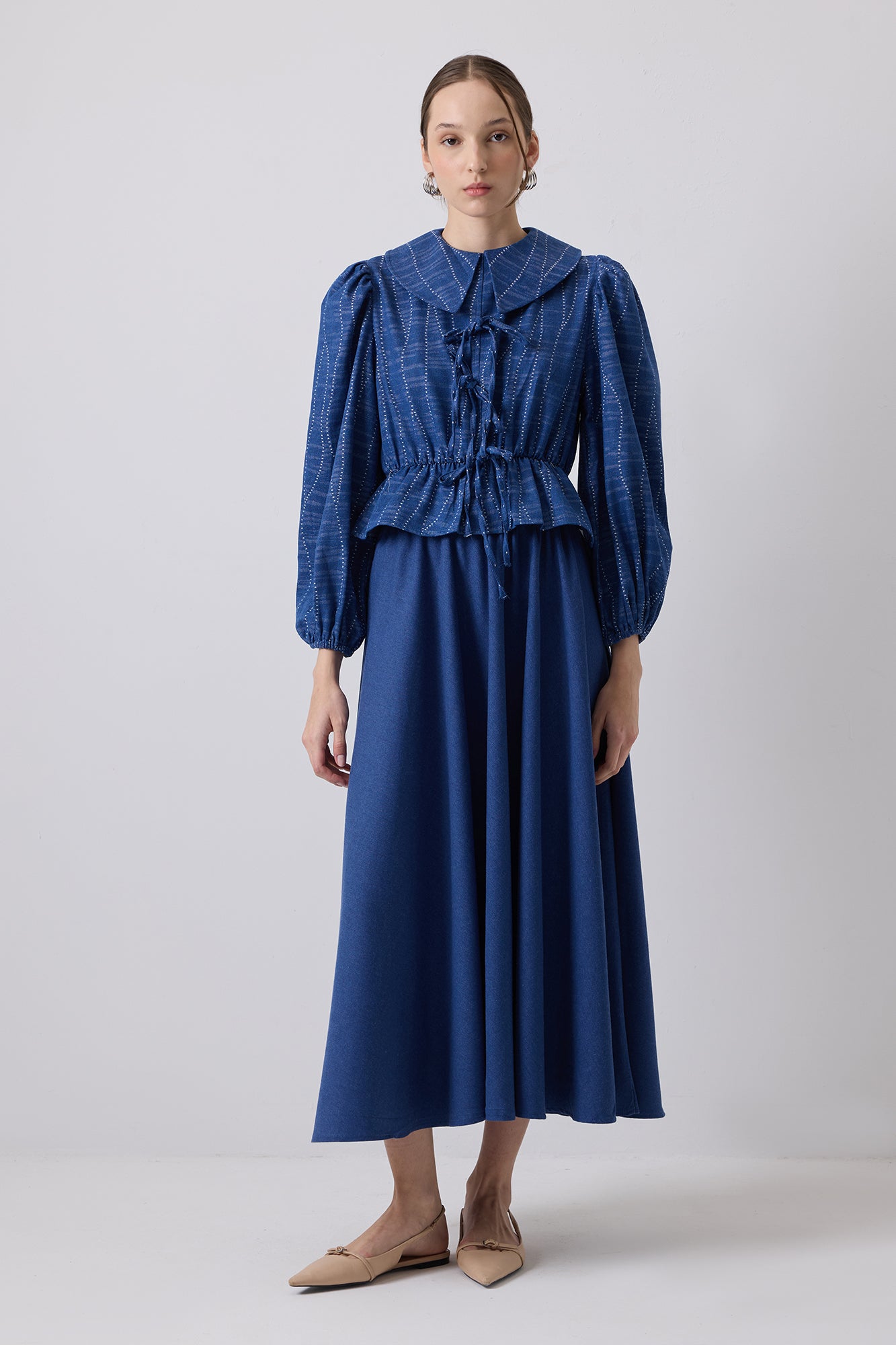 DENİM EFEKTLİ BLUZ ETEK TAKIM