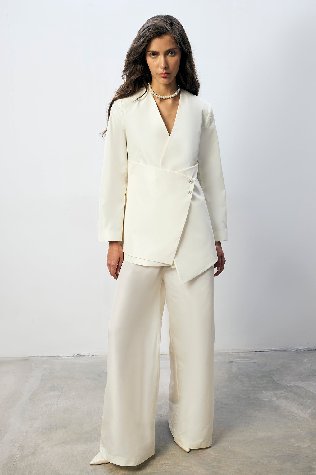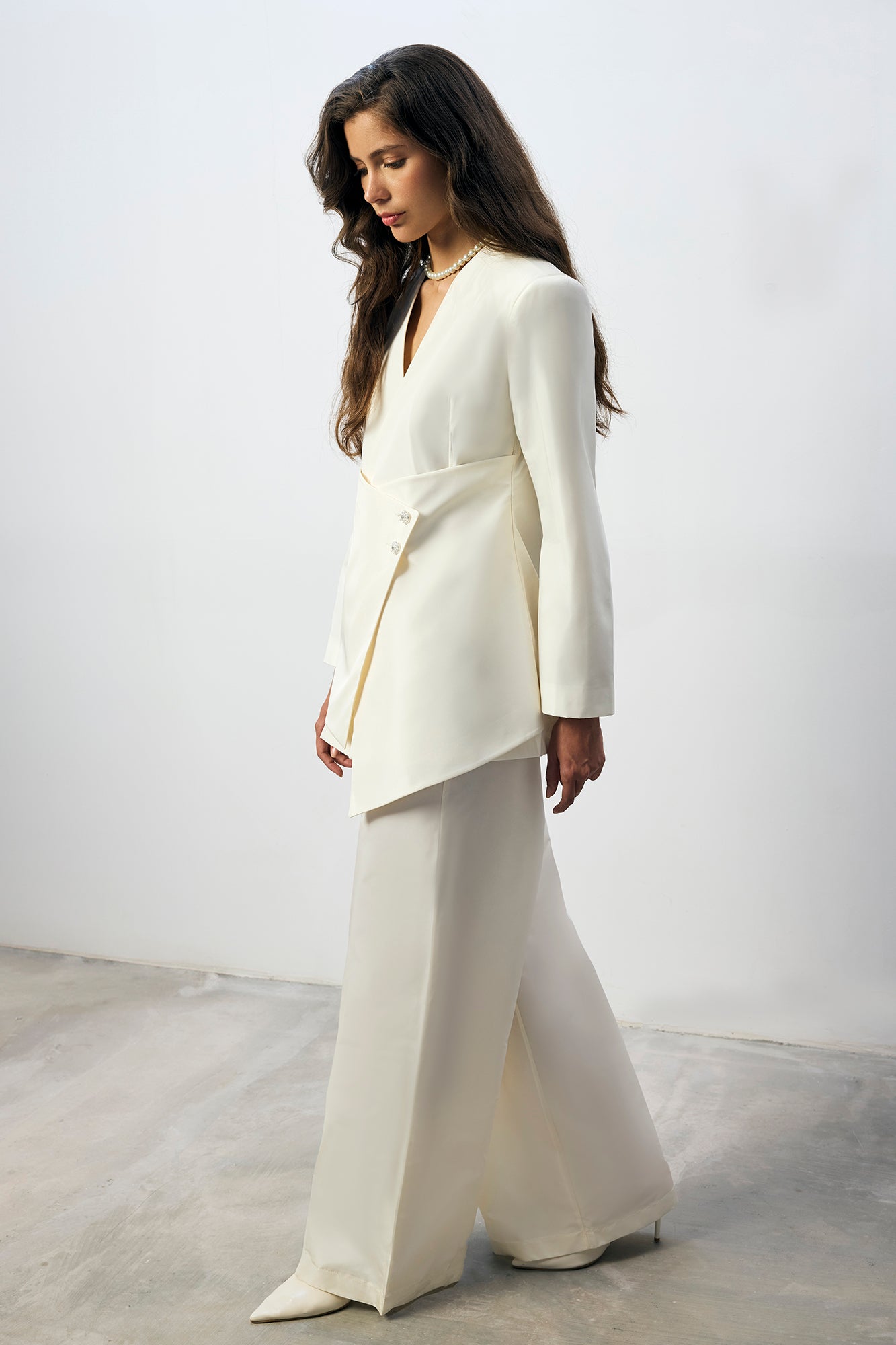 DÜĞME DETAYLI ASİMETRİK CEKET PANTOLON TAKIM