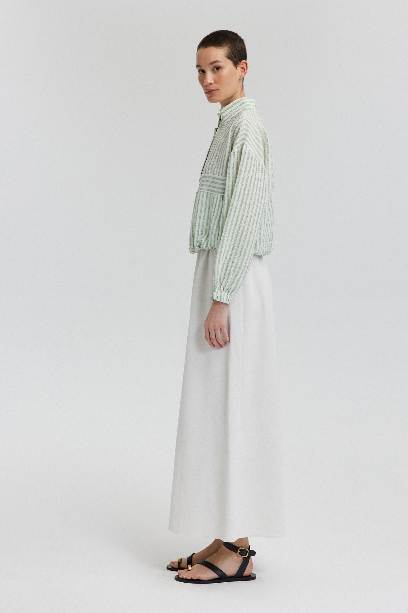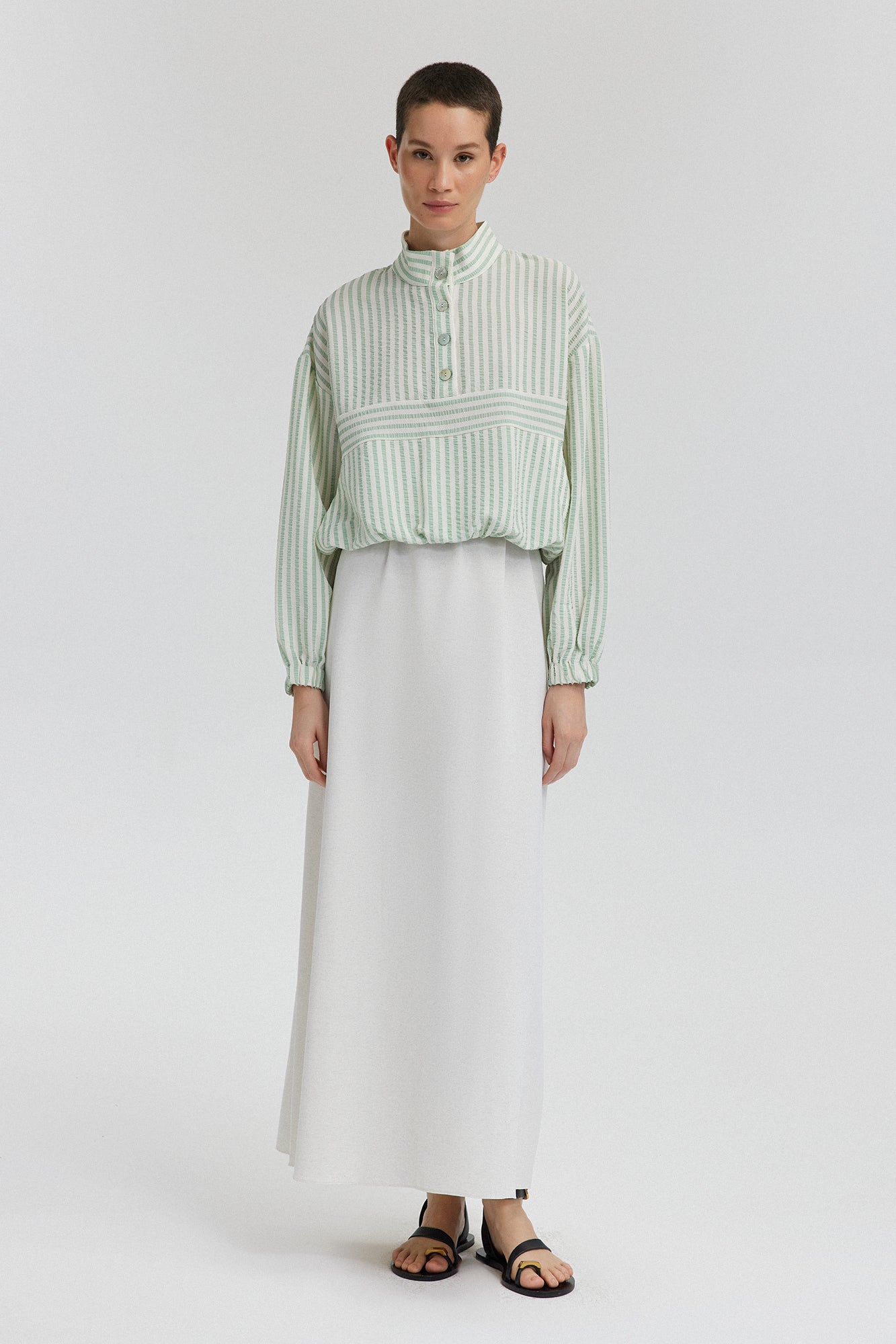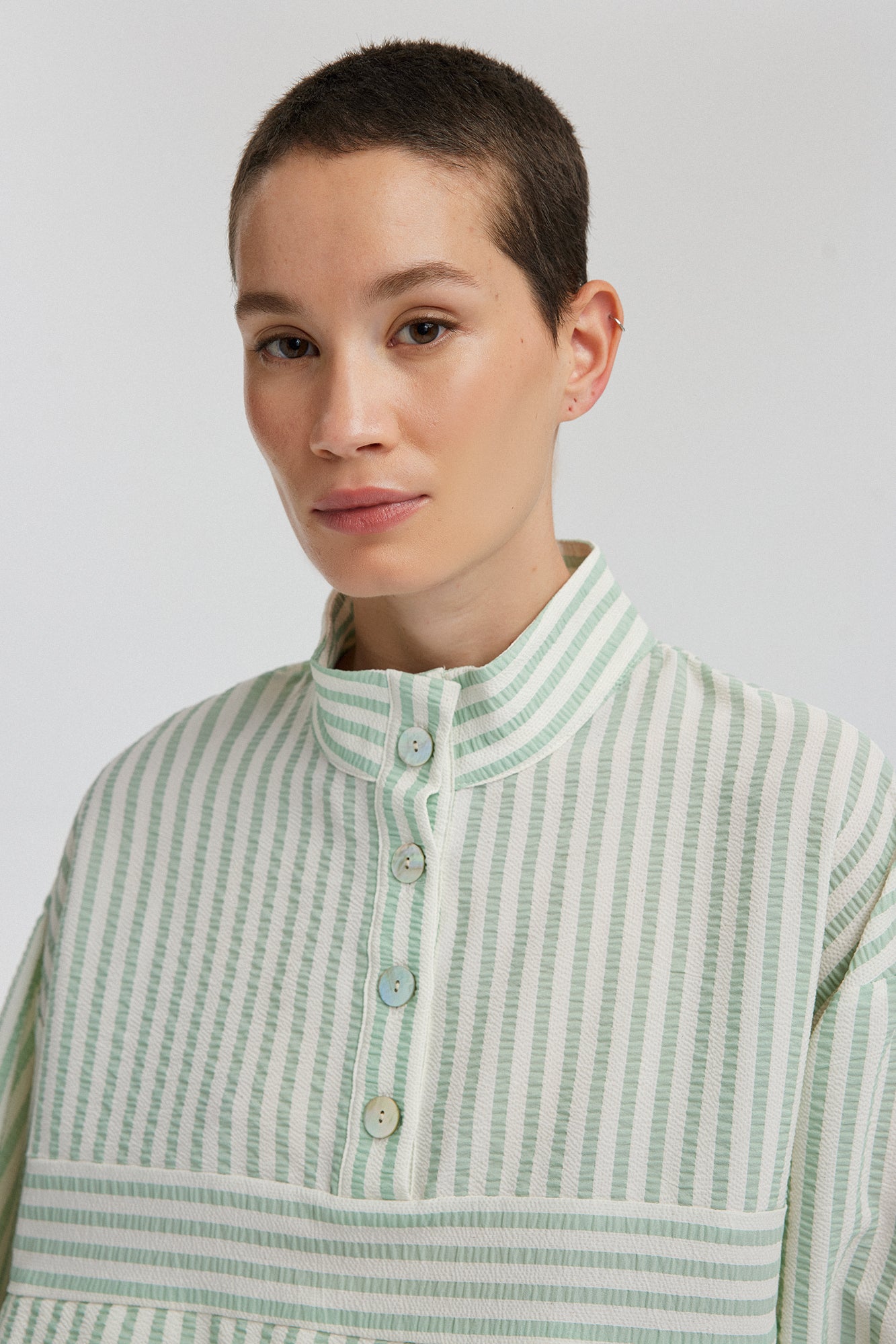 DÜĞME DETAYLI DİK YAKA BLUZ