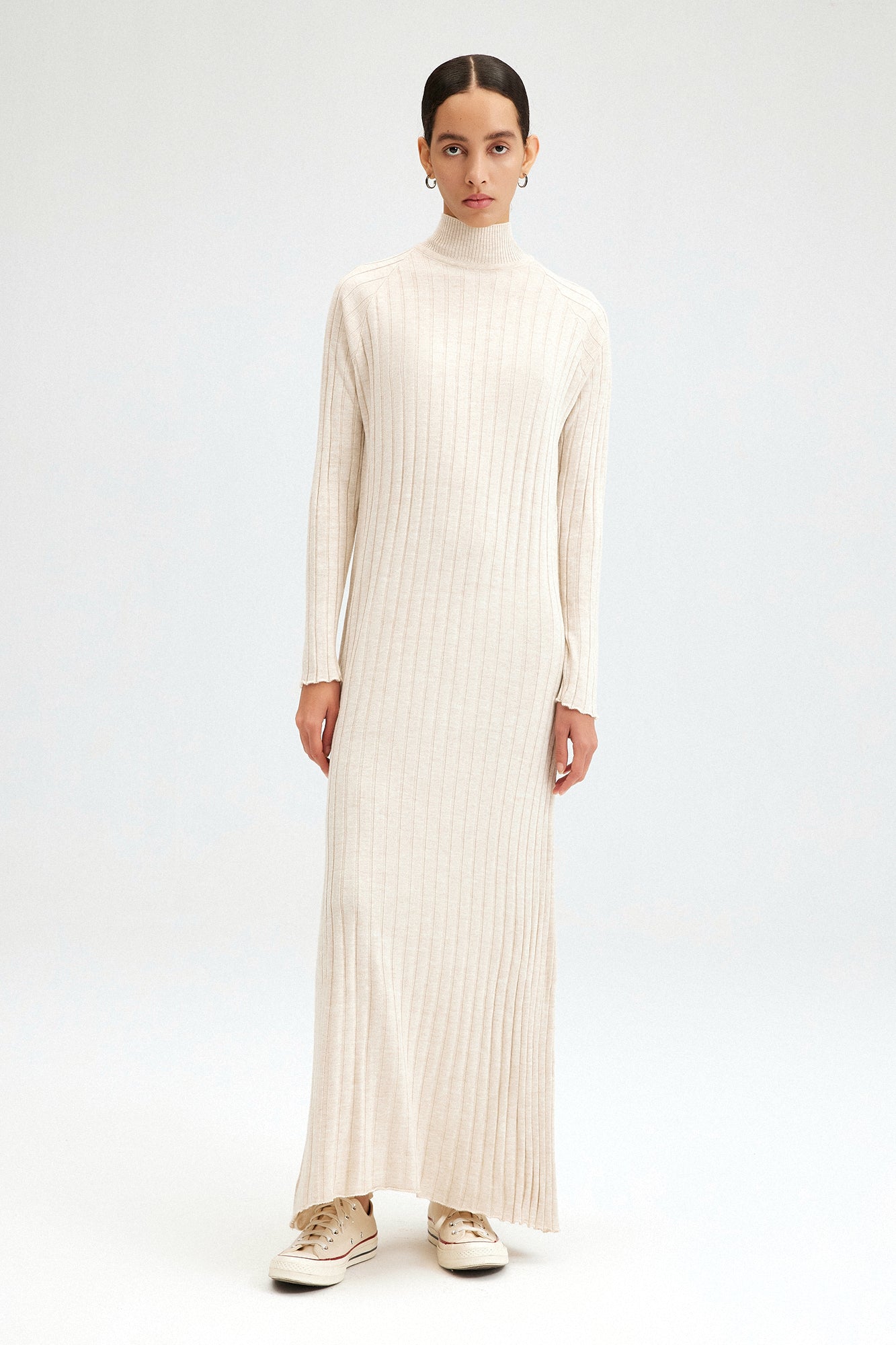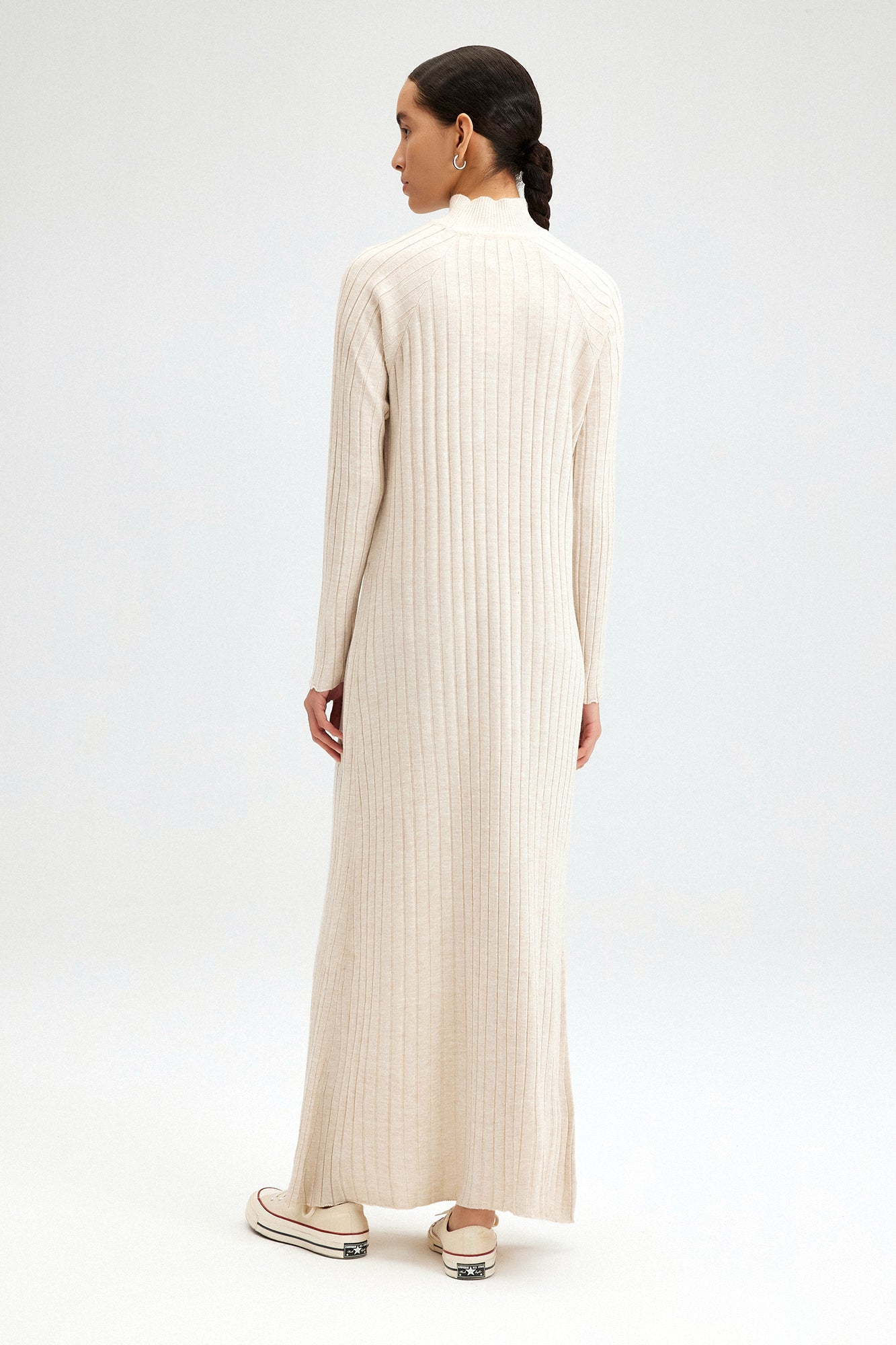 FİTİLLİ DİK YAKA TRİKO ELBİSE