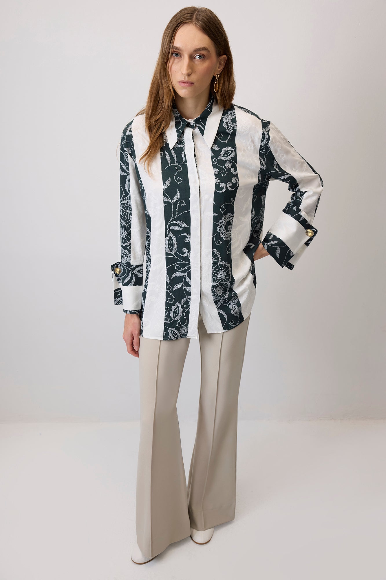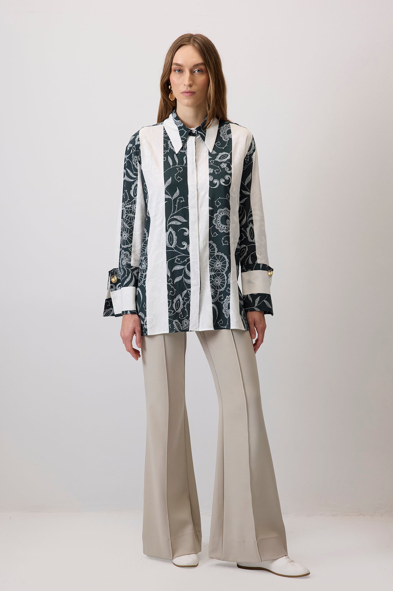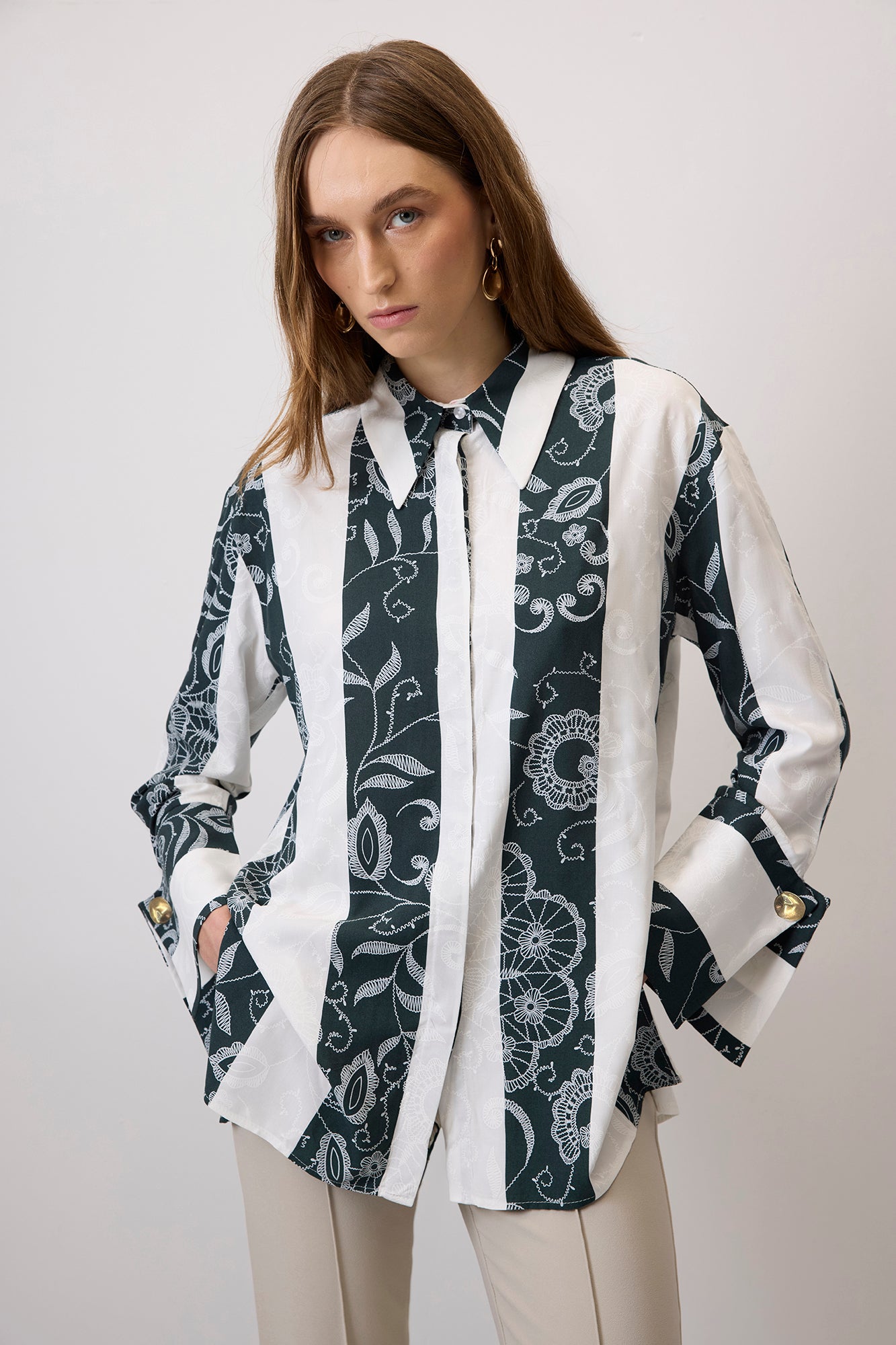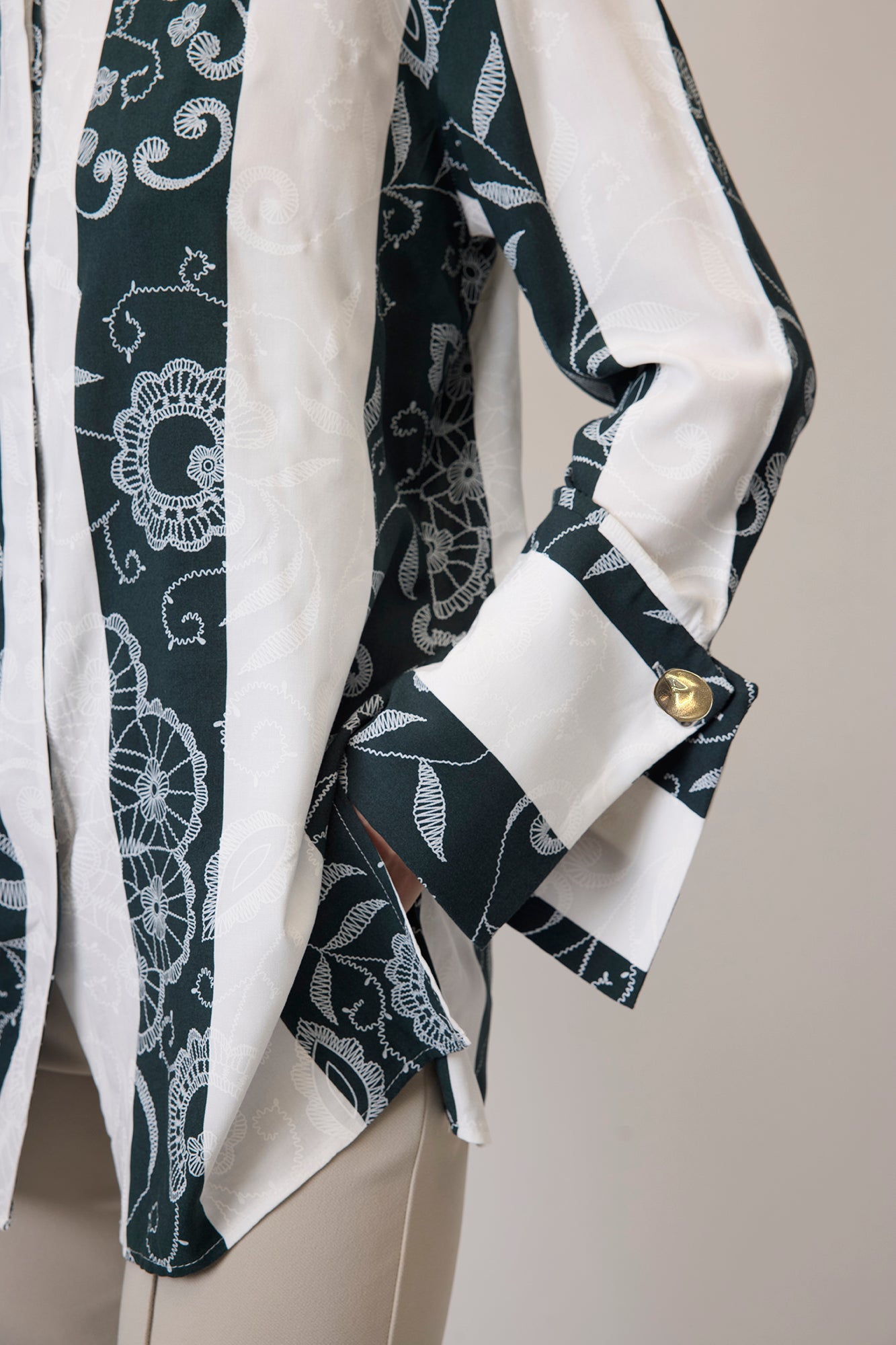 GENİŞ MANŞETLİ DANTEL DESEN GÖMLEK