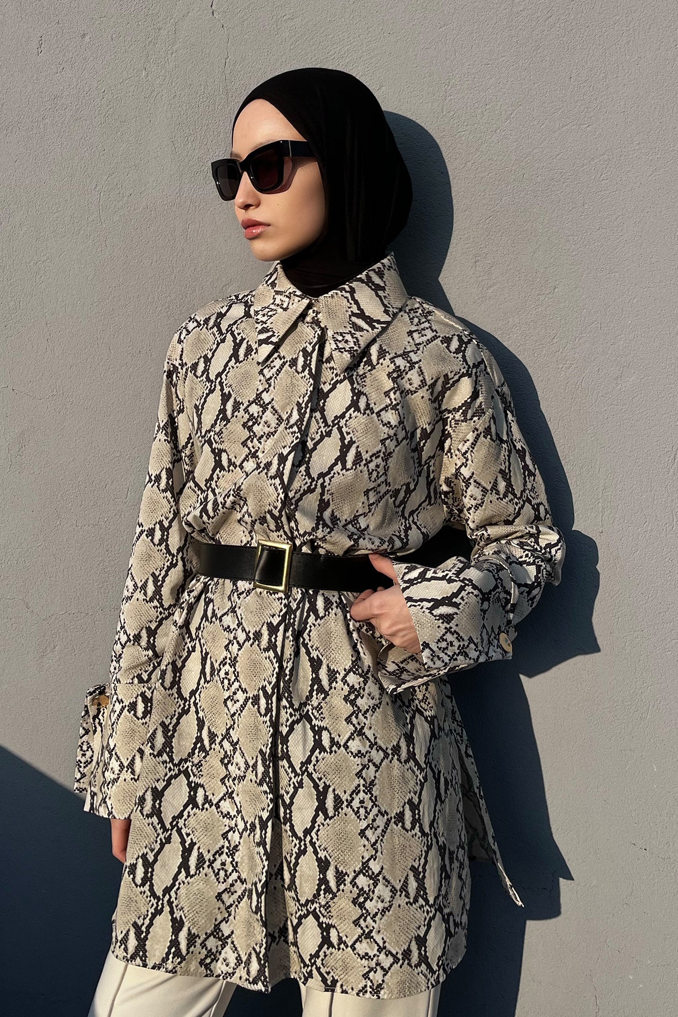 %100 PAMUKLU GENİŞ MANŞETLİ DESENLİ GÖMLEK