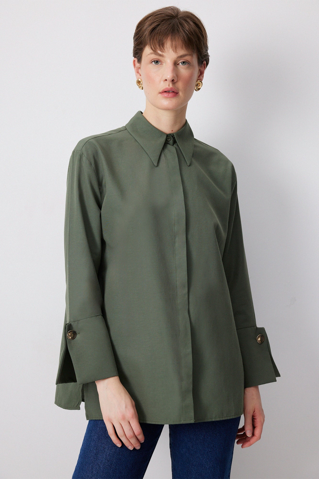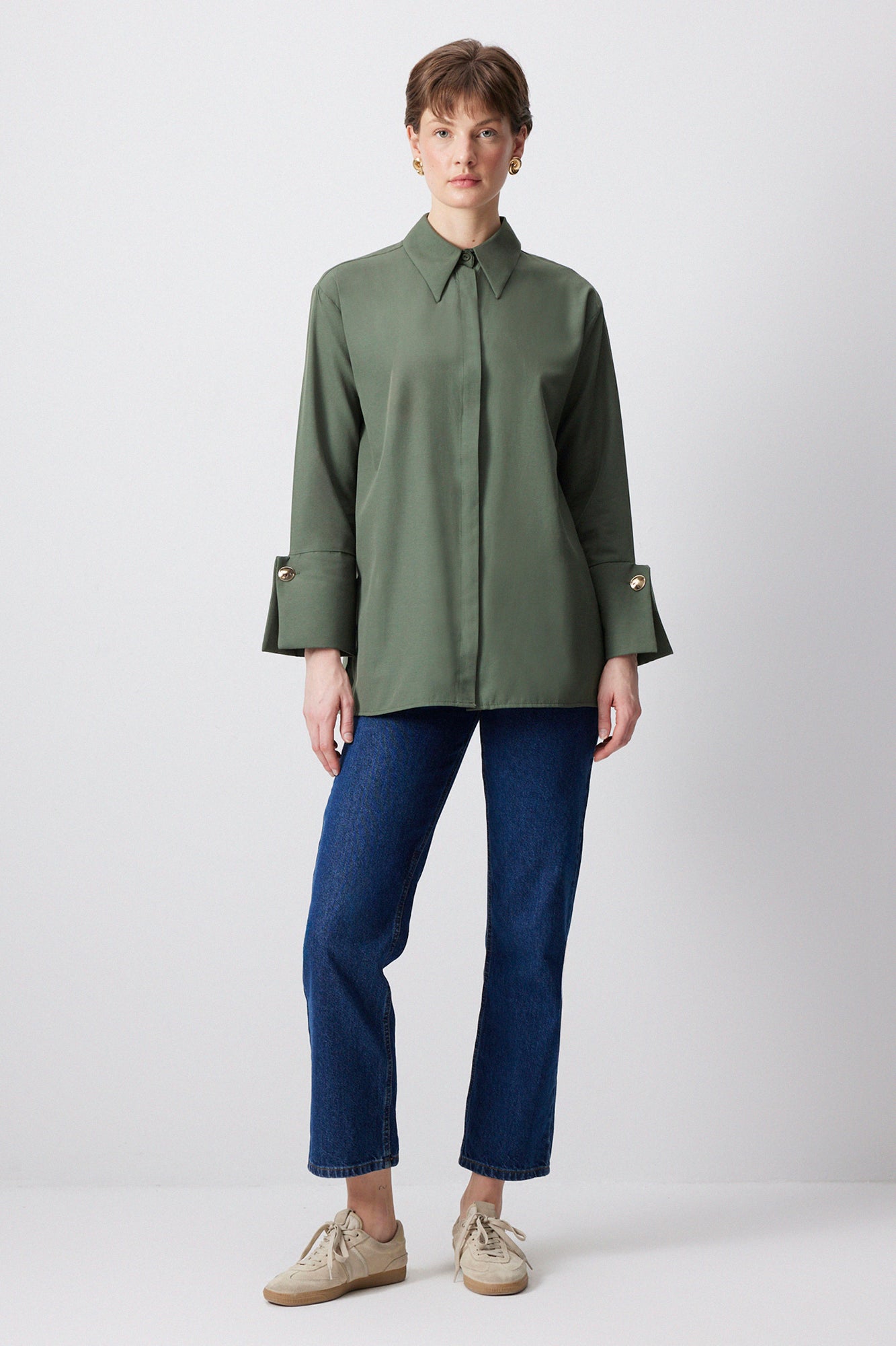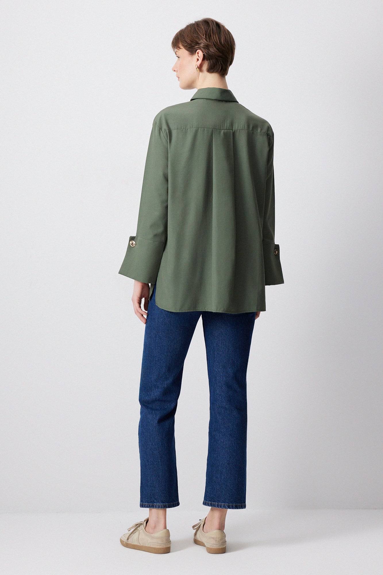 GENİŞ MANŞETLİ POPLİN GÖMLEK