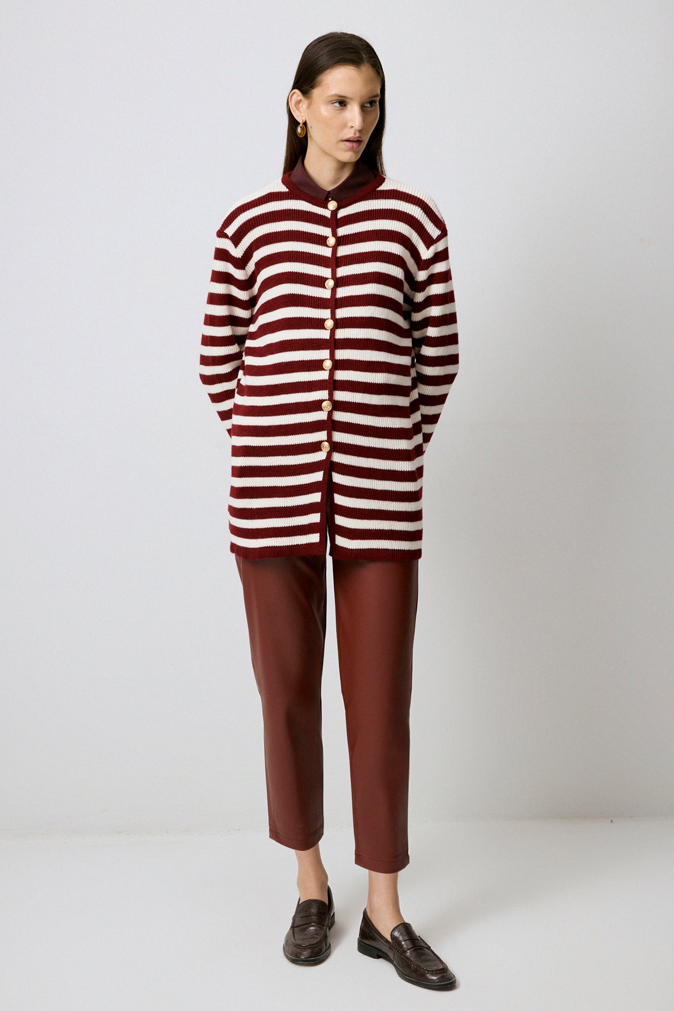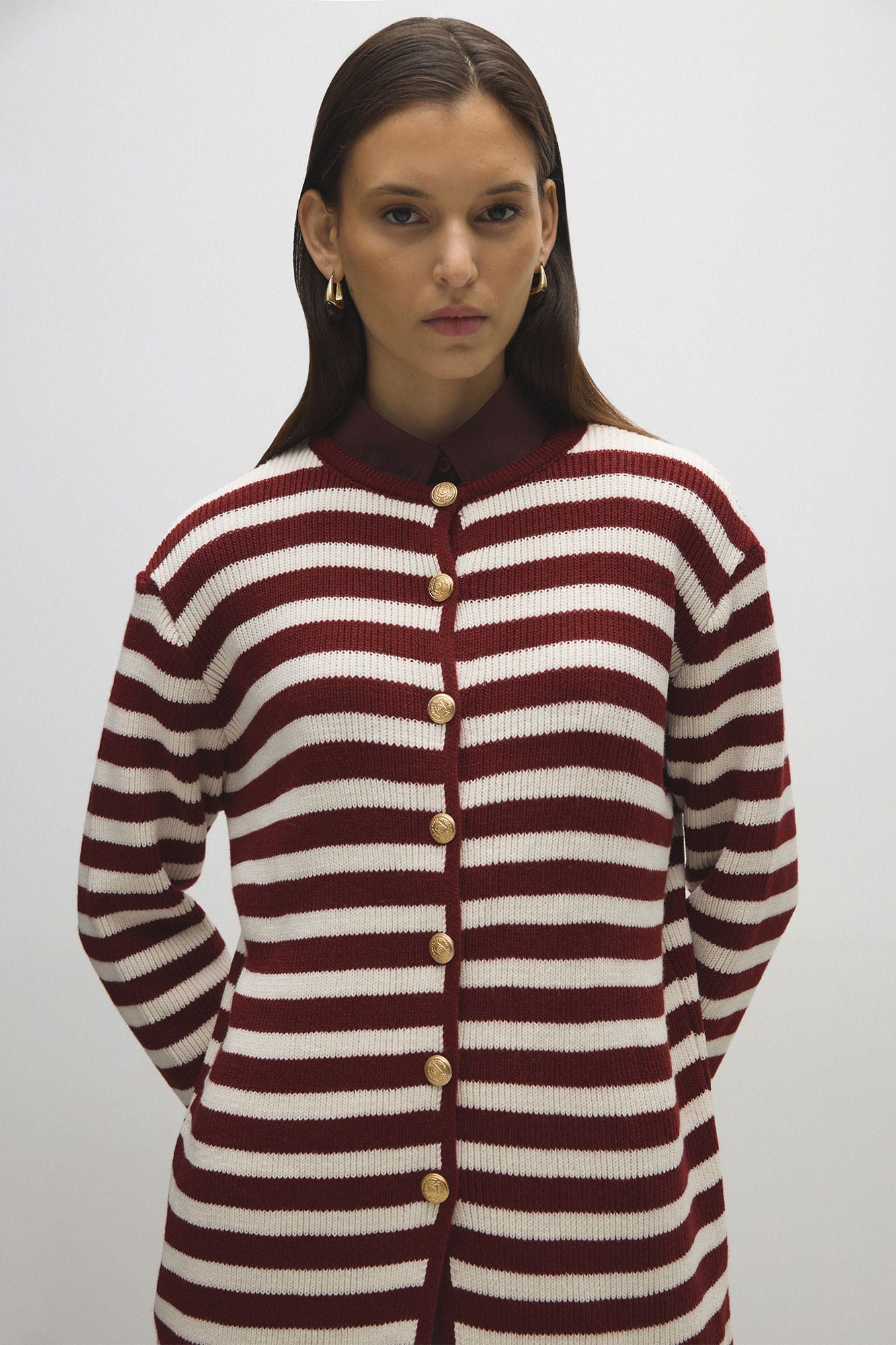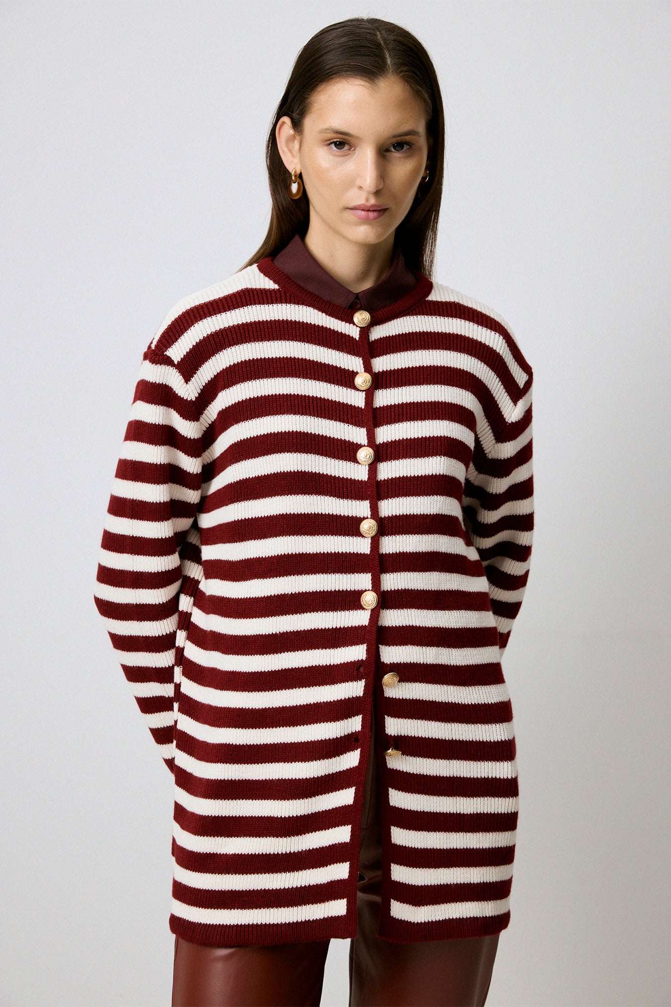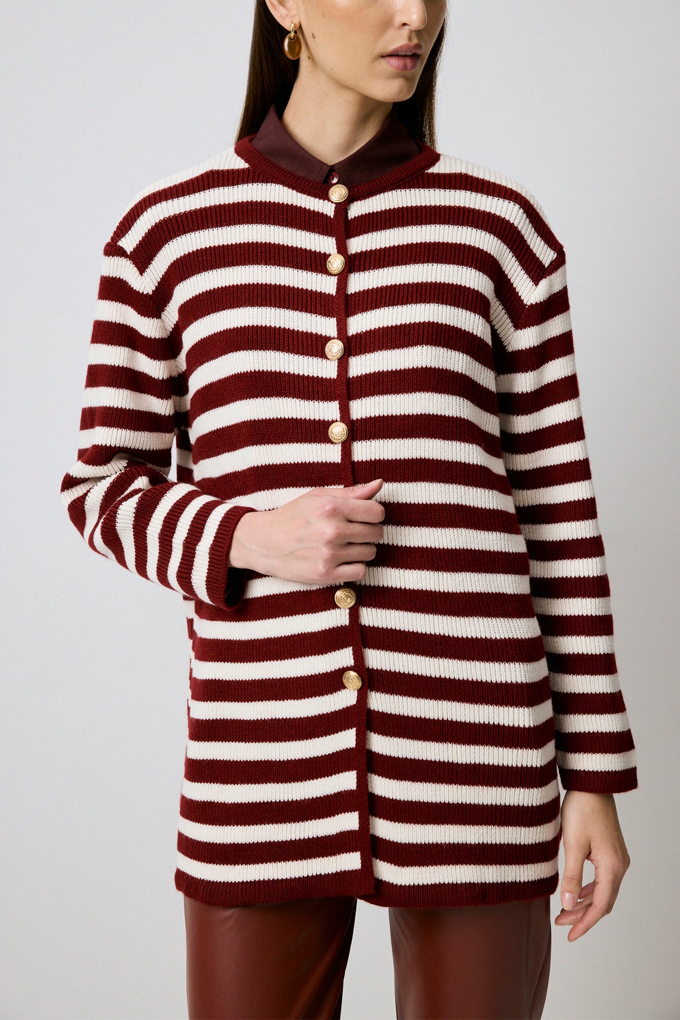 GOLD DÜĞMELİ ÇİZGİLİ UZUN HIRKA