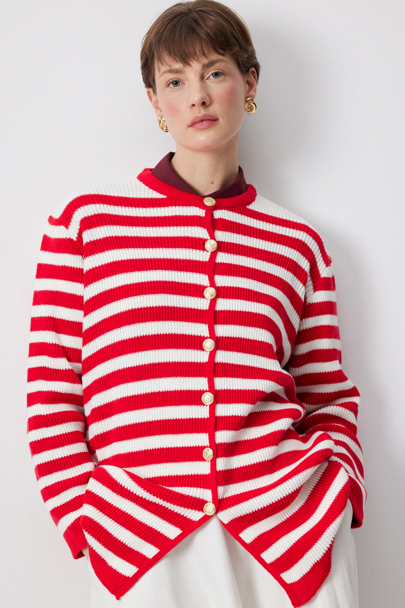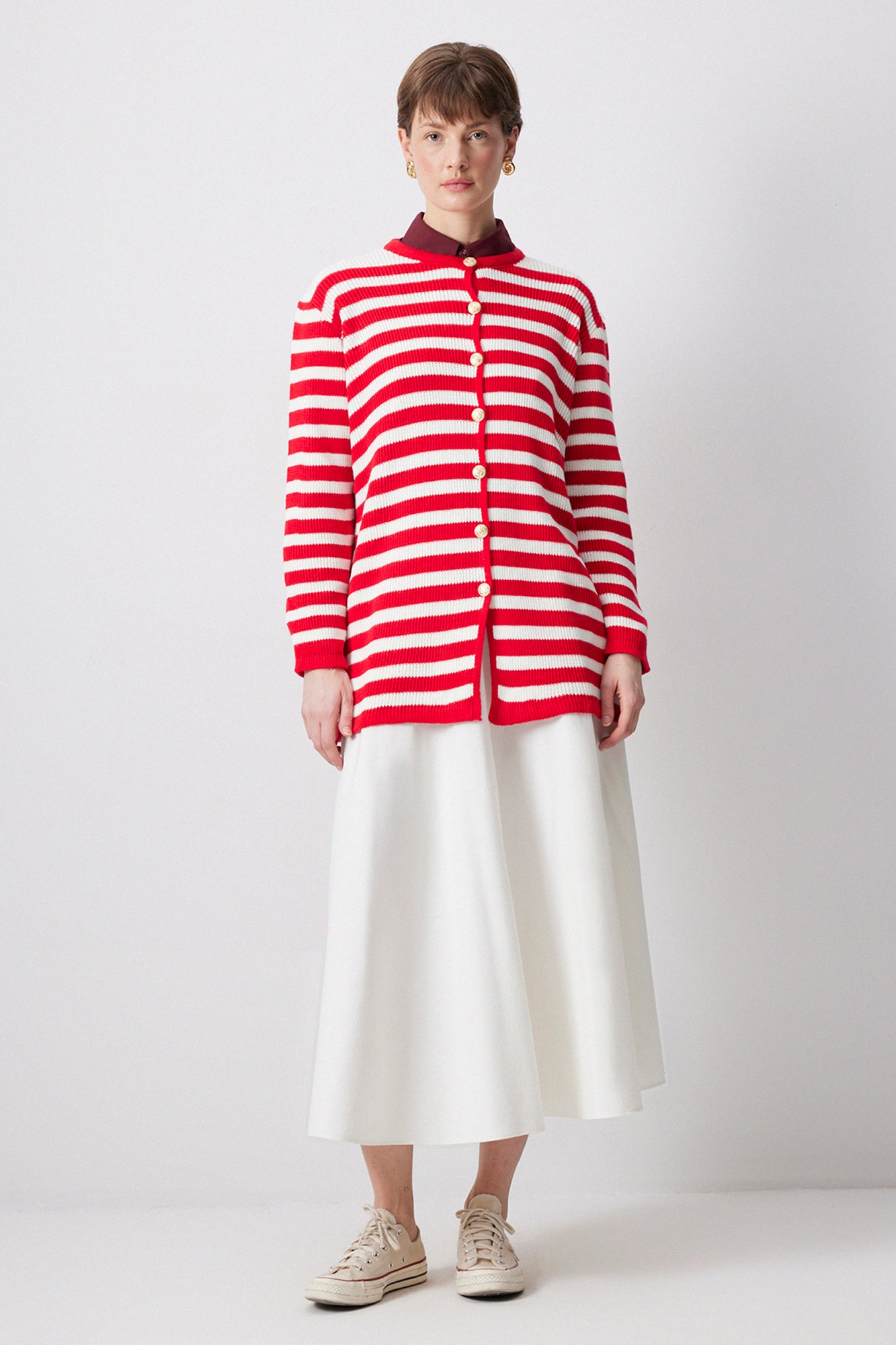 GOLD DÜĞMELİ ÇİZGİLİ UZUN HIRKA