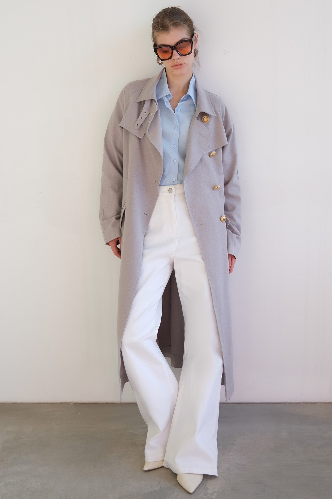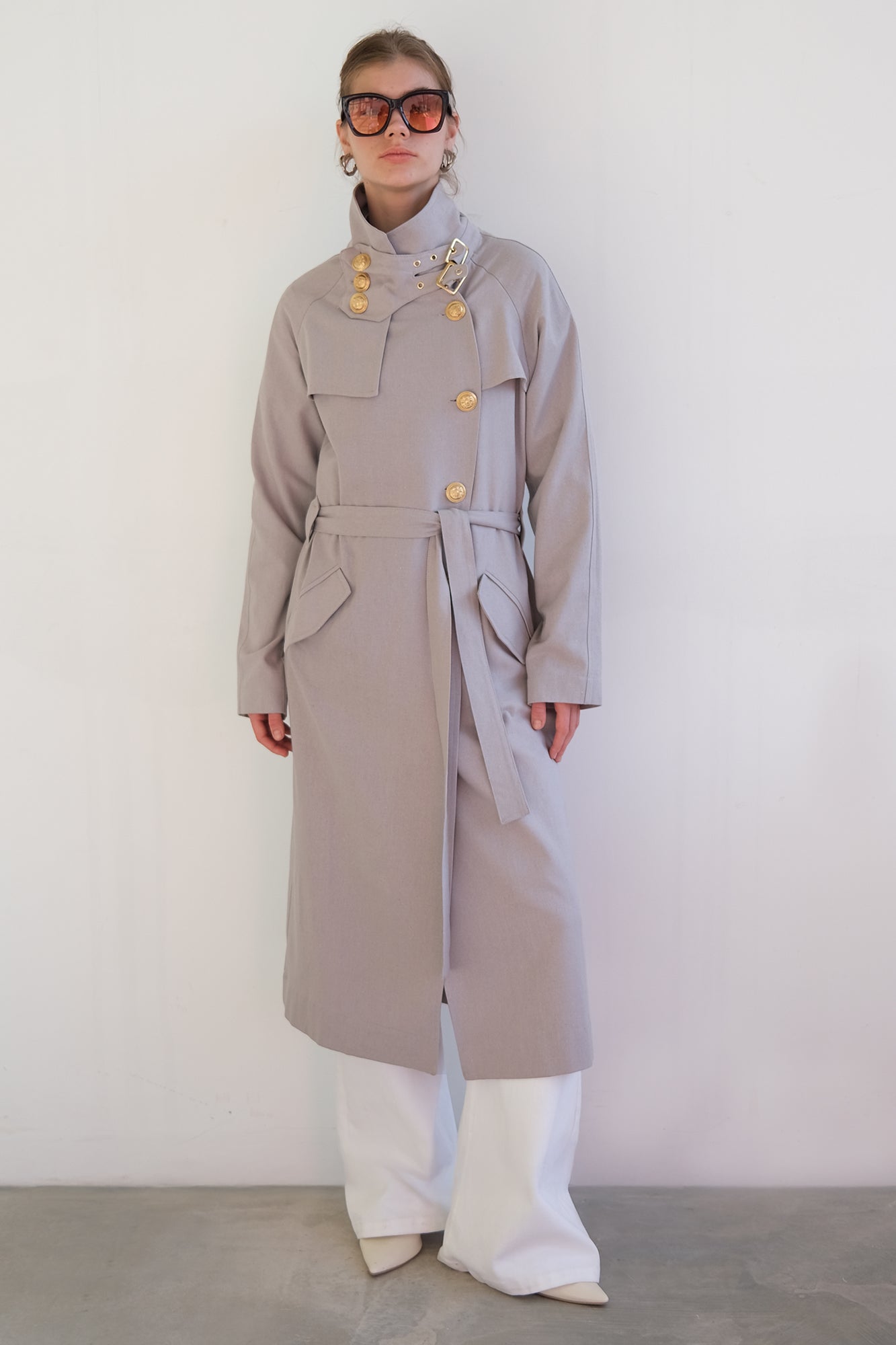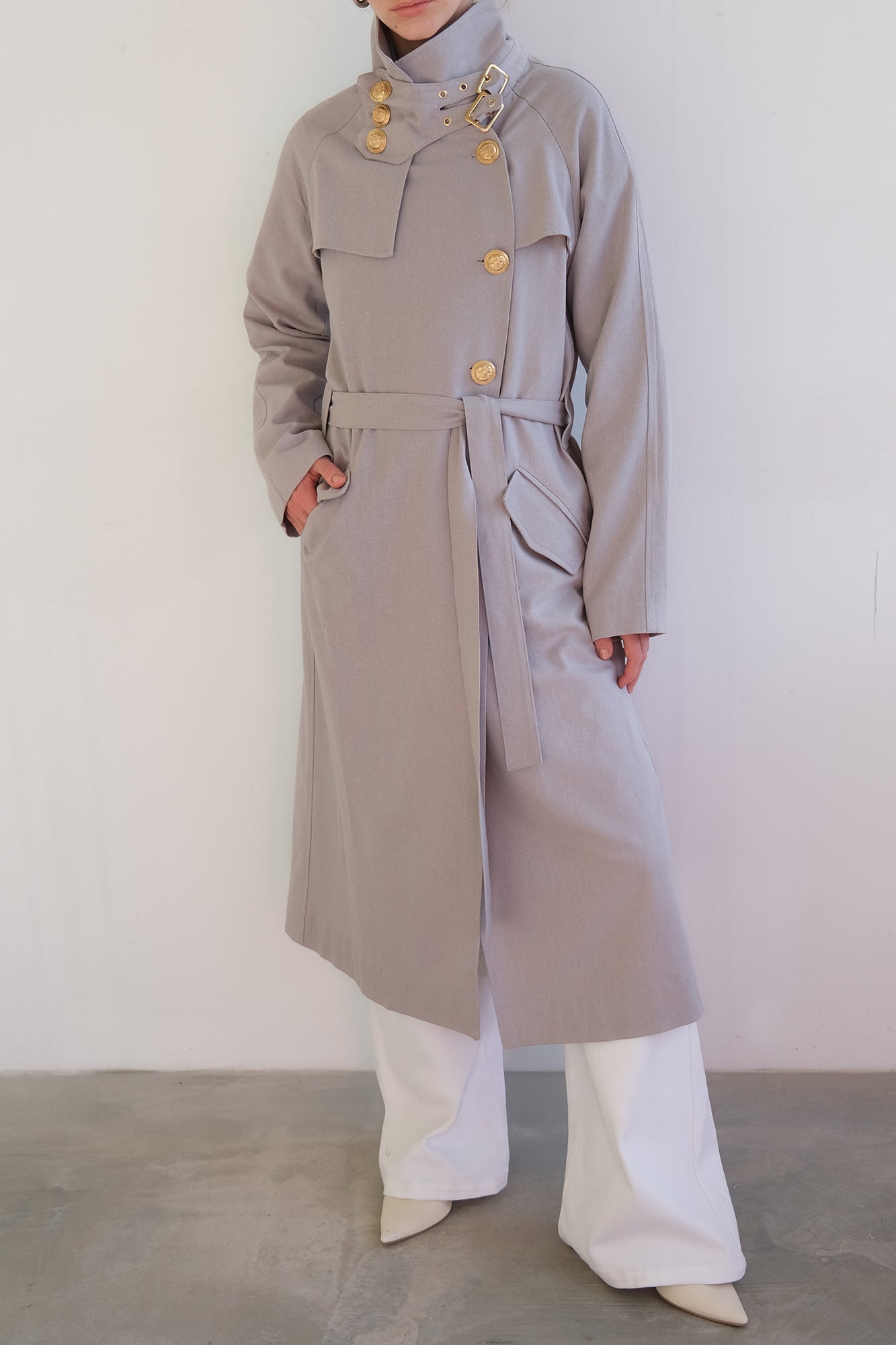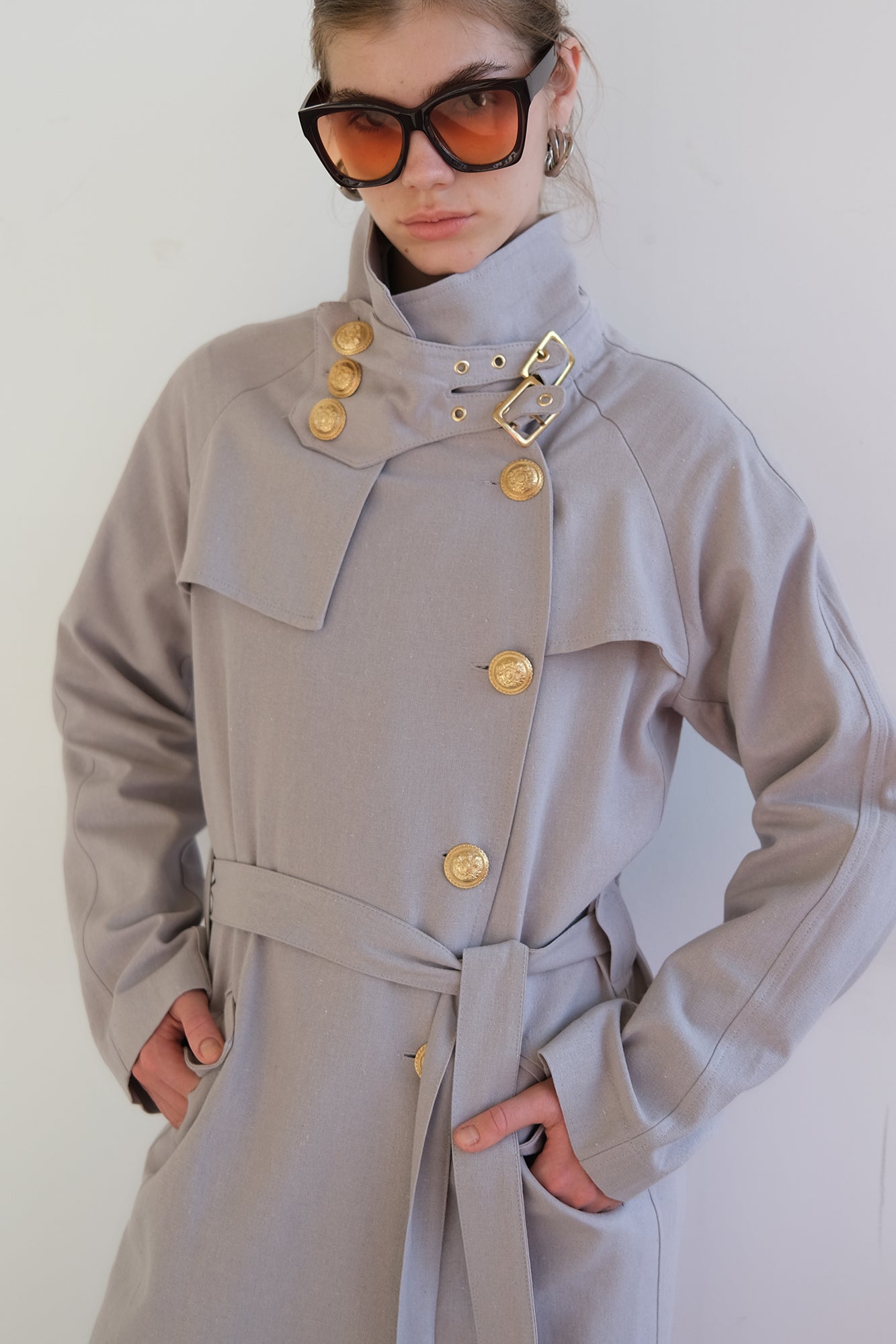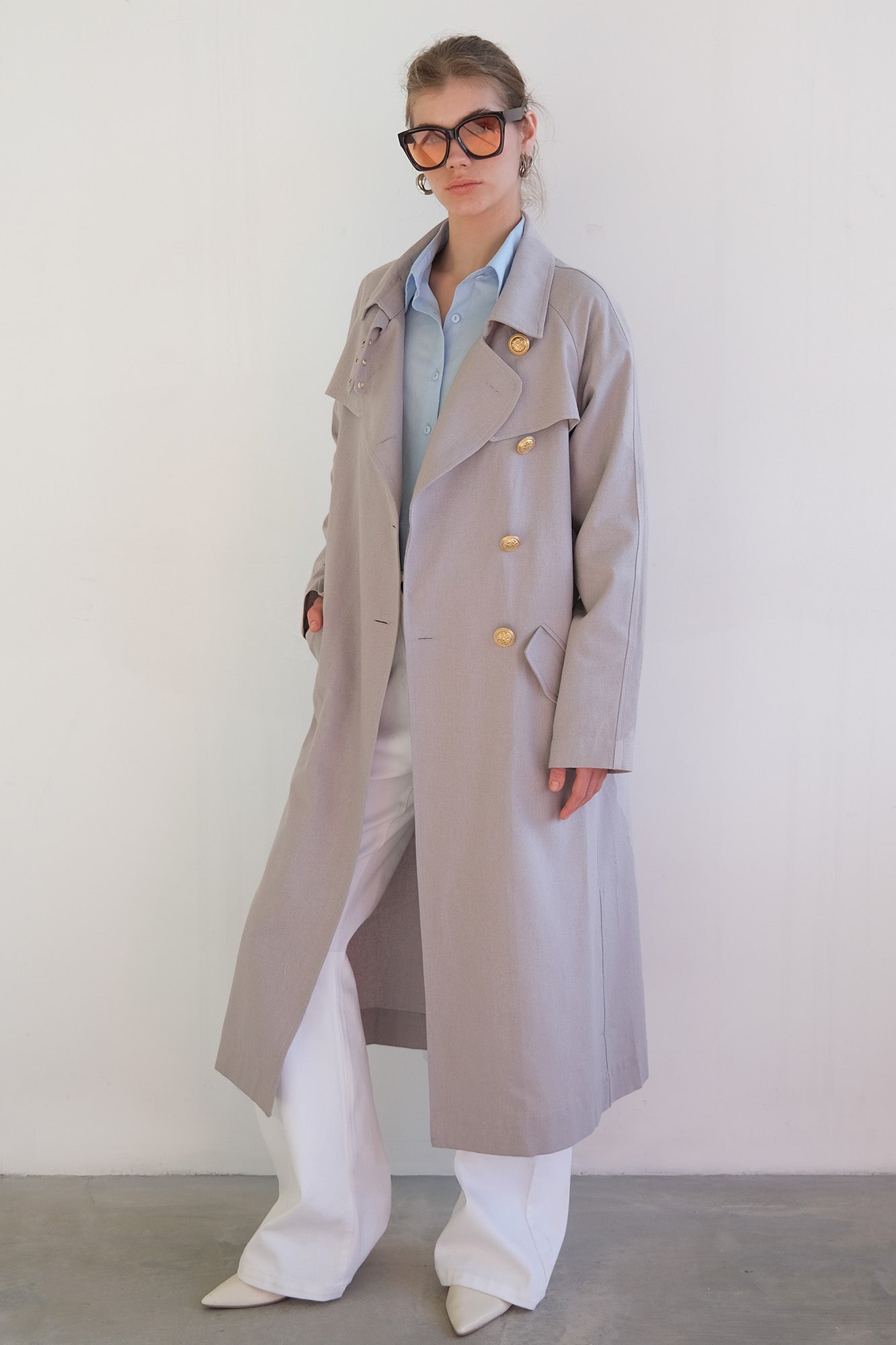 GOLD DÜĞMELİ KRUVAZE KETEN TRENÇKOT