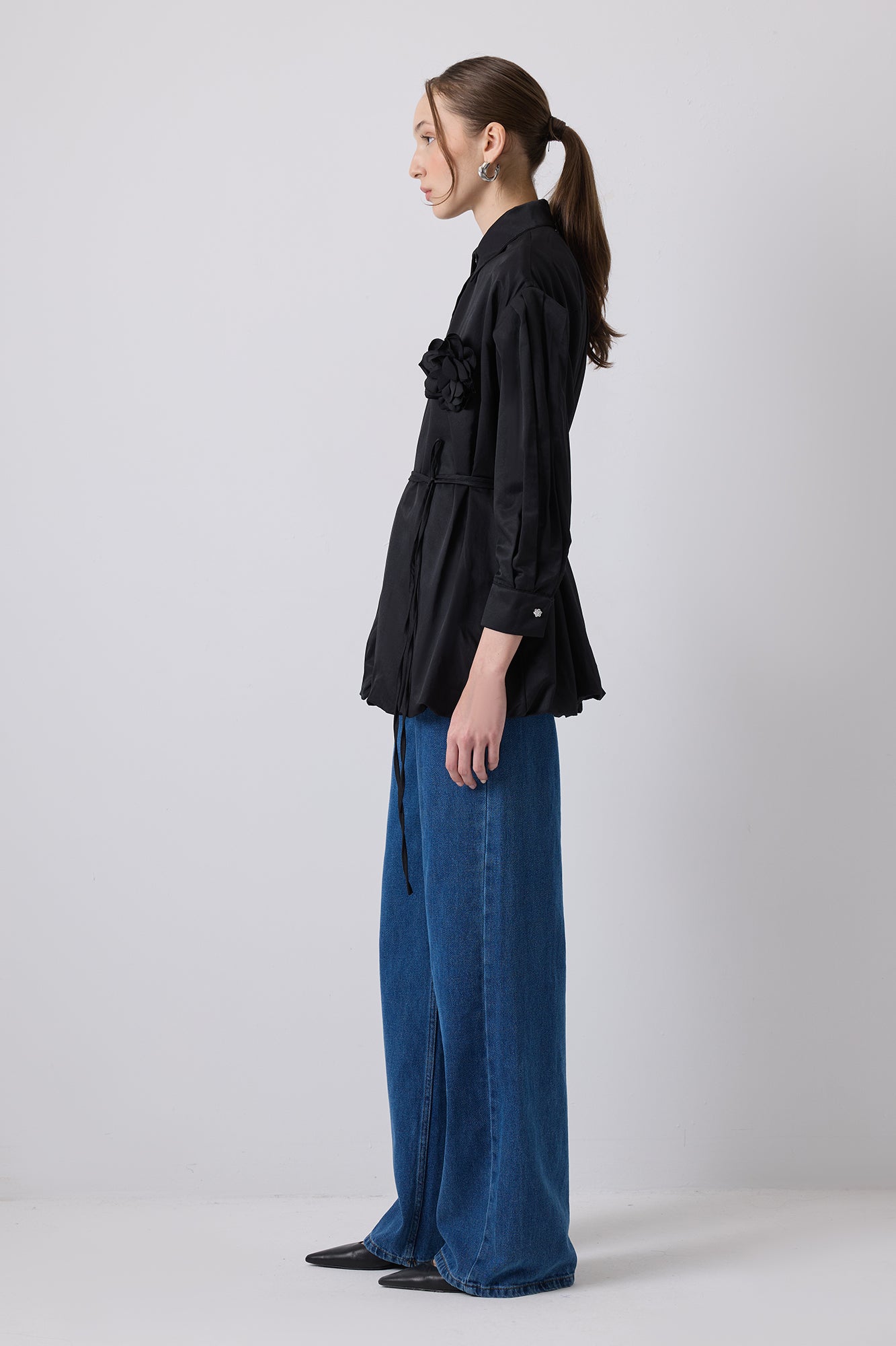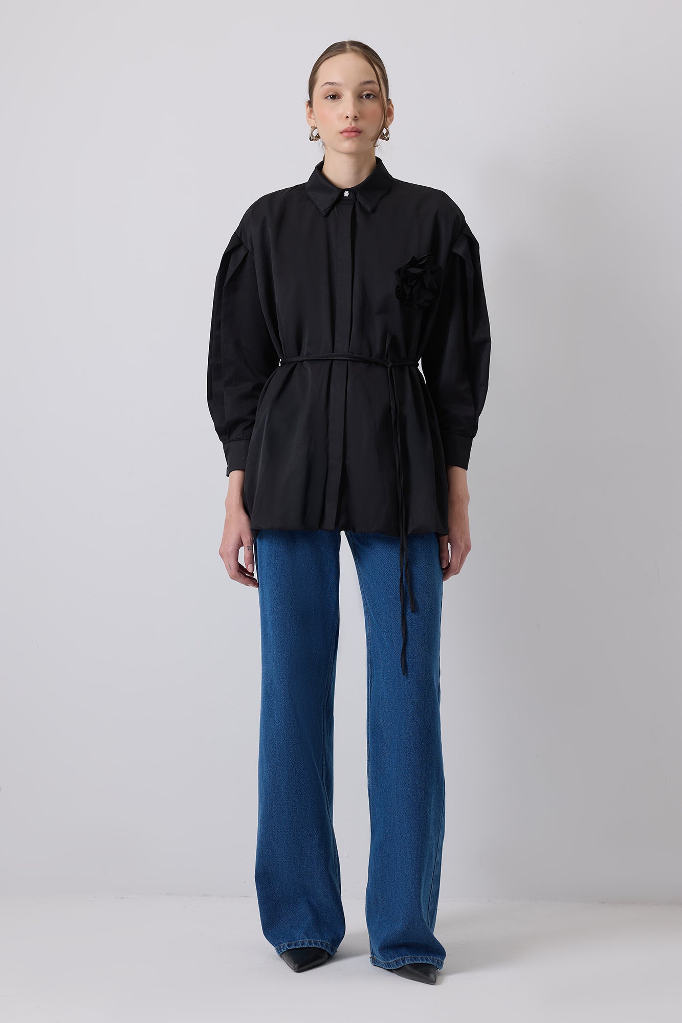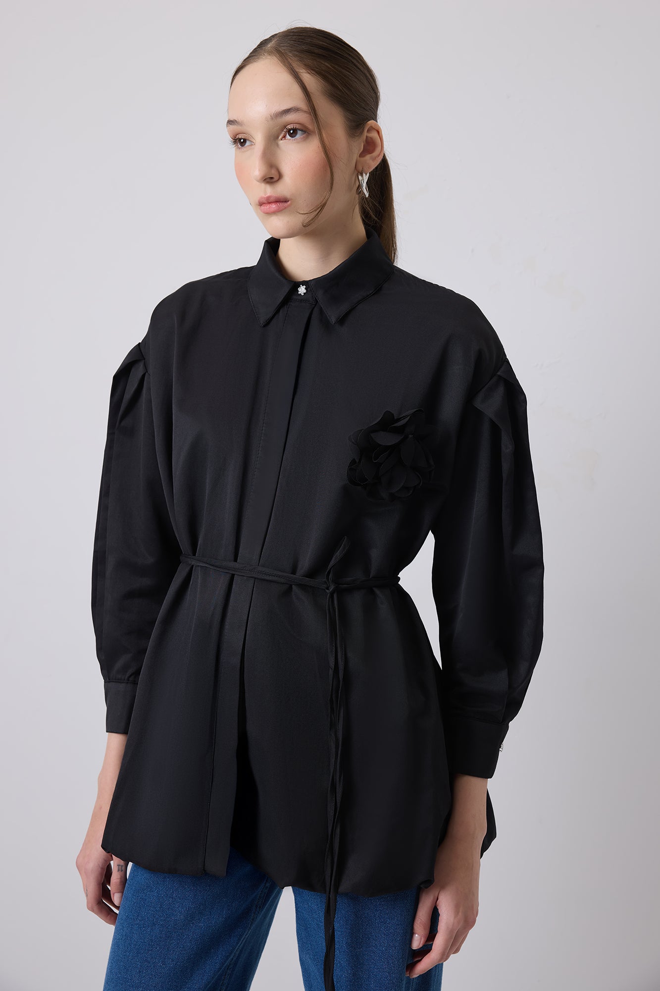 %100 PAMUKLU GÜL DETAYLI GÖMLEK