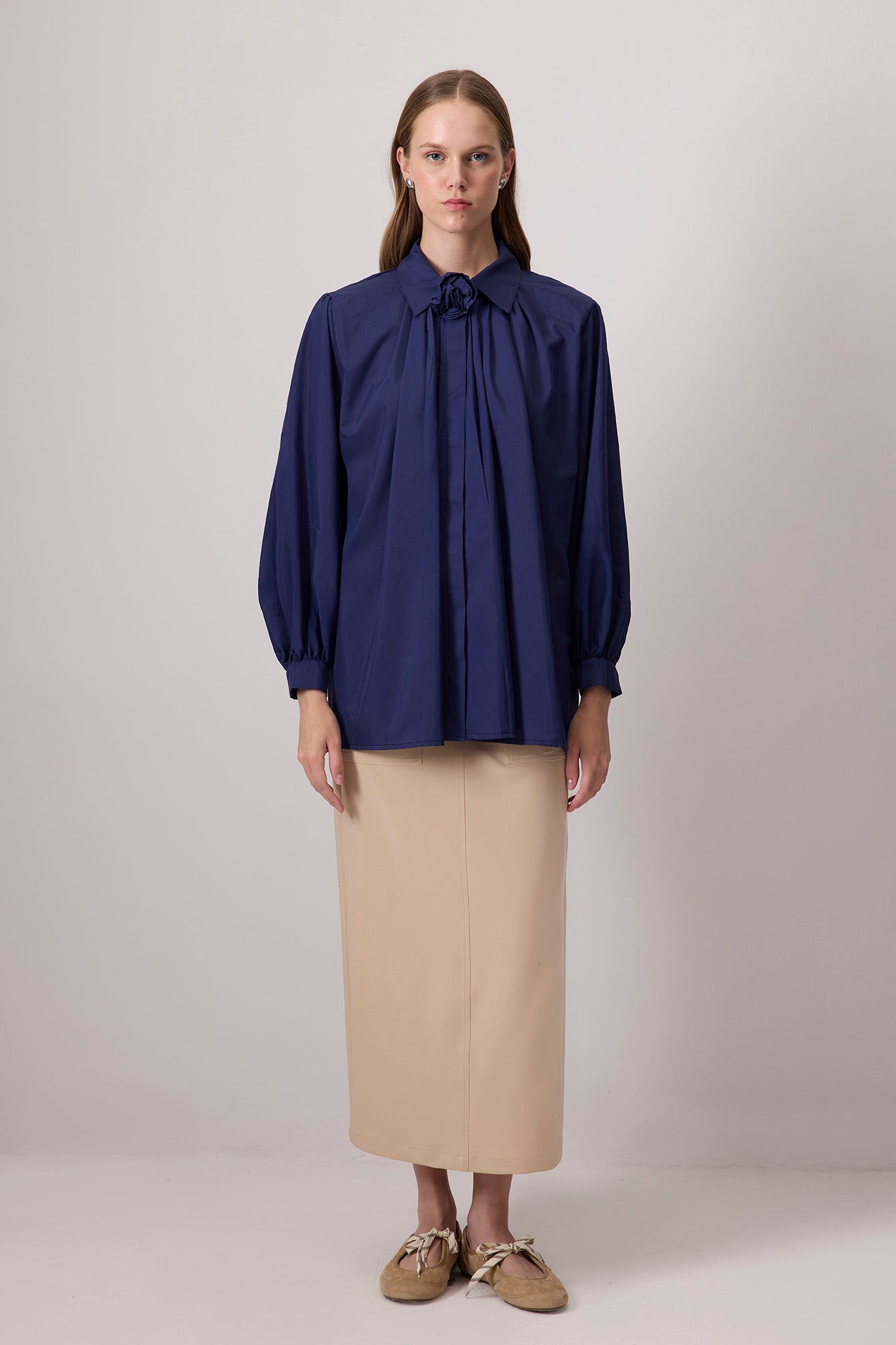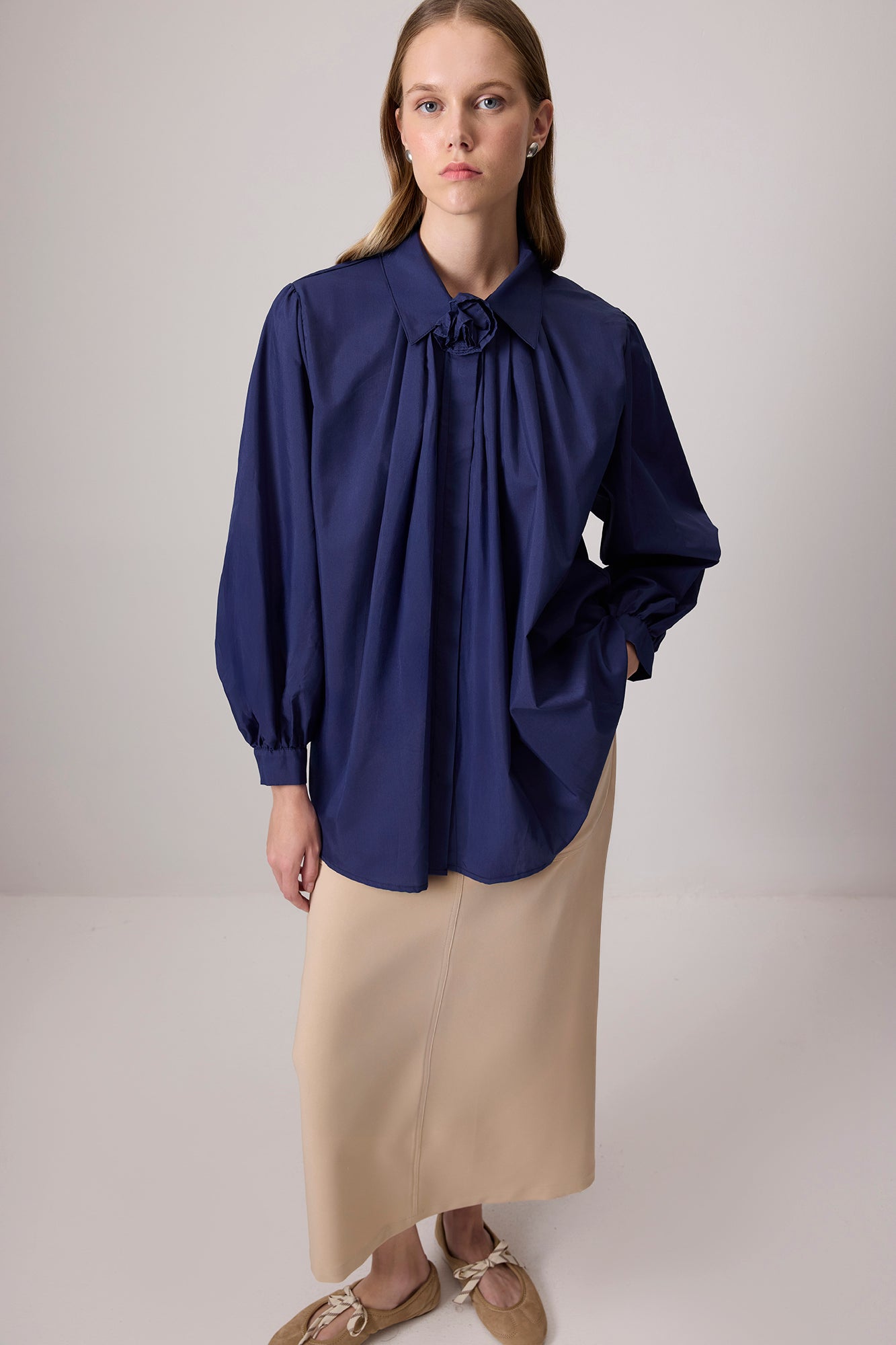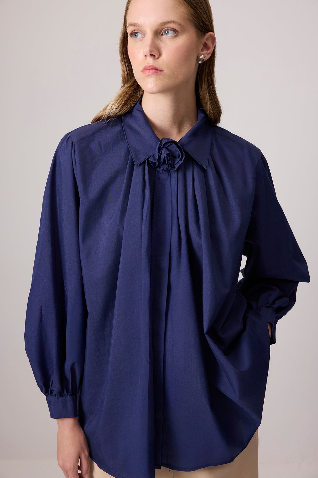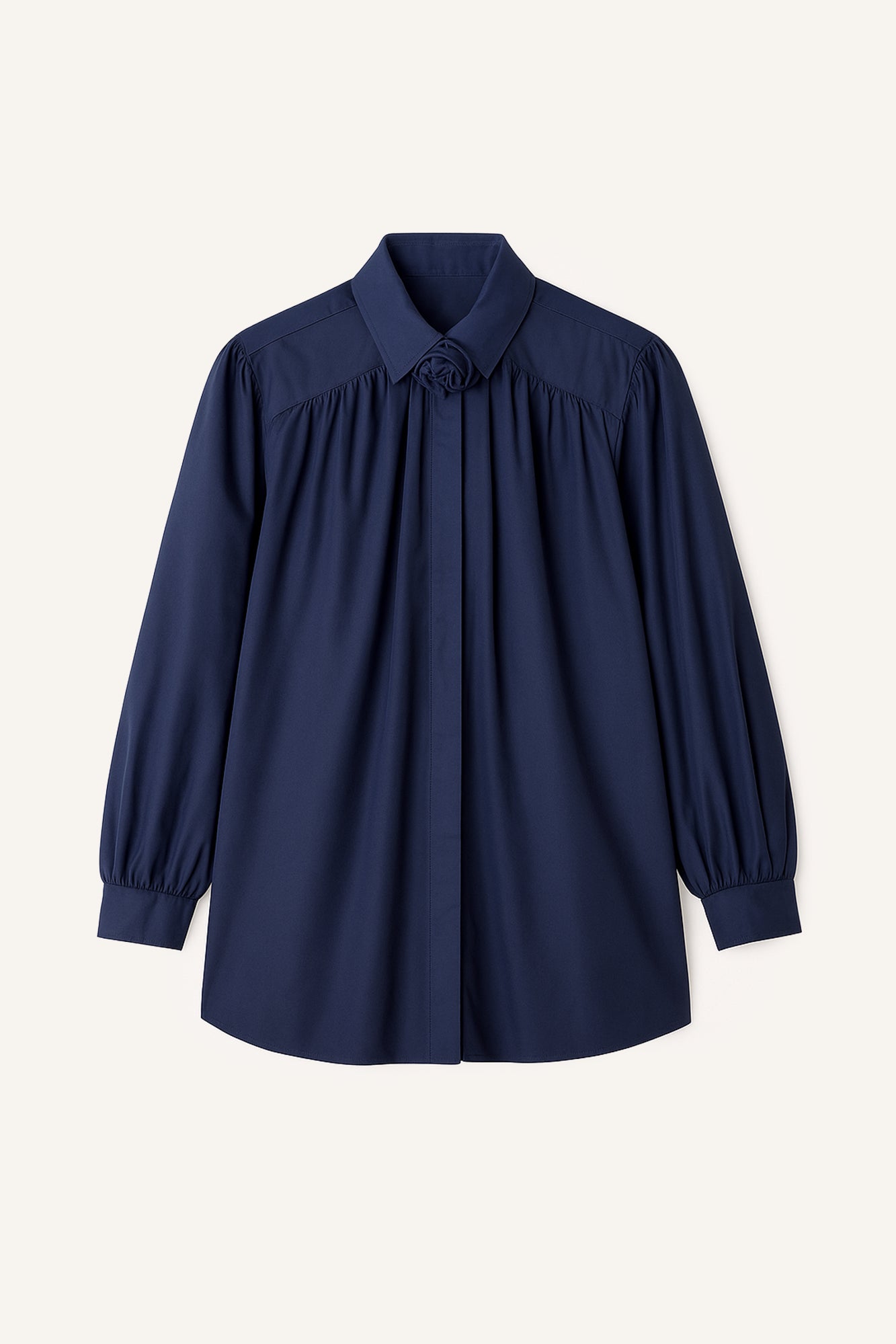 %100 PAMUKLU GÜL DETAYLI GÖMLEK