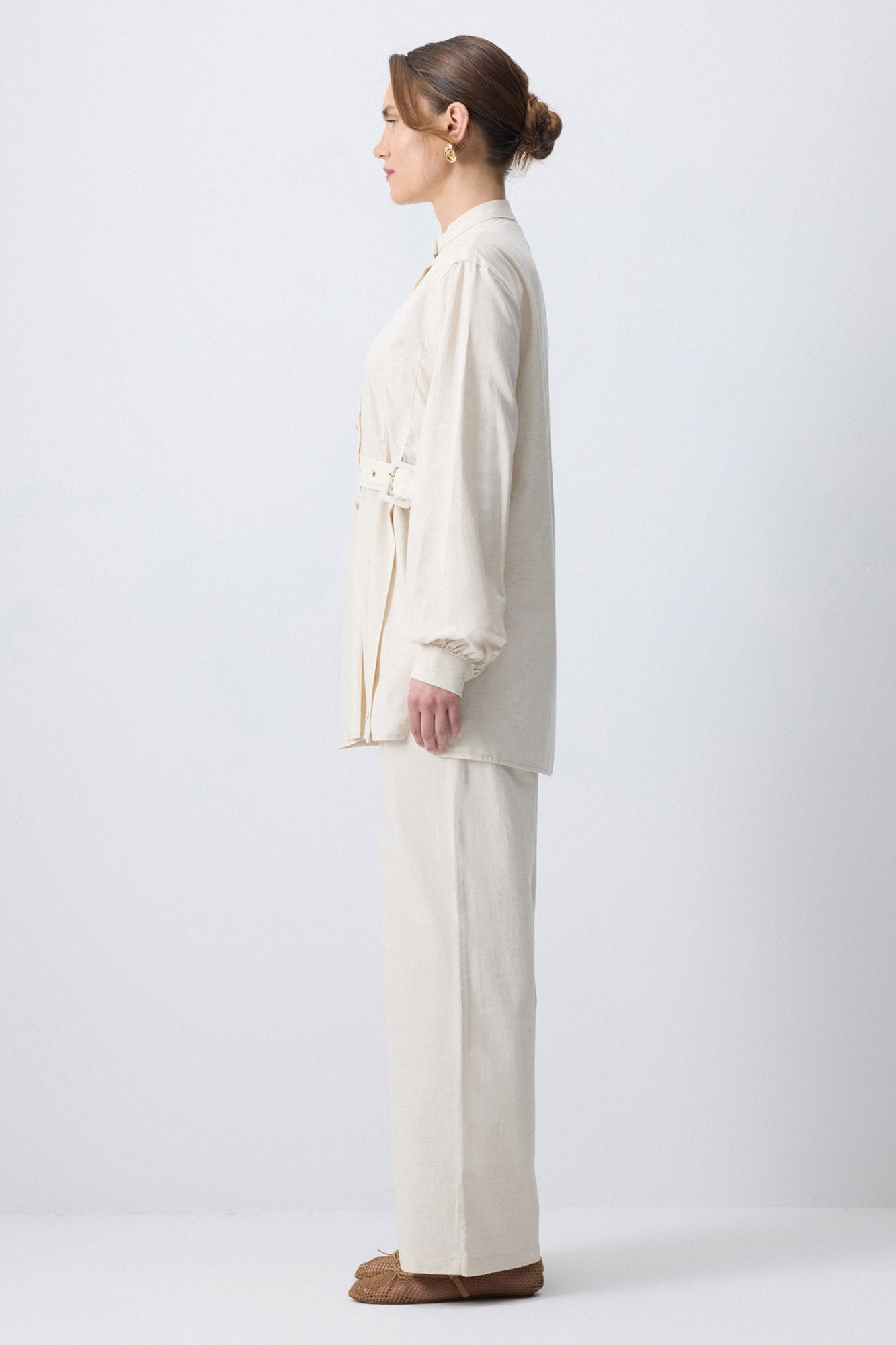 KEMER DETAYLI GÖMLEK PANTOLON TAKIM
