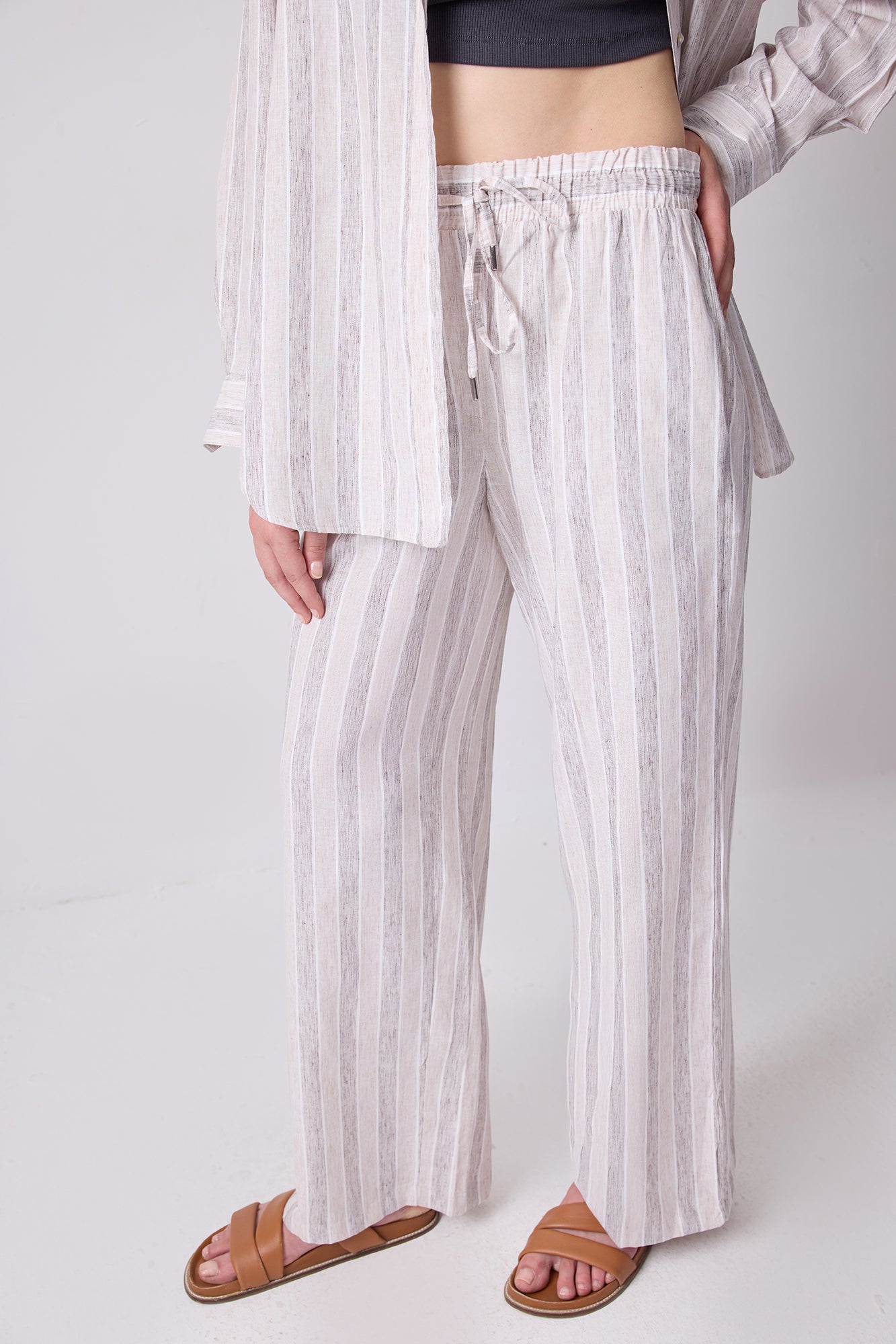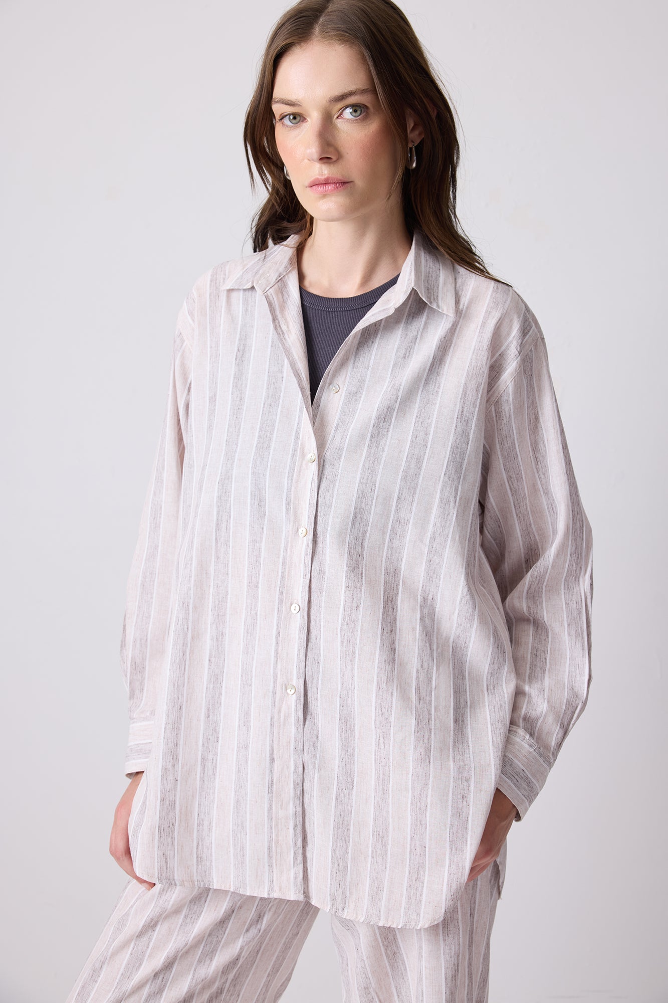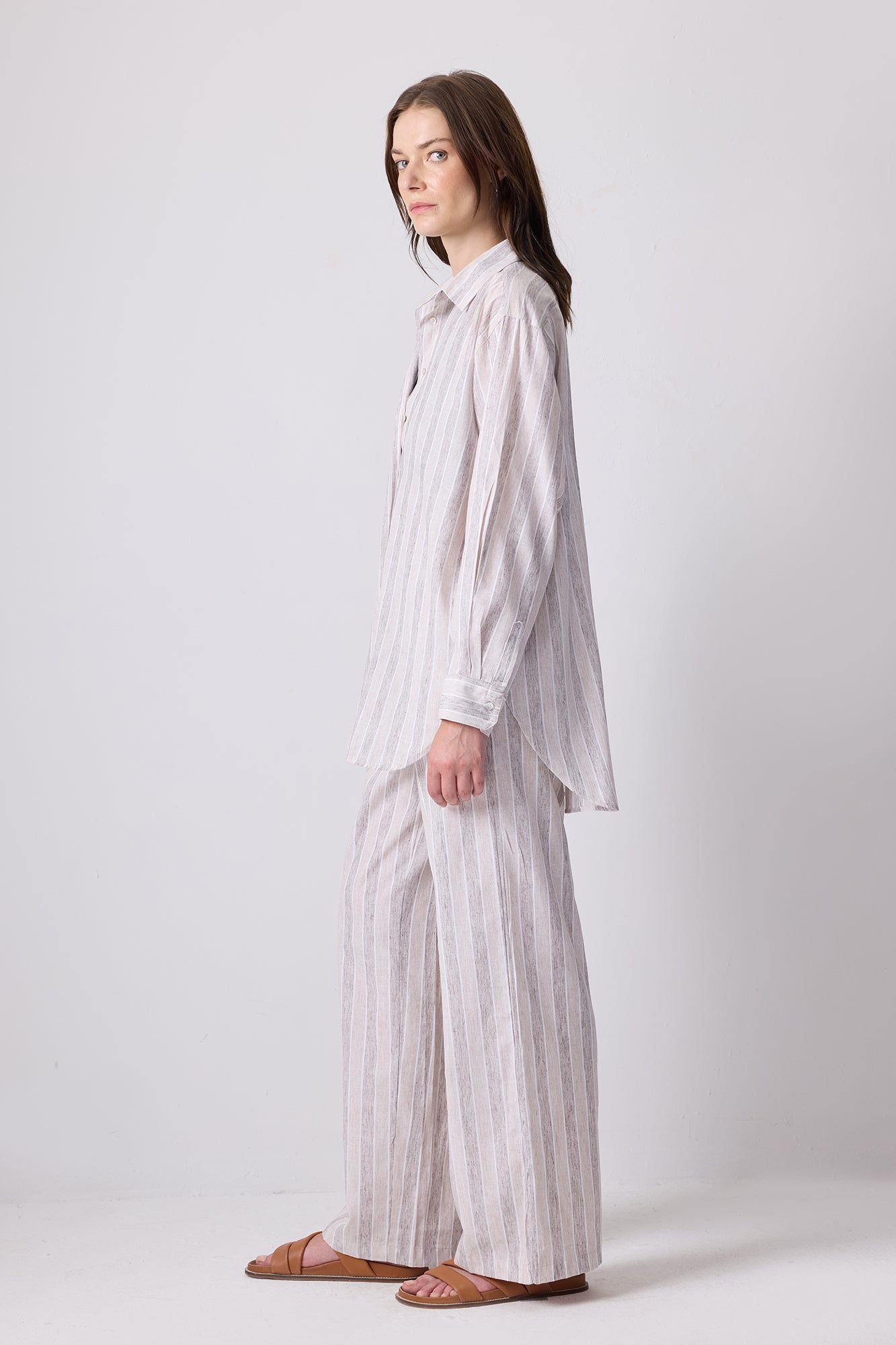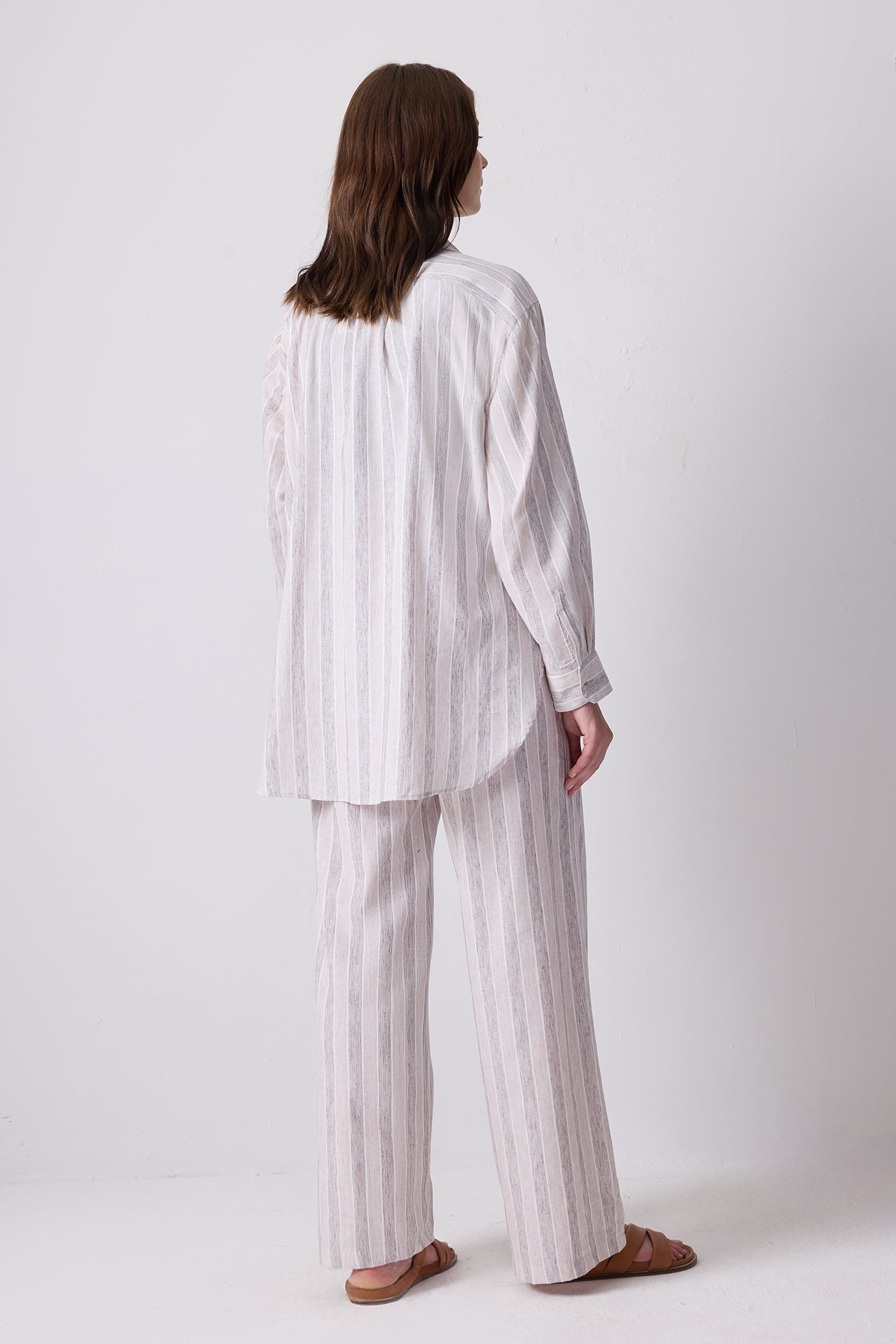 KETEN DOKULU ÇİZGİLİ GÖMLEK PANTOLON TAKIM