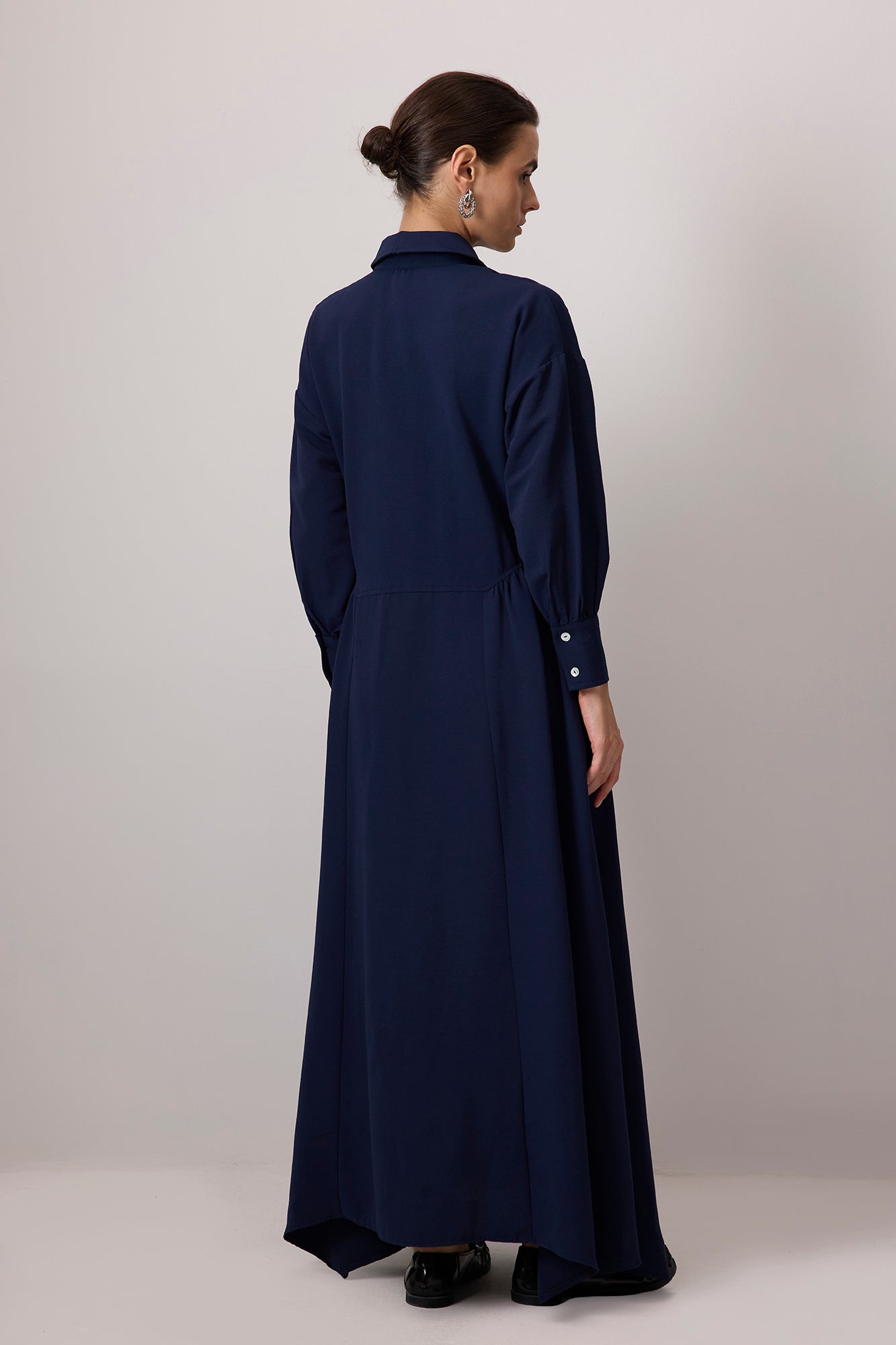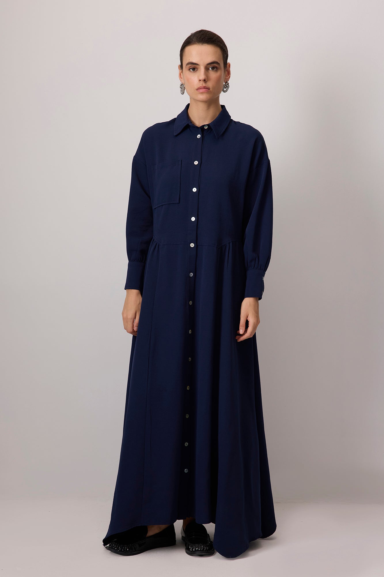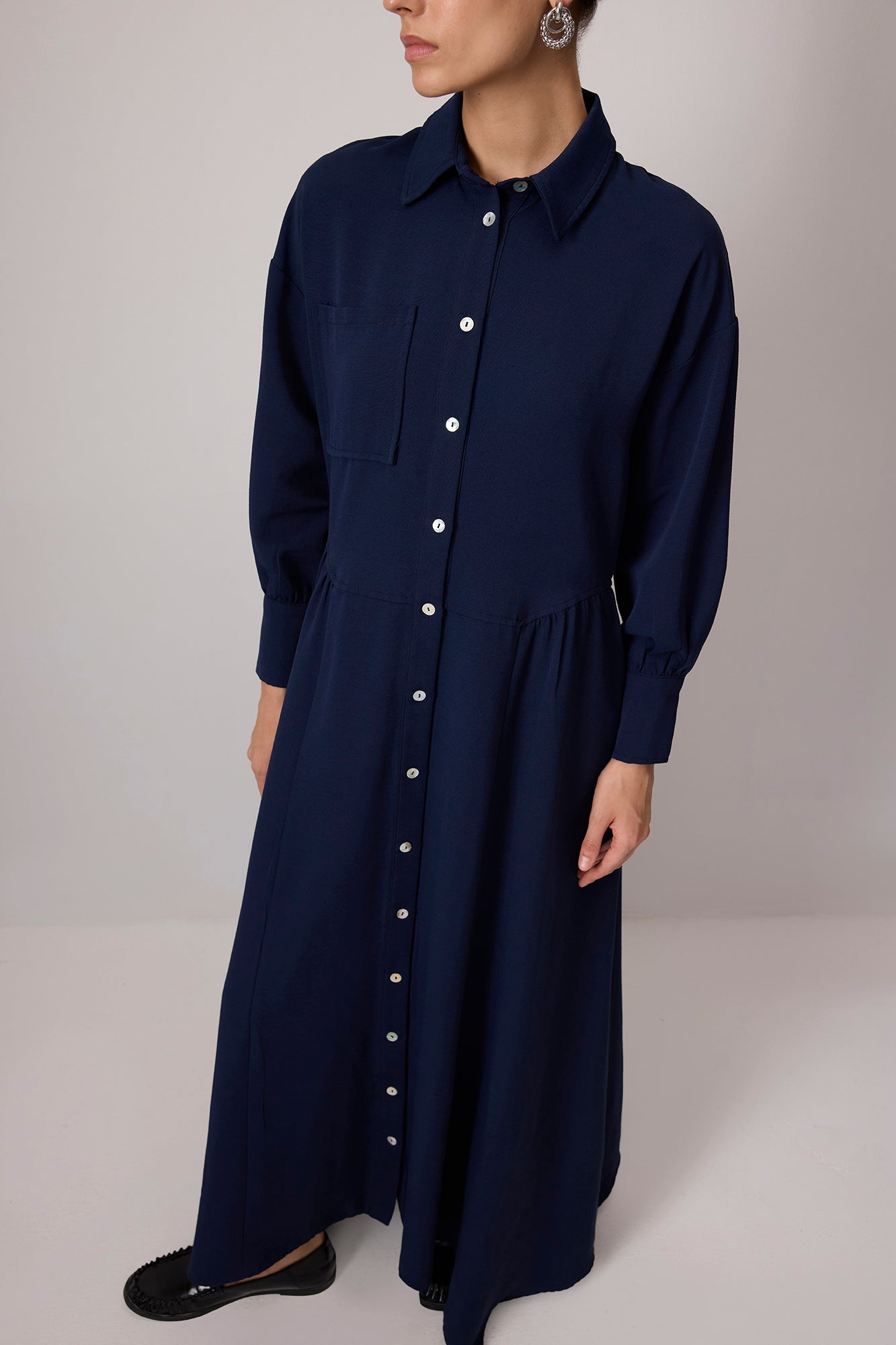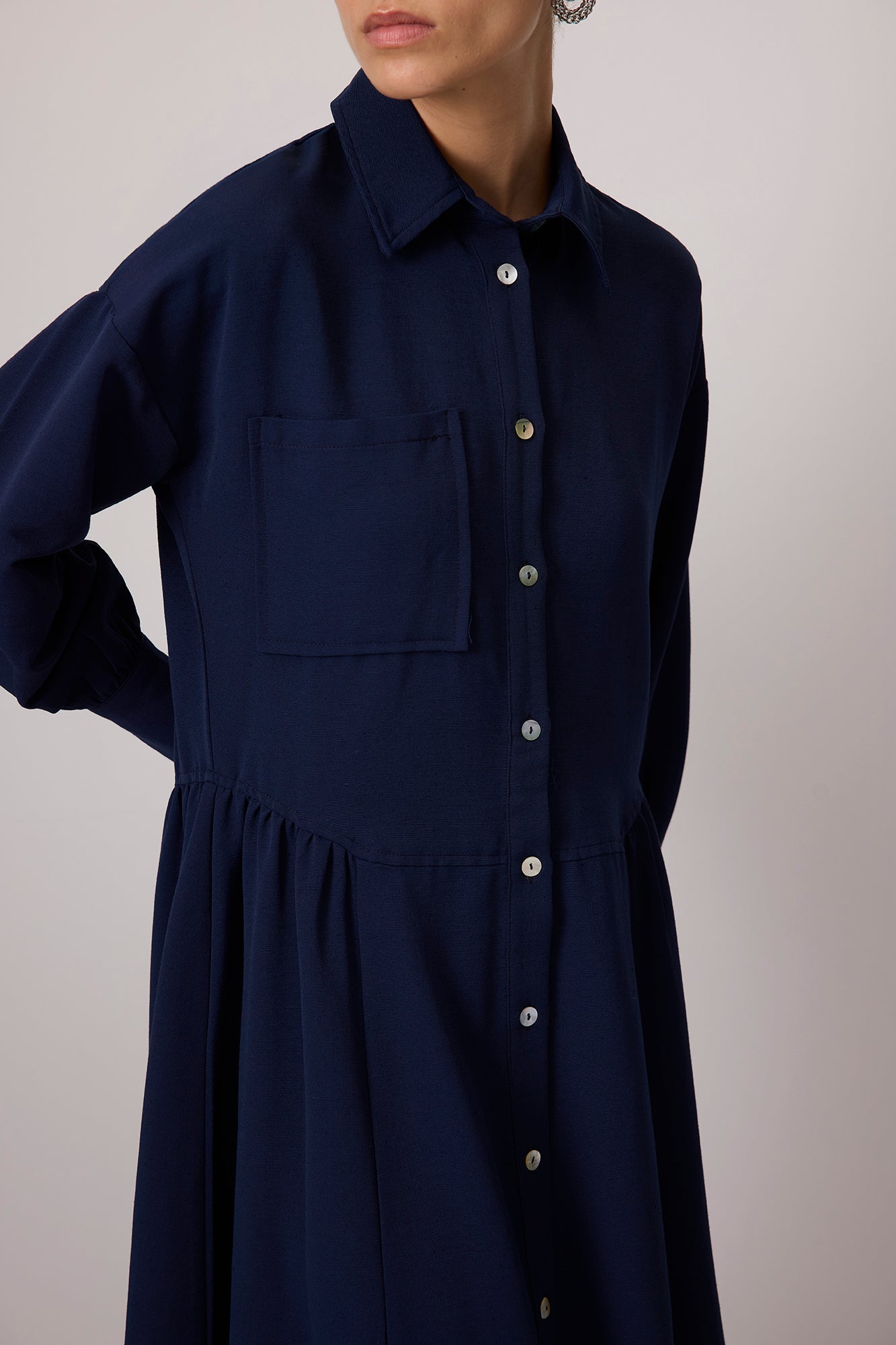 KETEN DOKULU SEDEF DÜĞMELİ ELBİSE