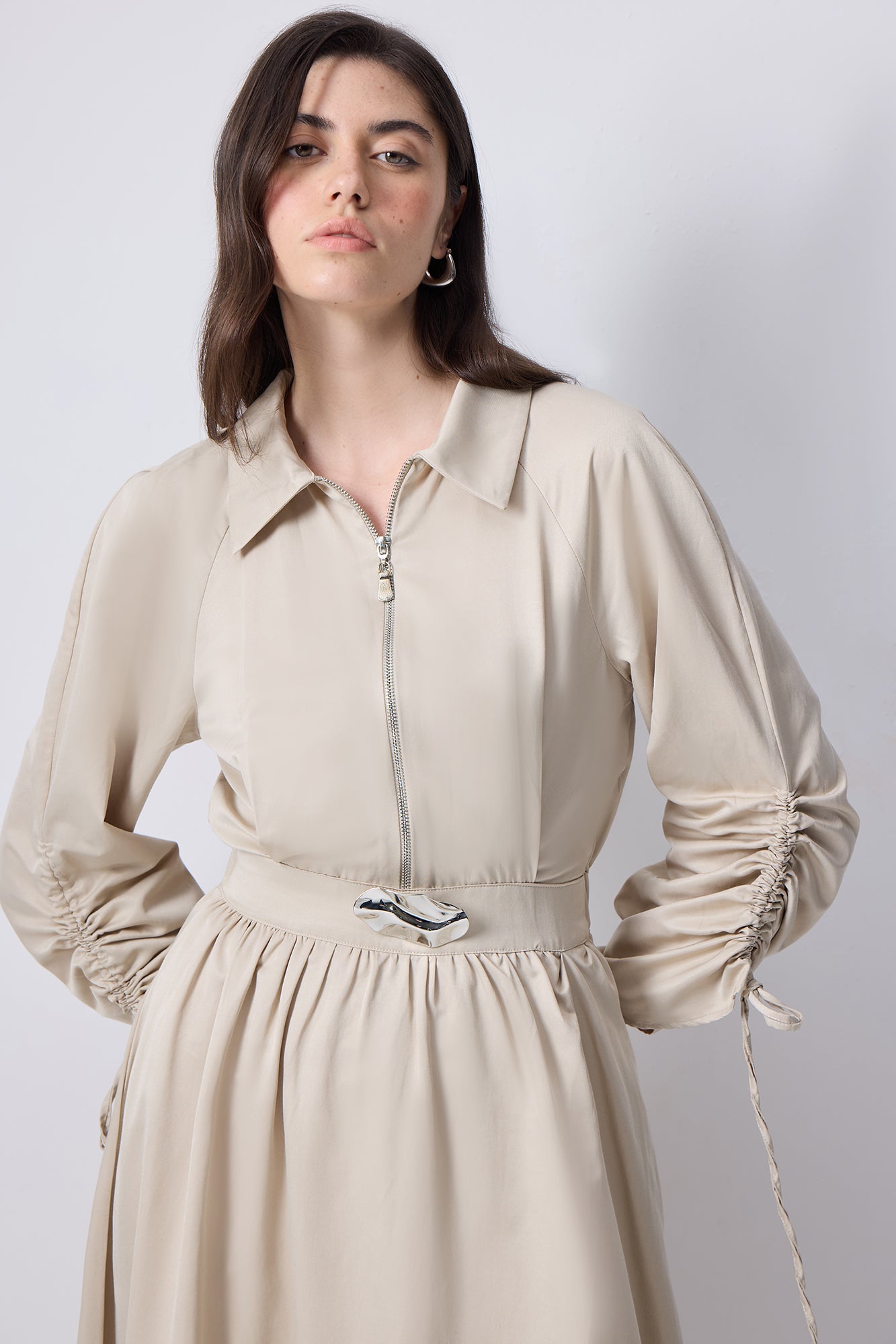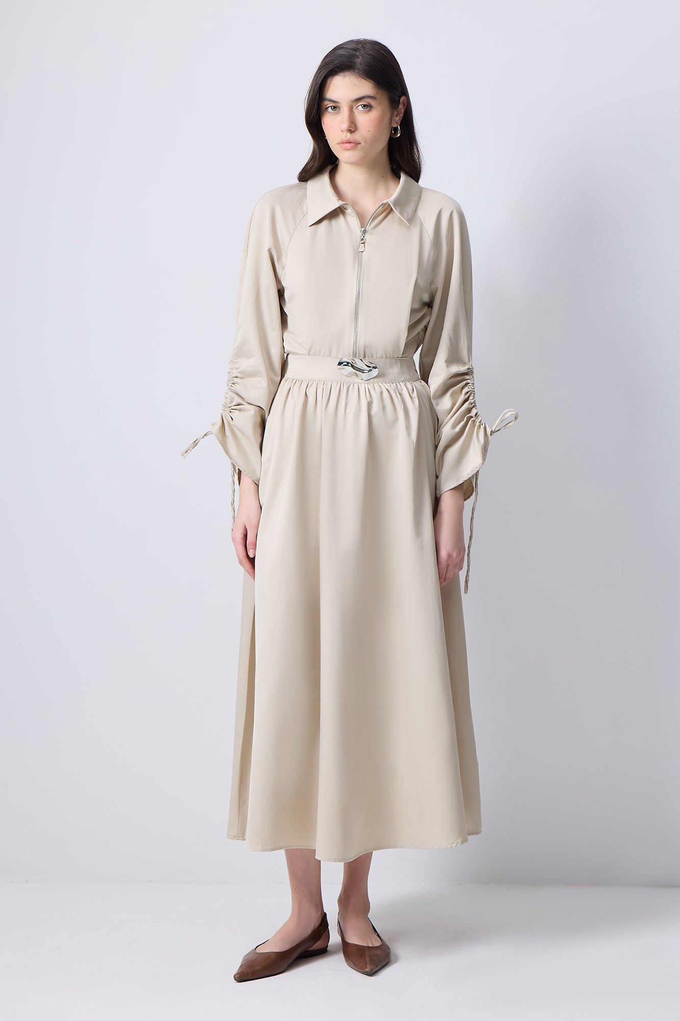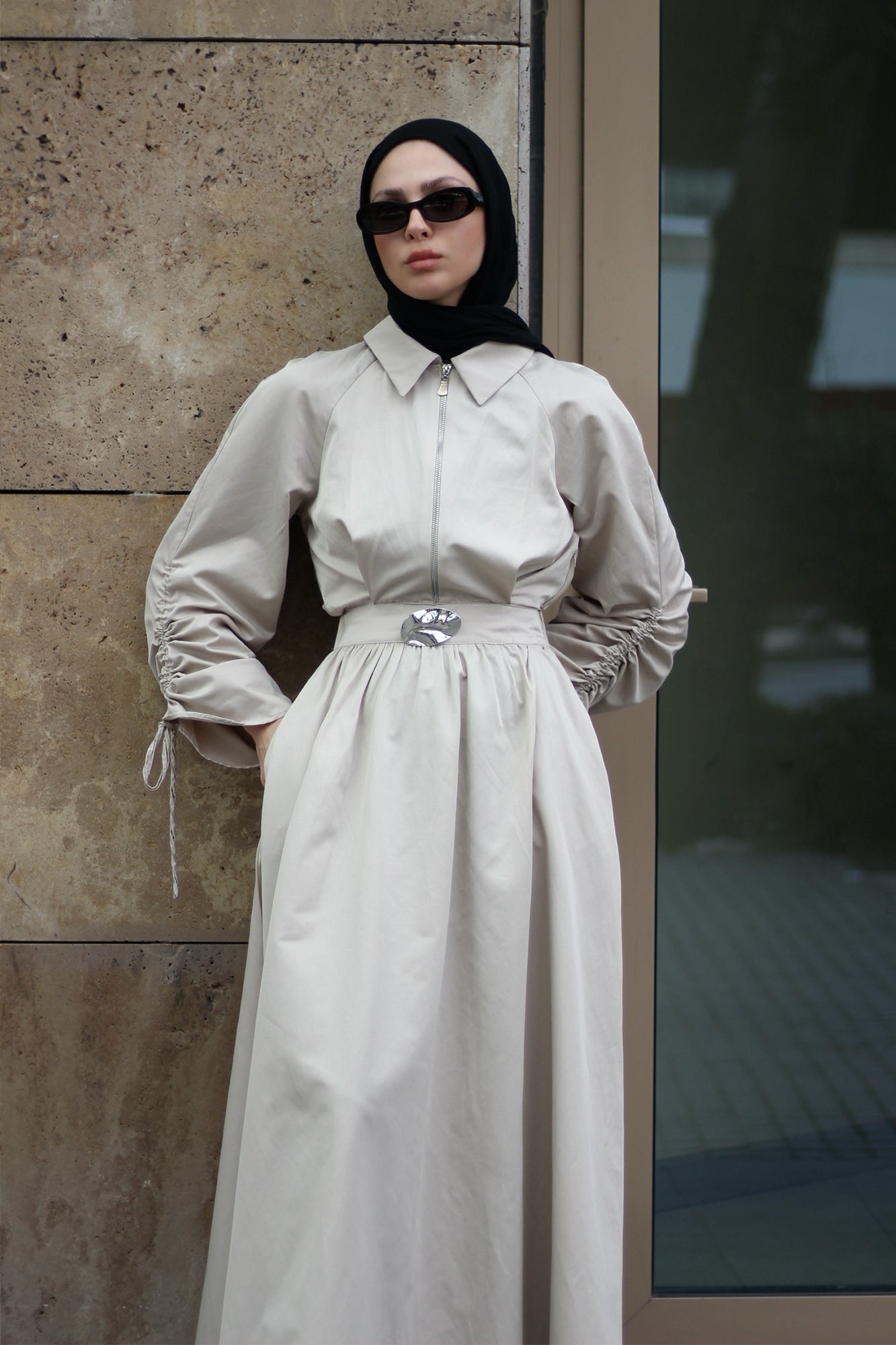 KOLU BÜZGÜLÜ METAL BROŞLU ELBİSE