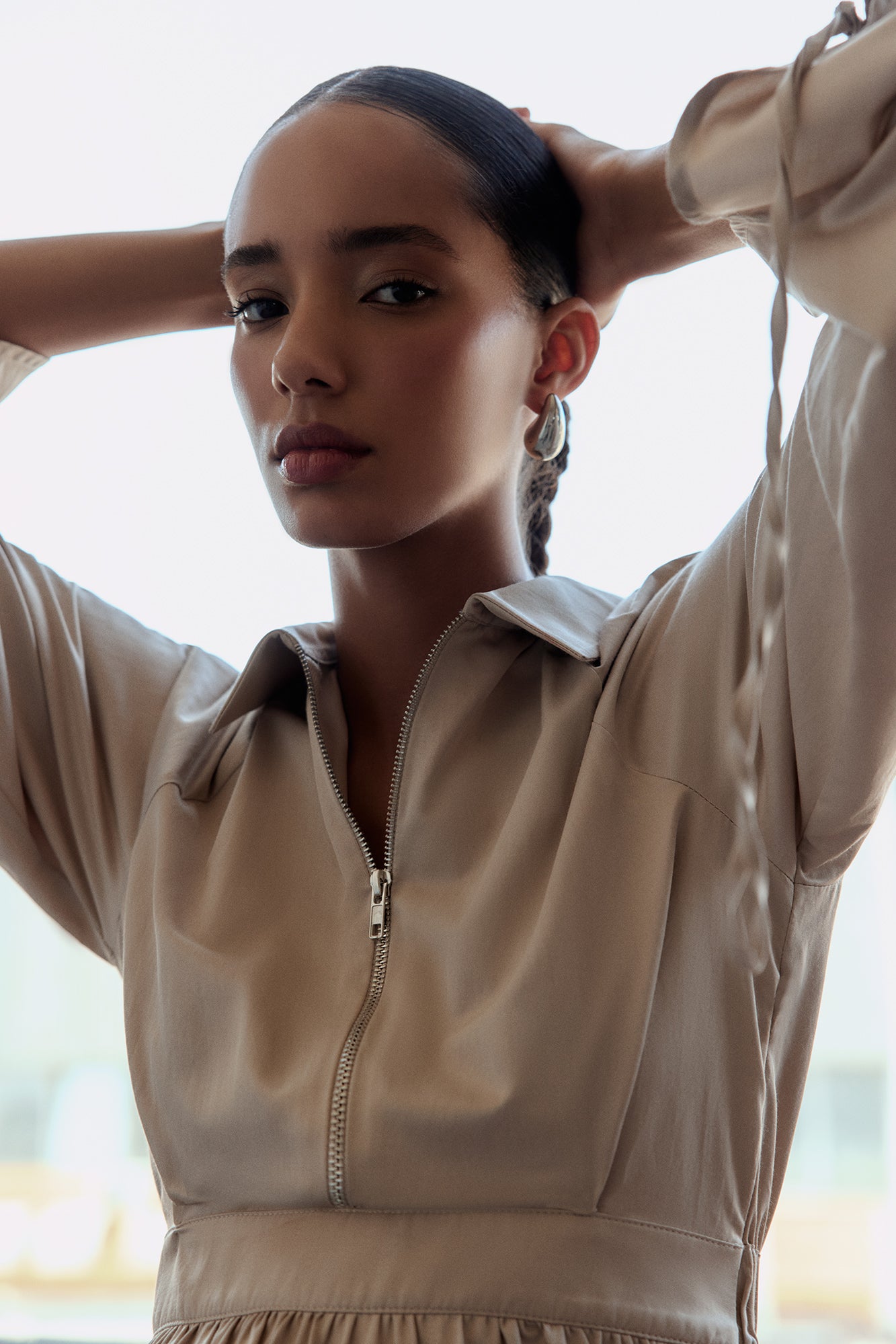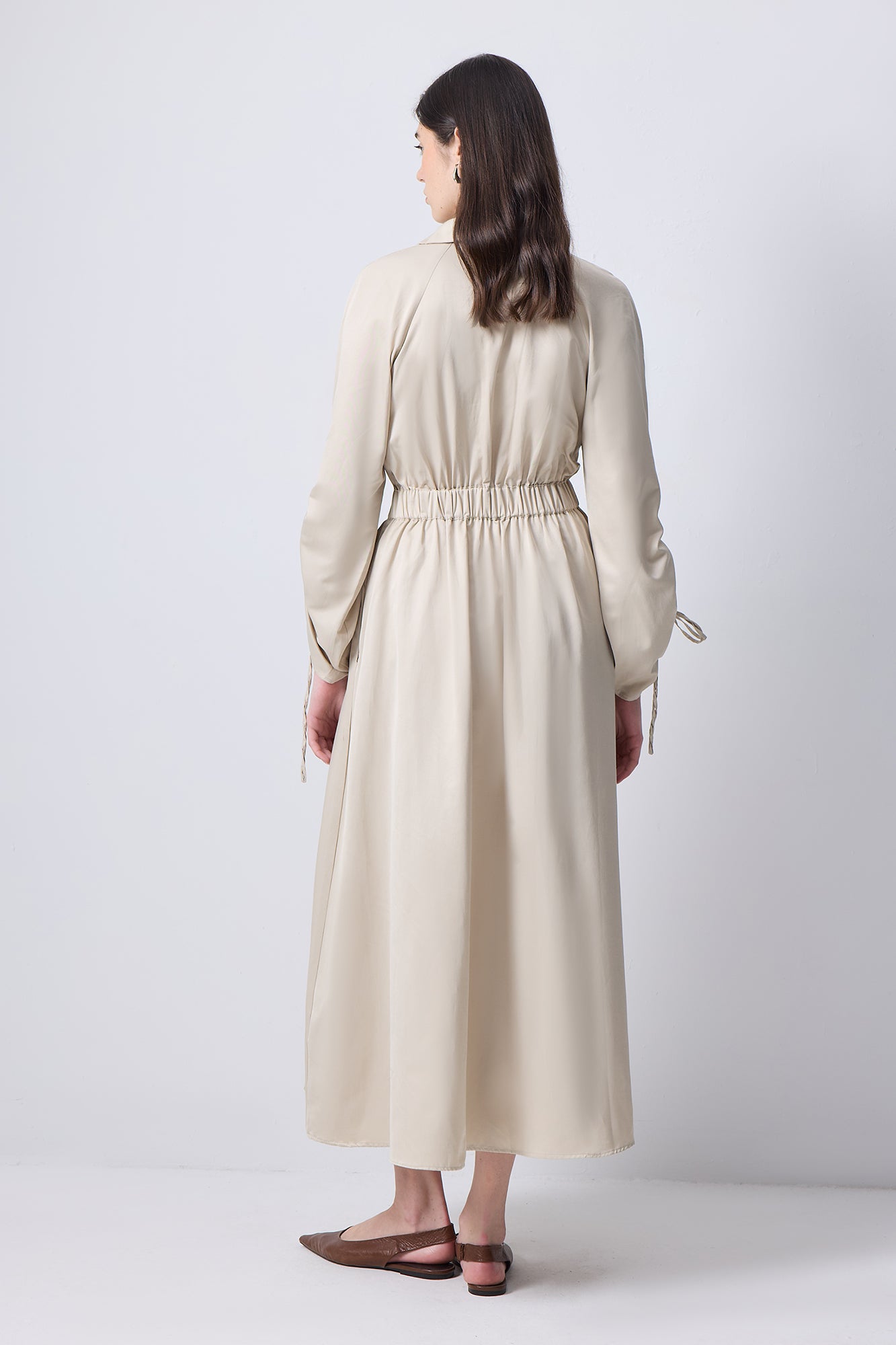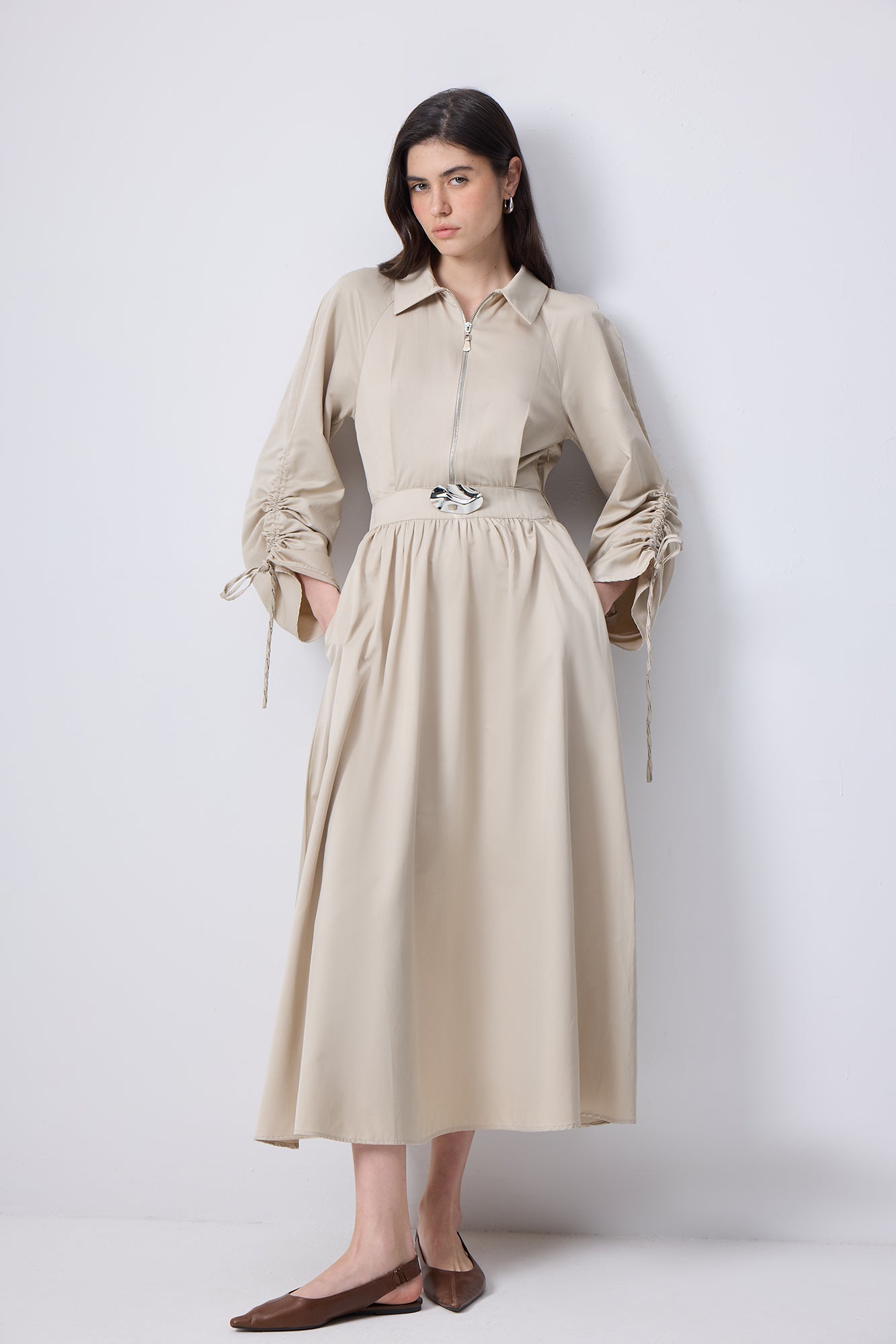 KOLU BÜZGÜLÜ METAL BROŞLU ELBİSE