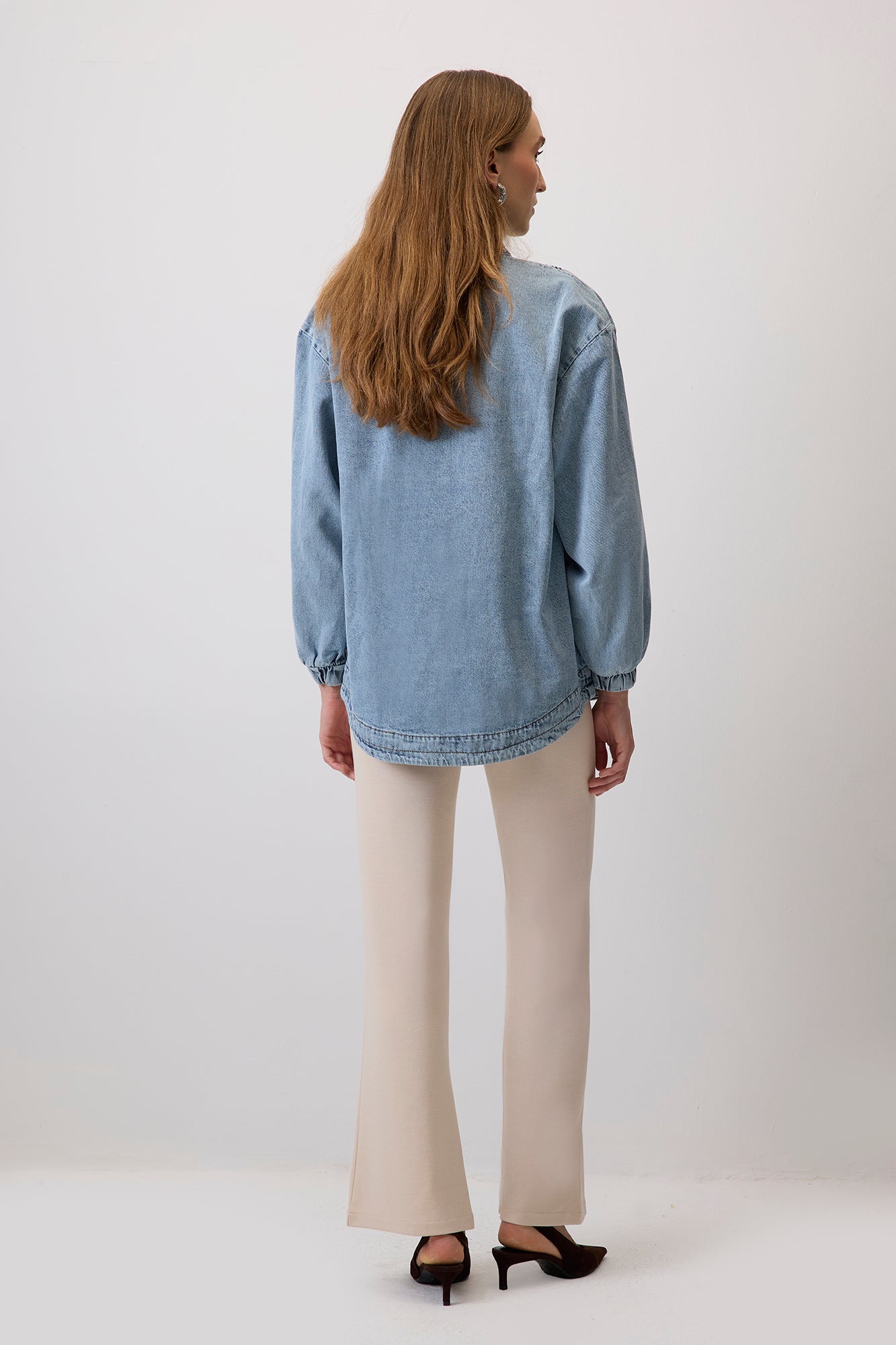NAKIŞLI HAKIM YAKA DENIM CEKET