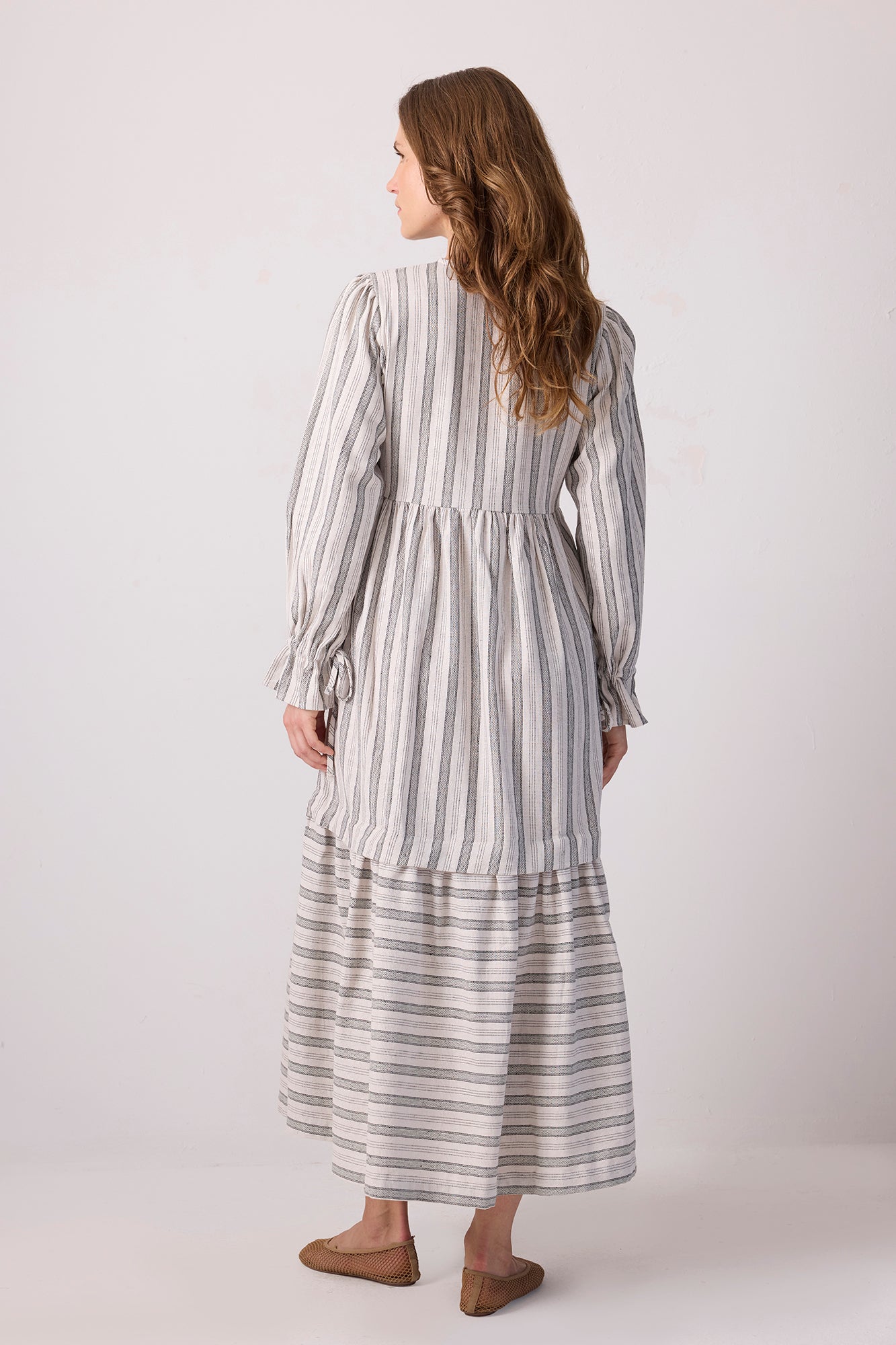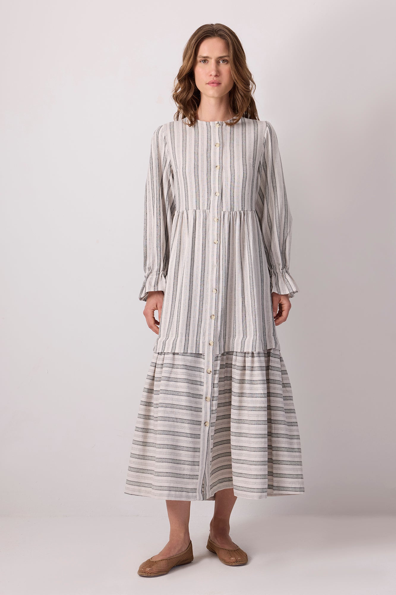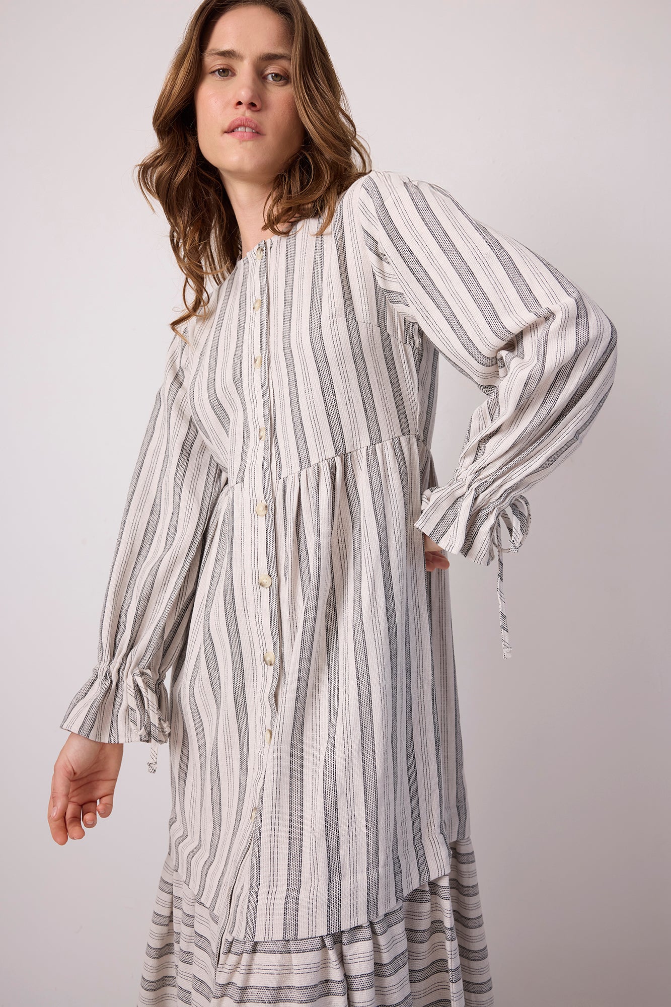 NATUREL DOKULU ÇİZGİLİ ELBİSE