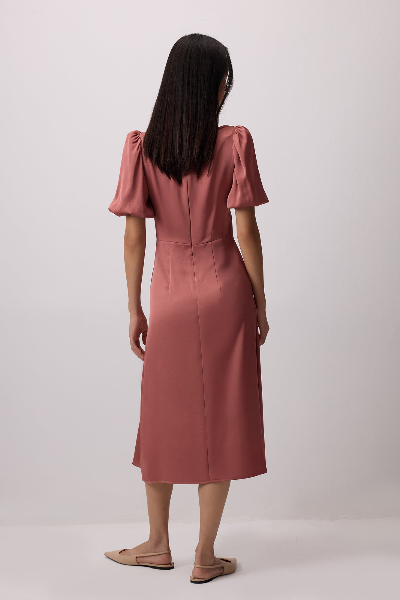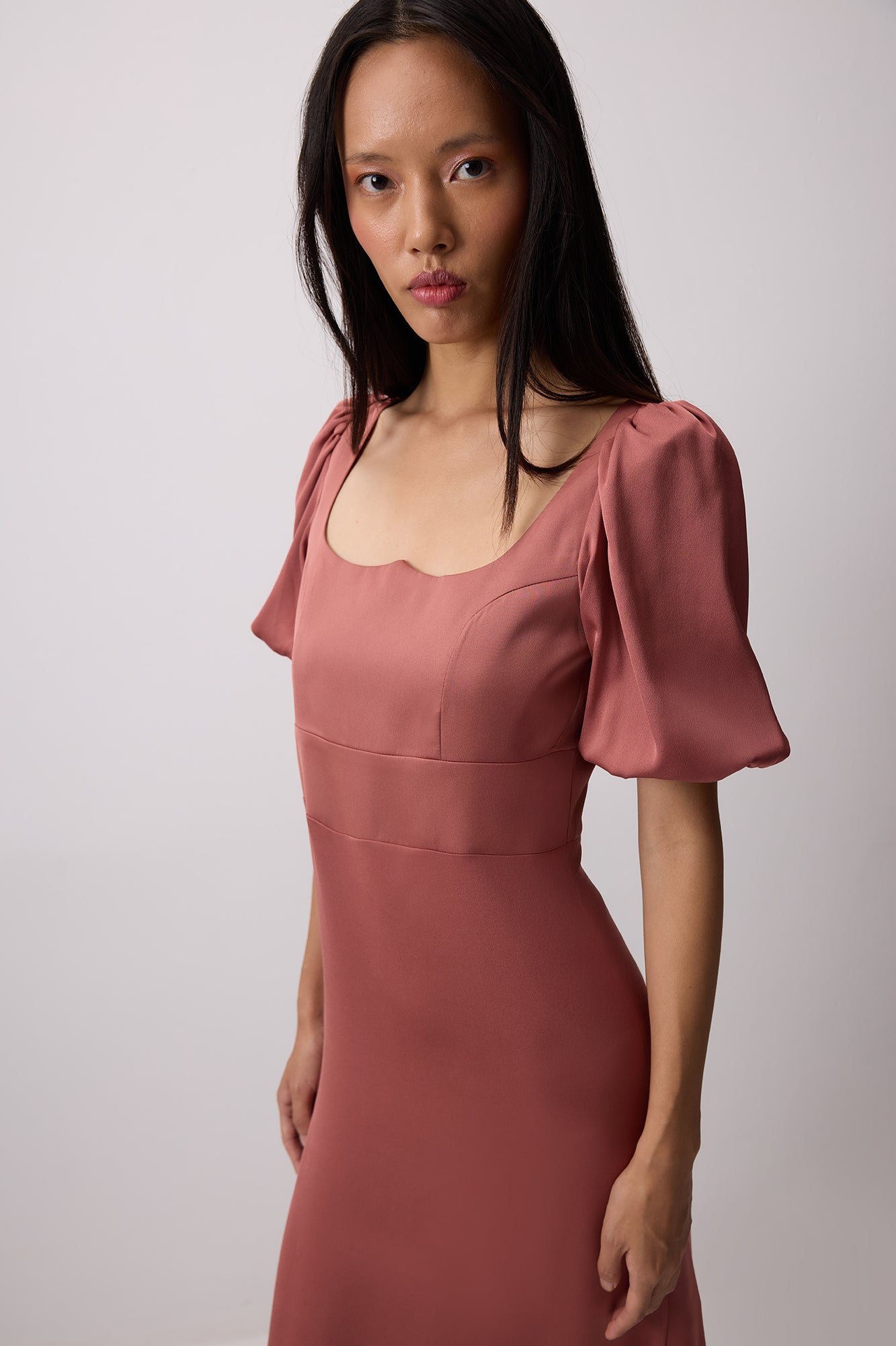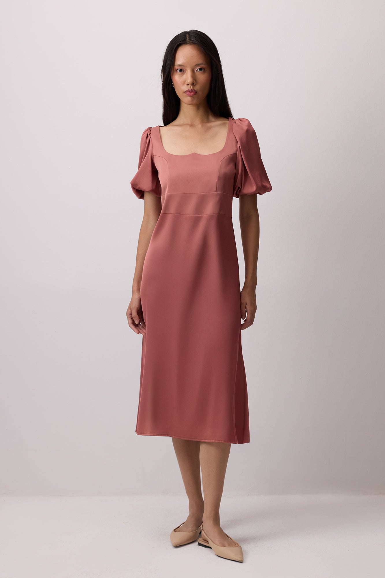 OMUZ BÜZGÜLÜ KISA KOLLU ELBİSE