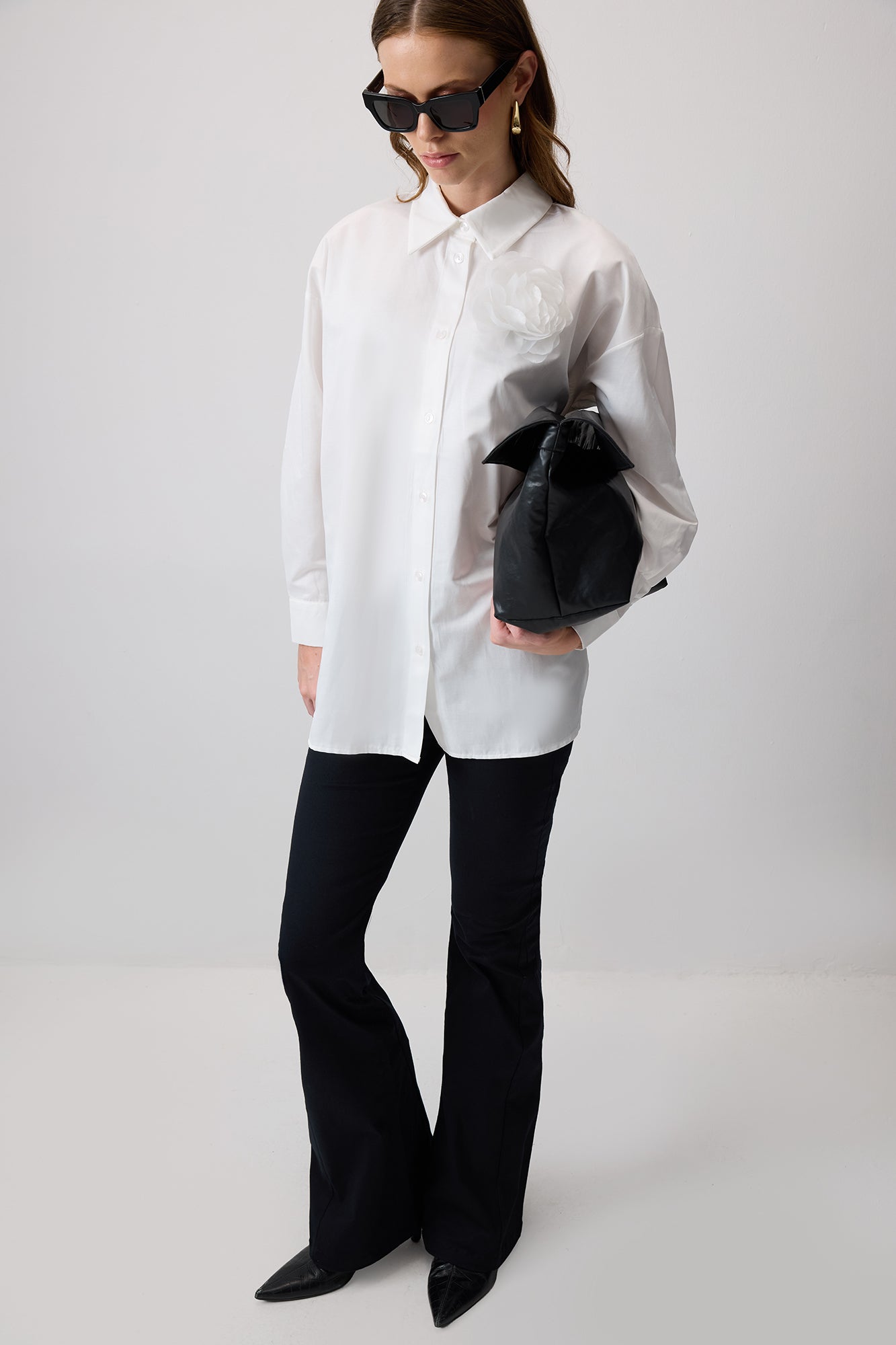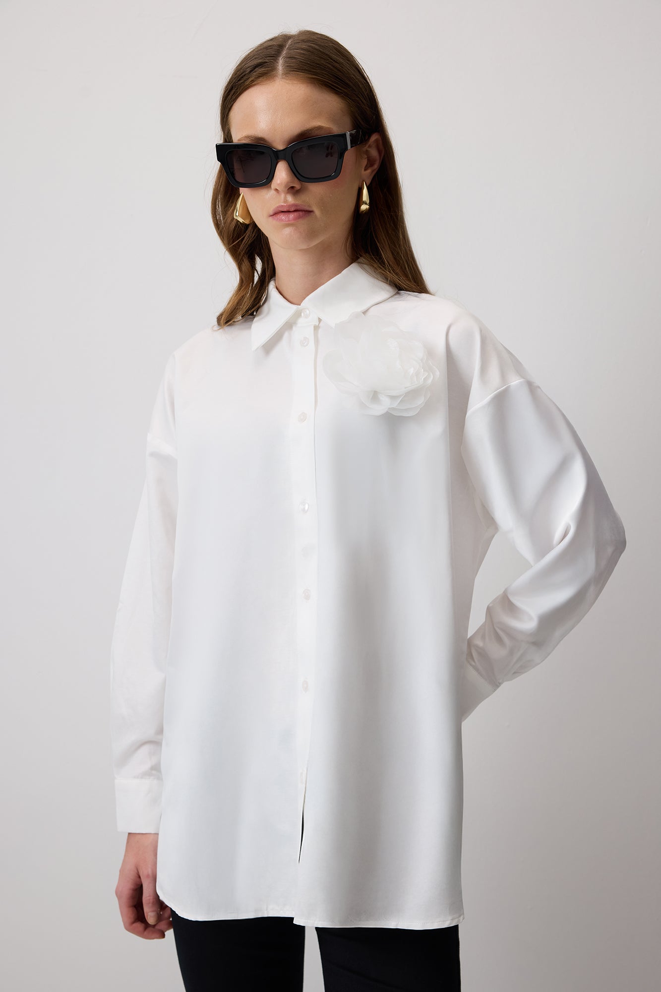 ORGANZE ÇİÇEK BROŞLU GÖMLEK