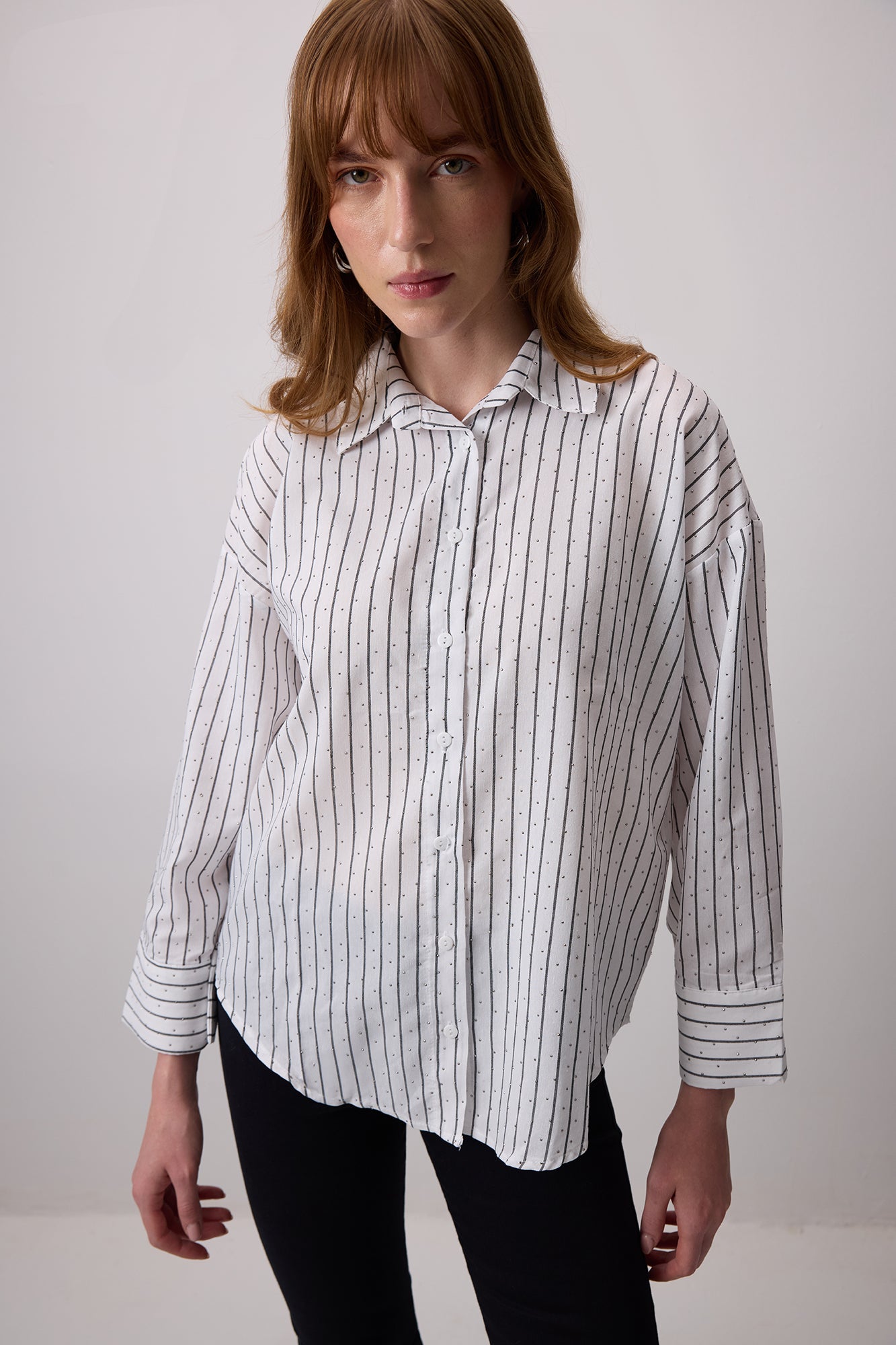 TAŞ İŞLEMELİ ÇİZGİLİ POPLİN GÖMLEK