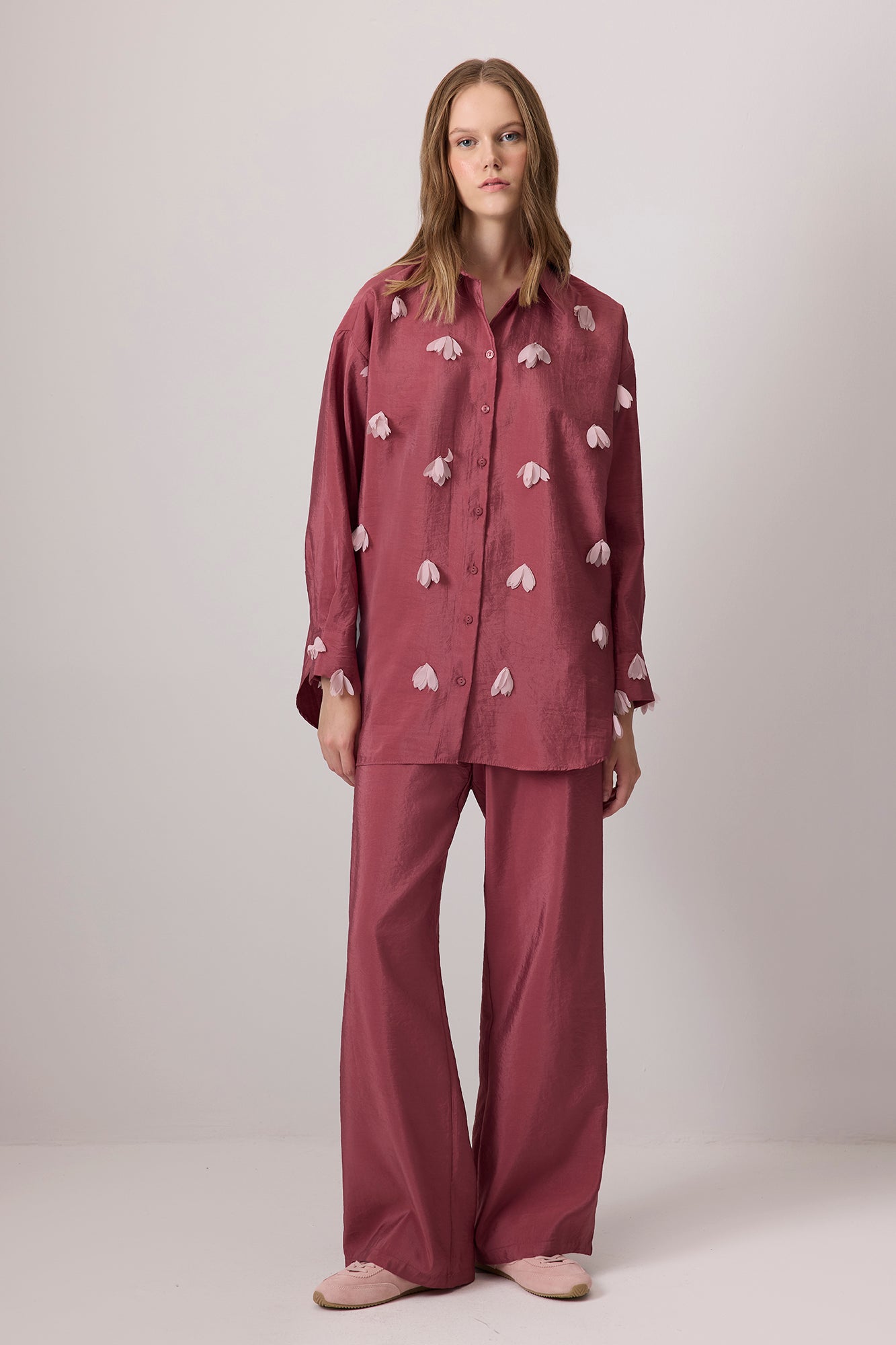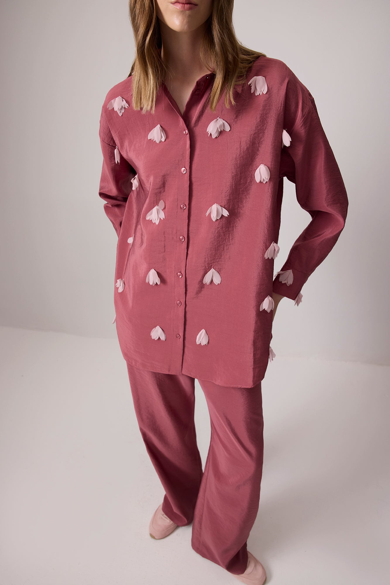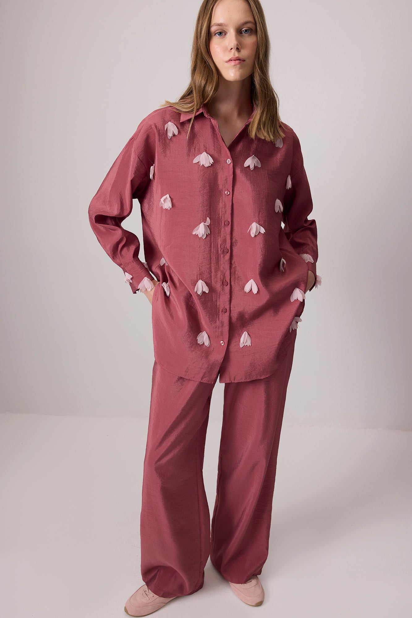 TÜL ÇİÇEK İŞLEMELİ GÖMLEK