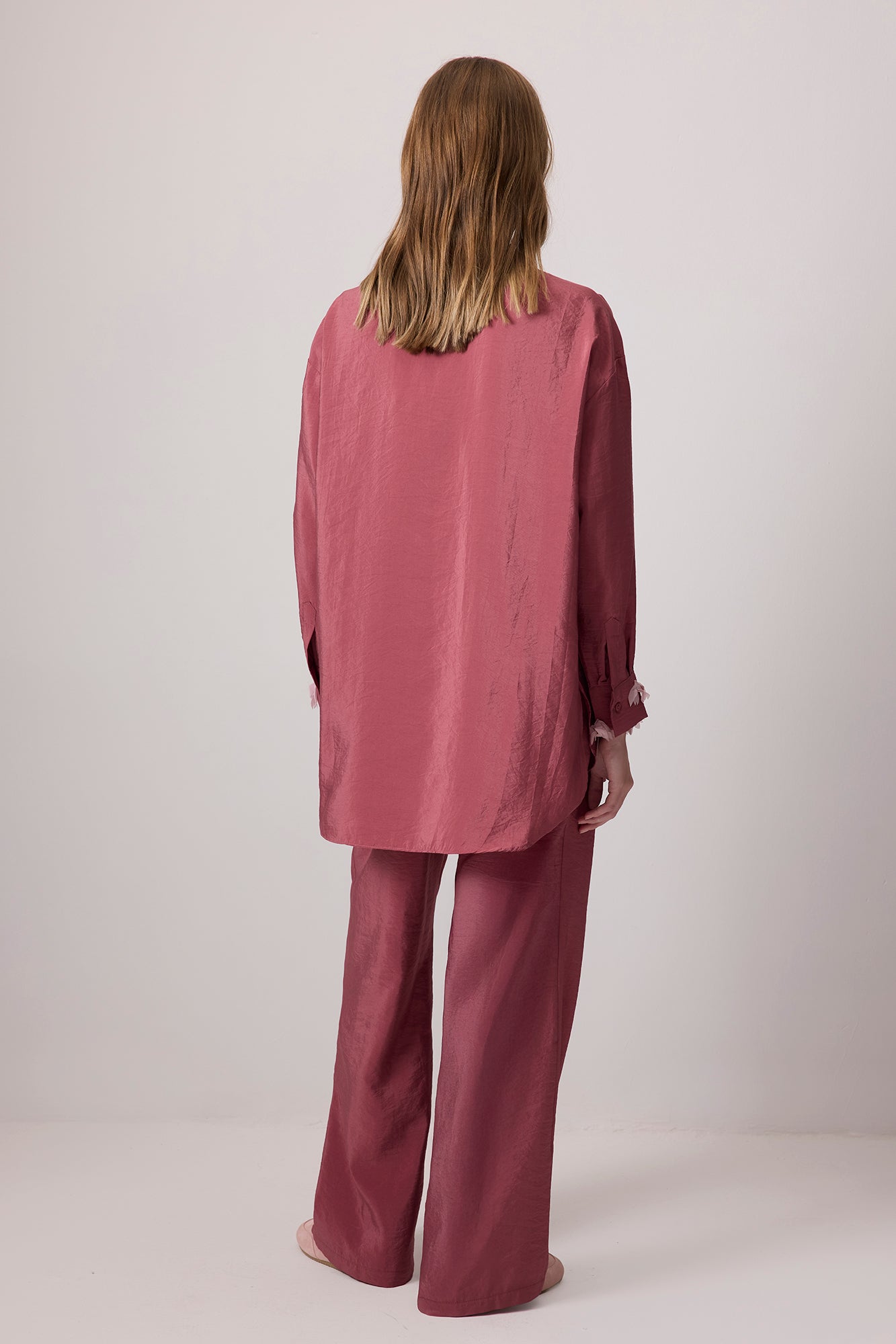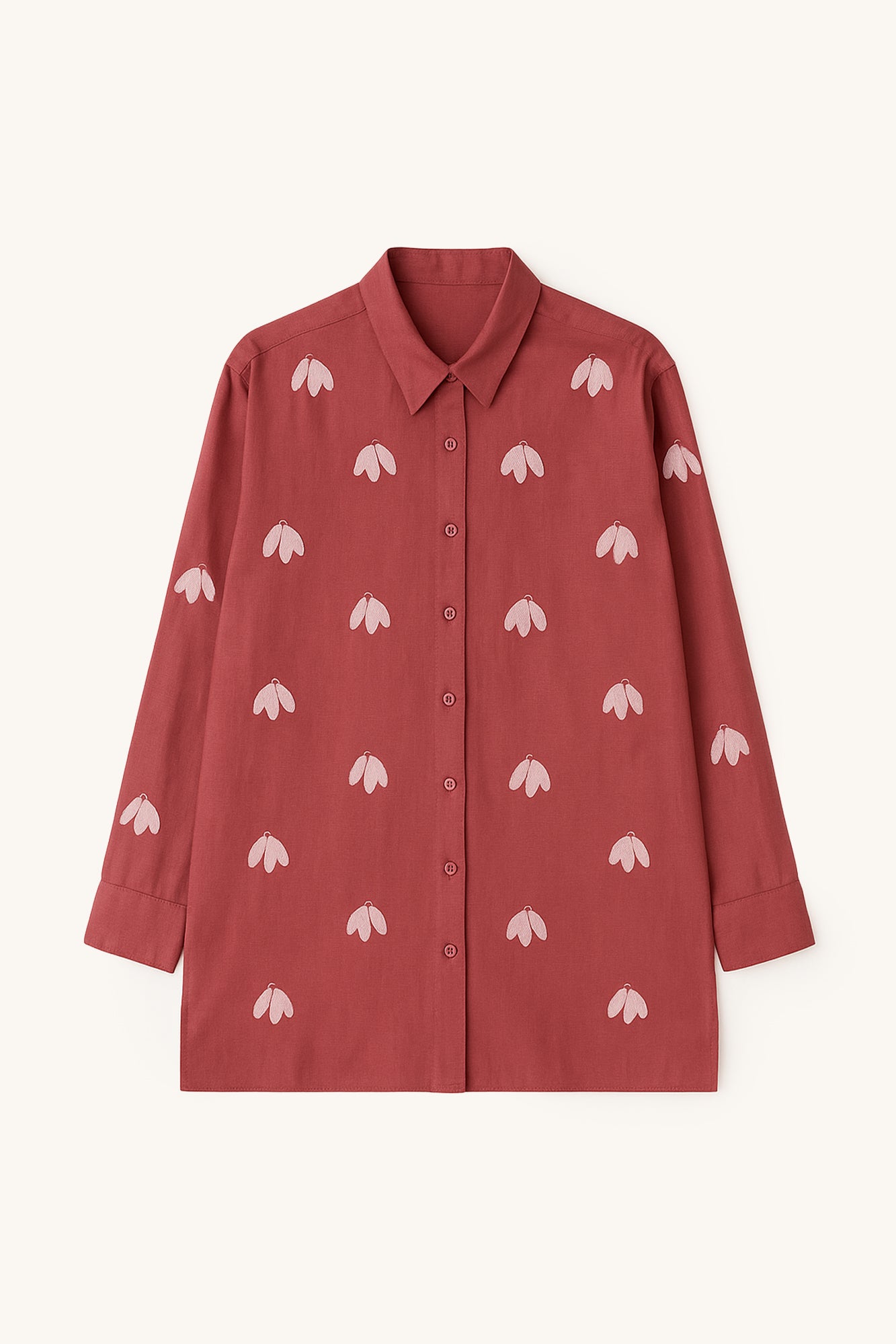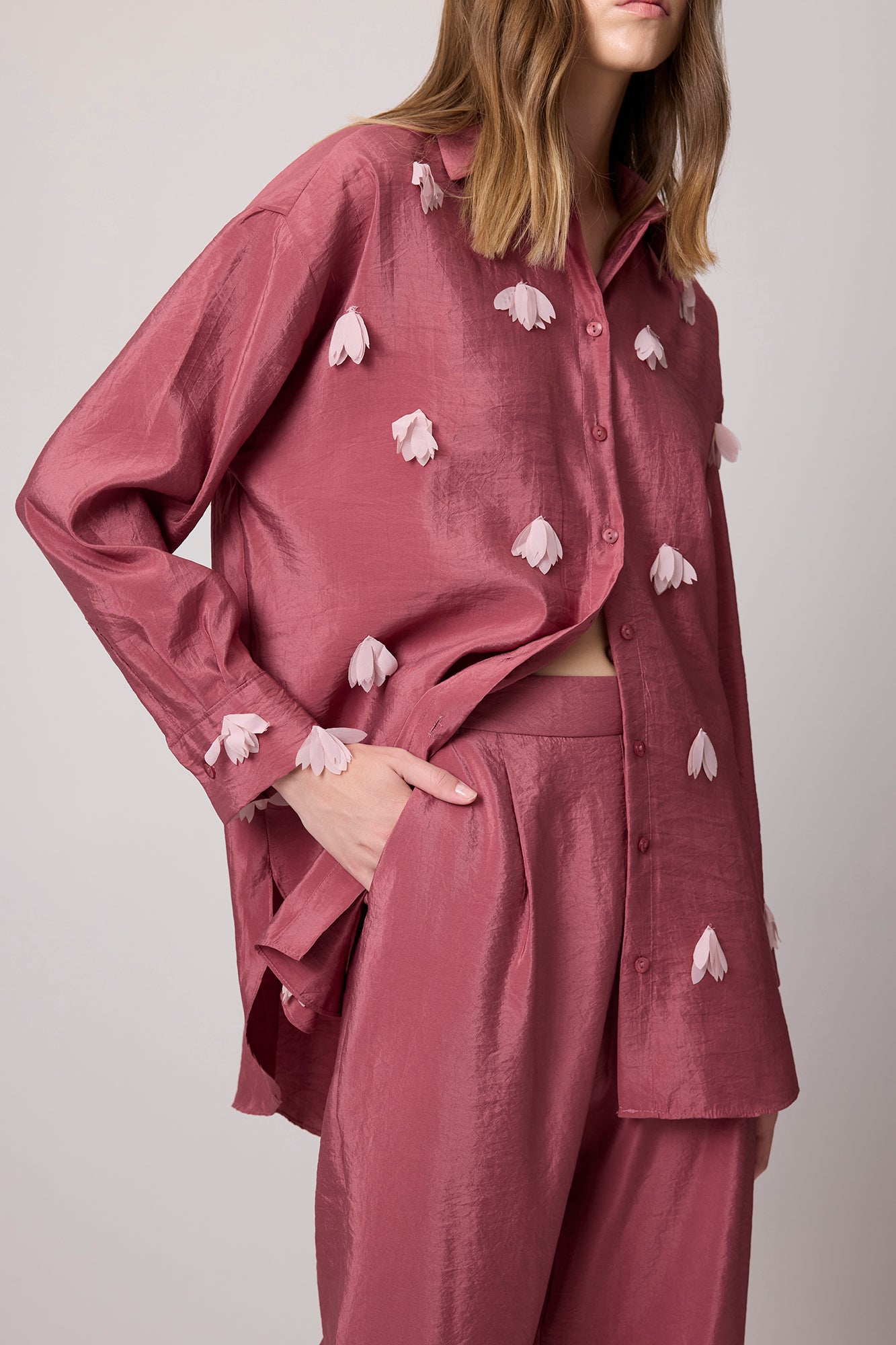 TÜL ÇİÇEK İŞLEMELİ GÖMLEK