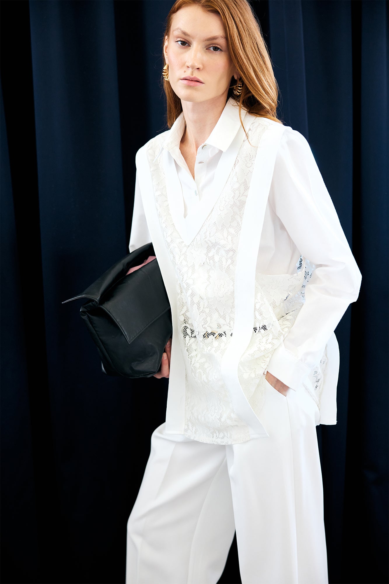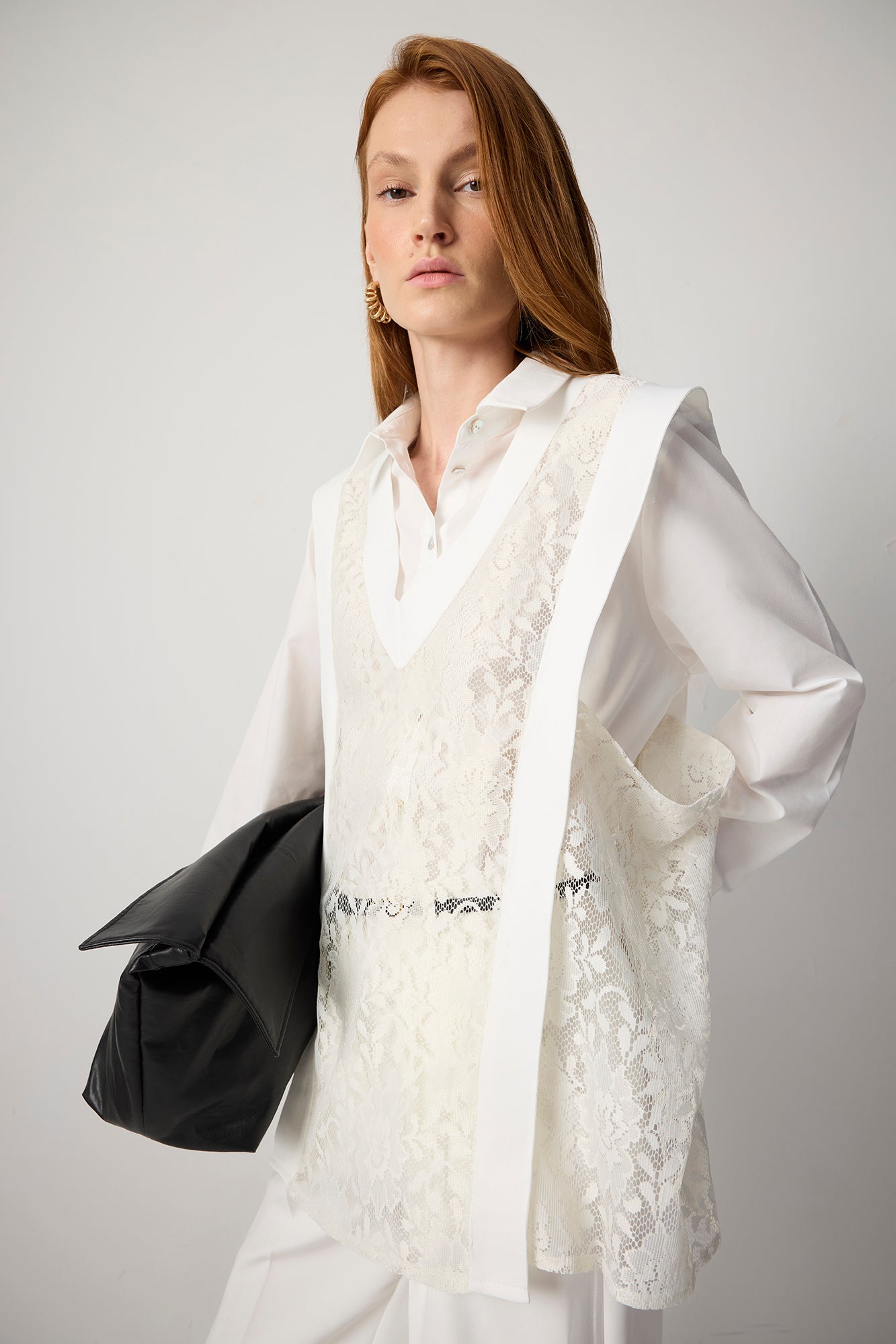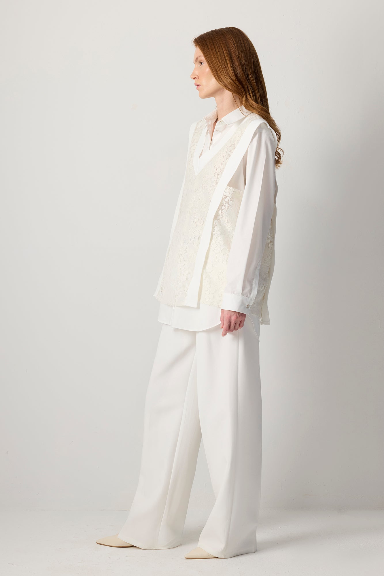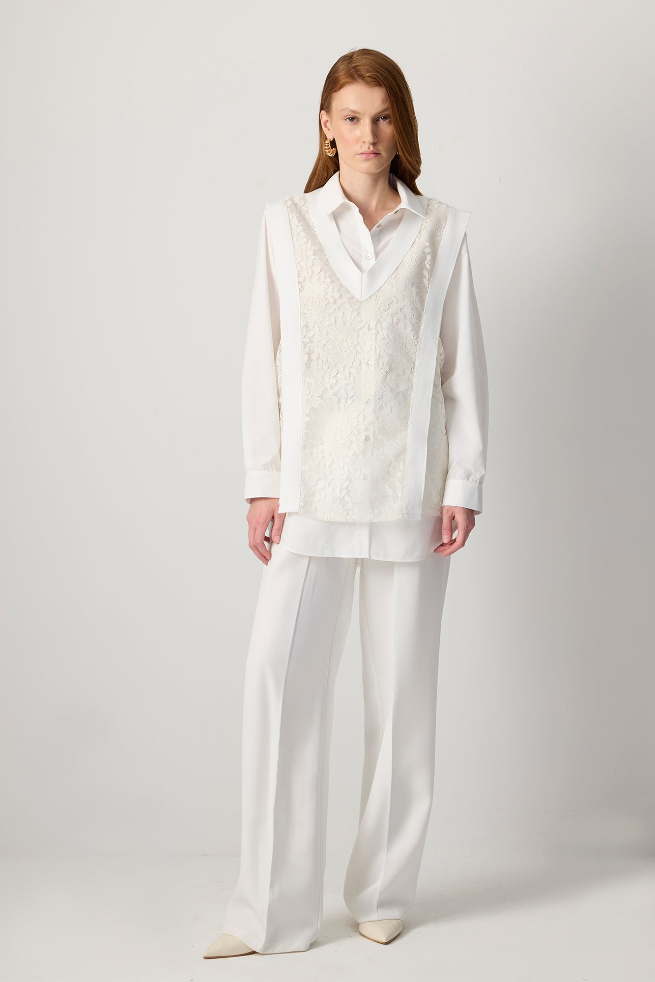 V YAKA DANTEL KATMANLI TUNİK