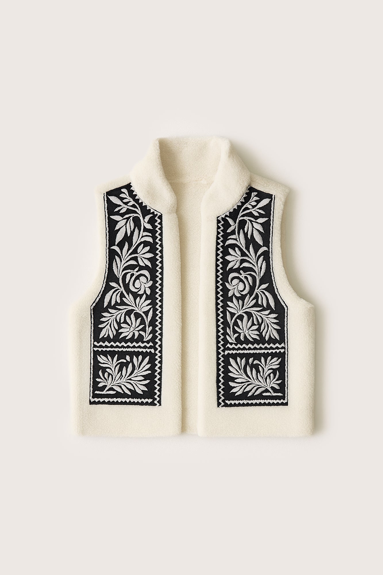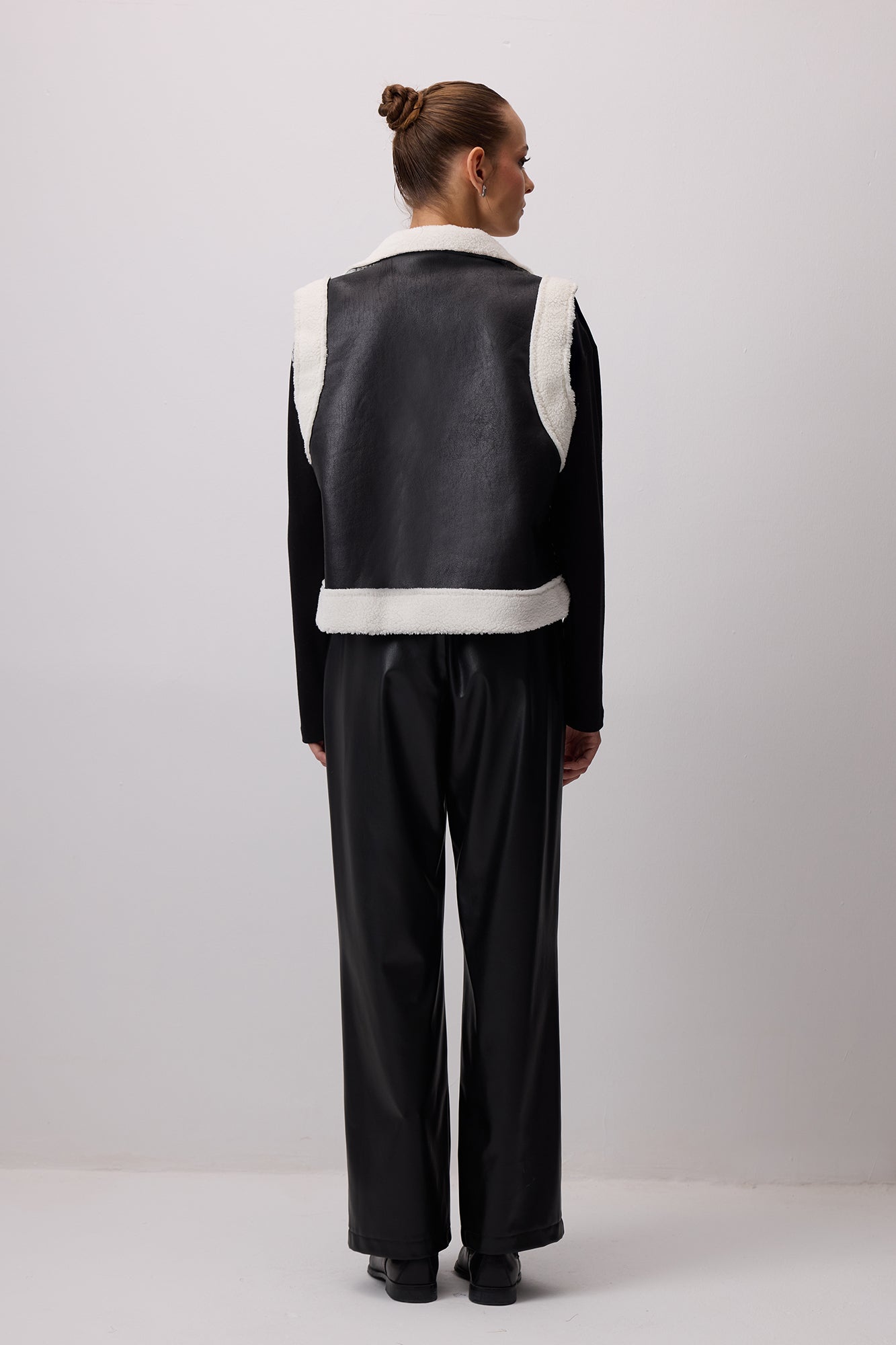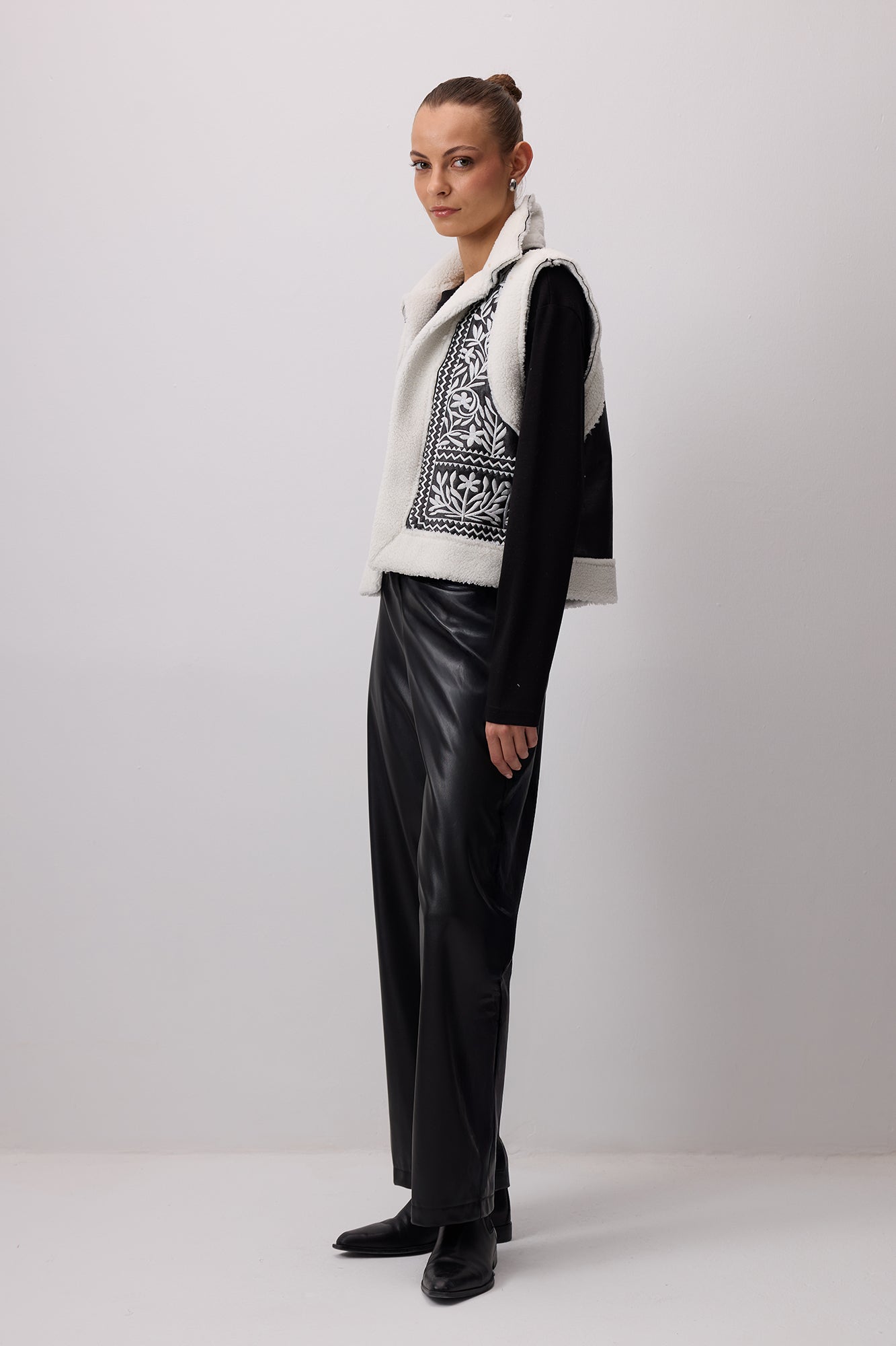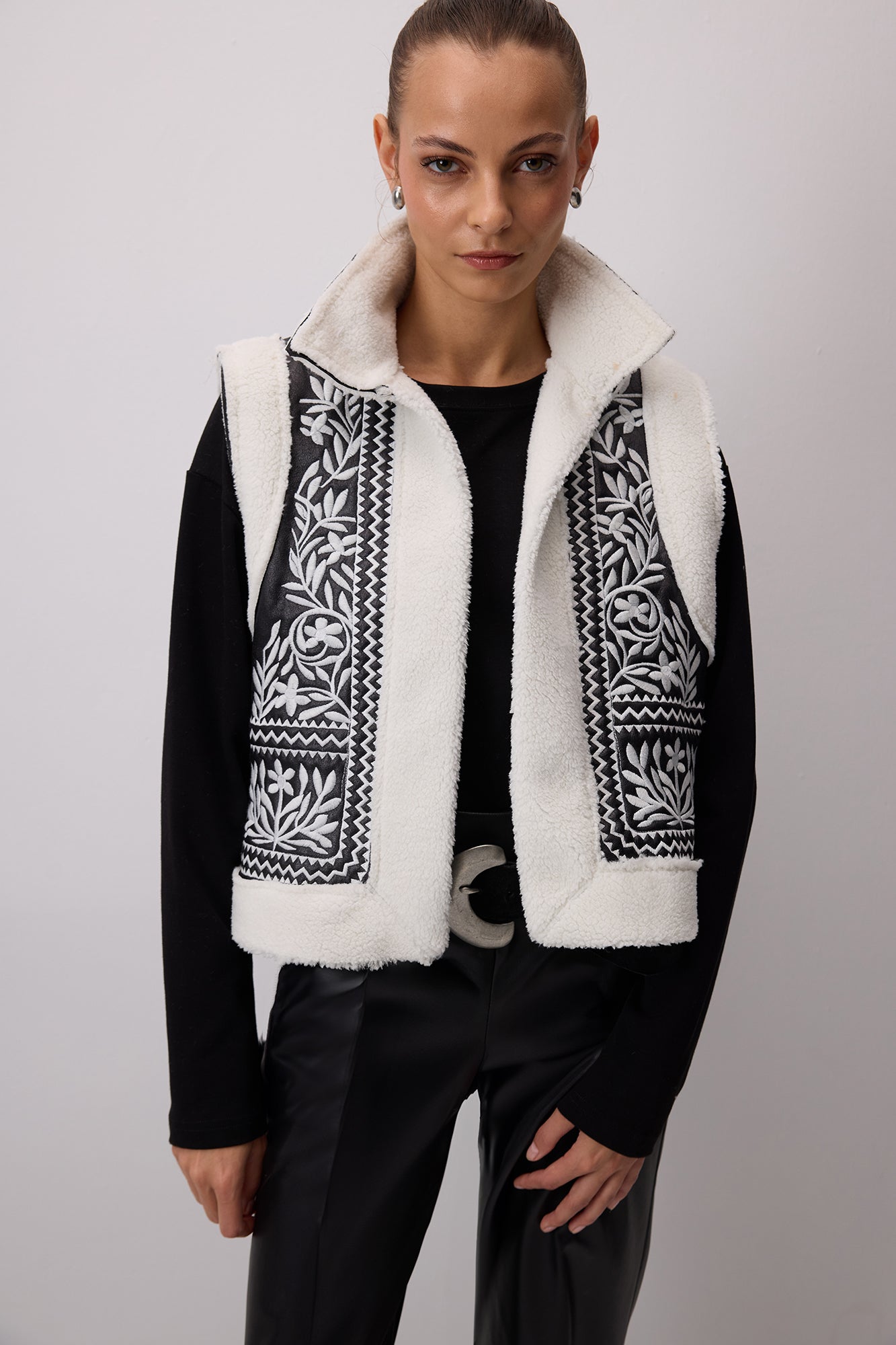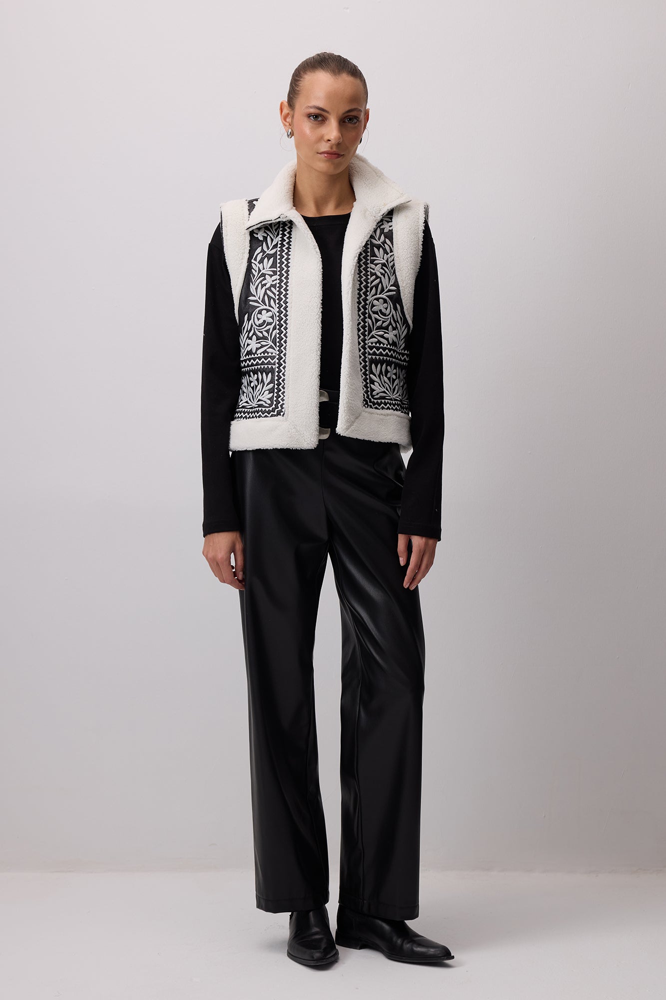 VEGAN DERİ NAKIŞLI KÜRKLÜ YELEK