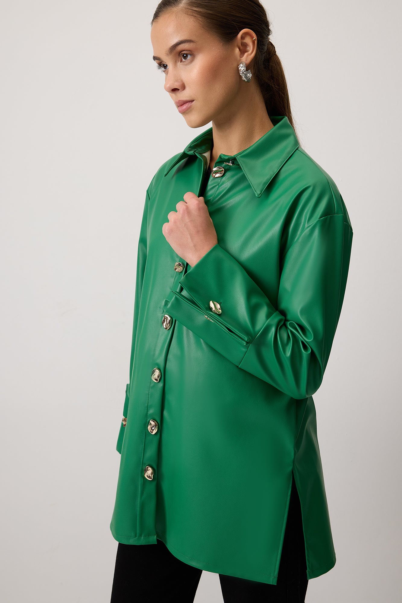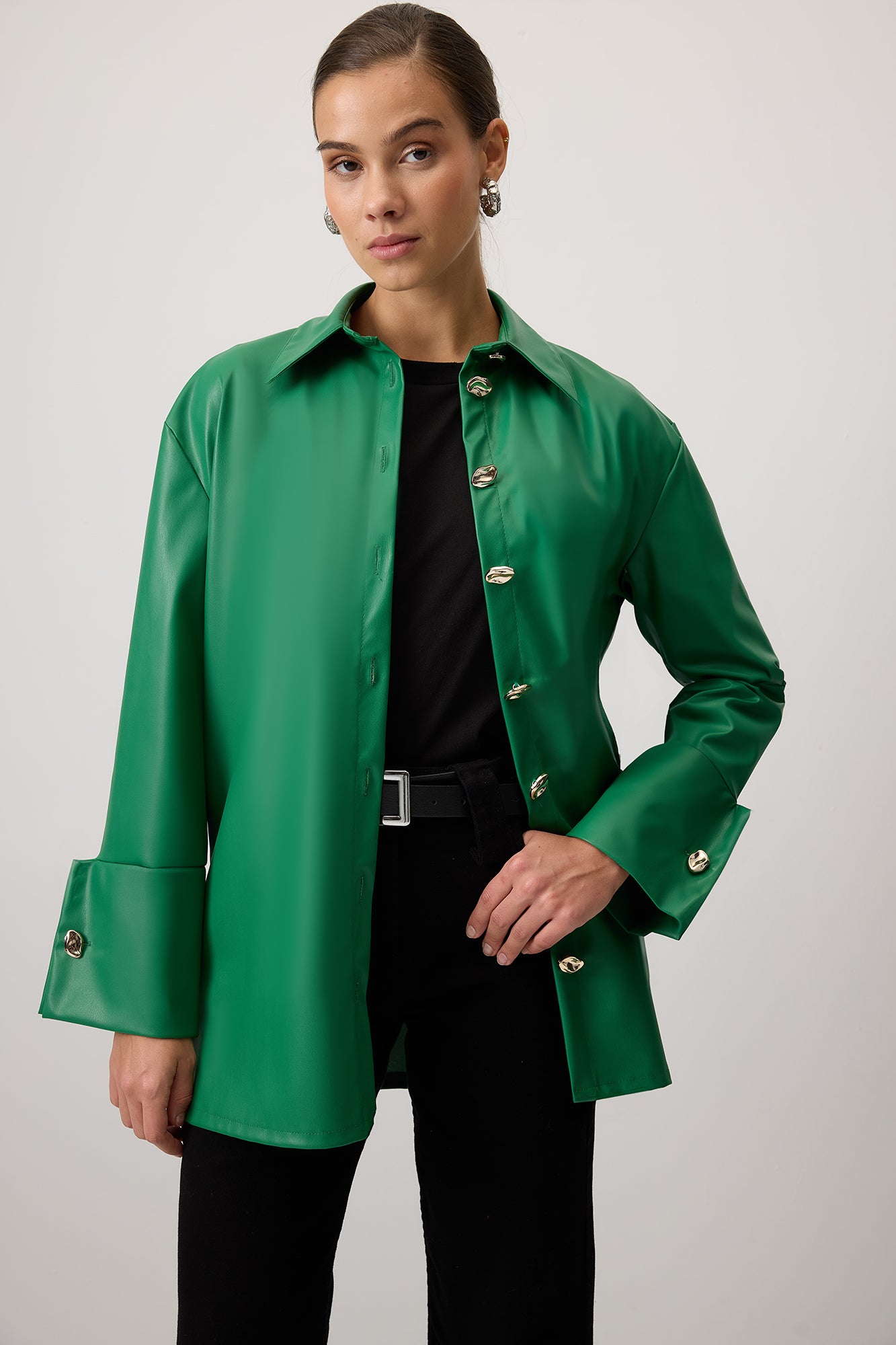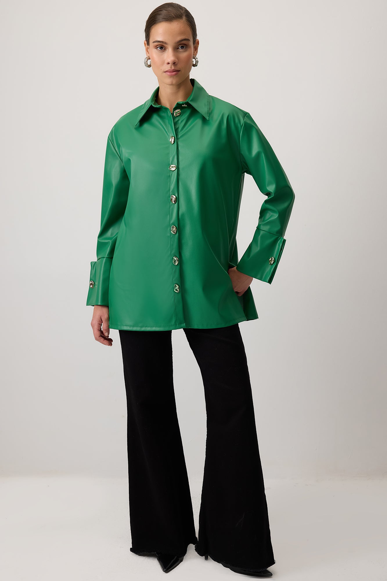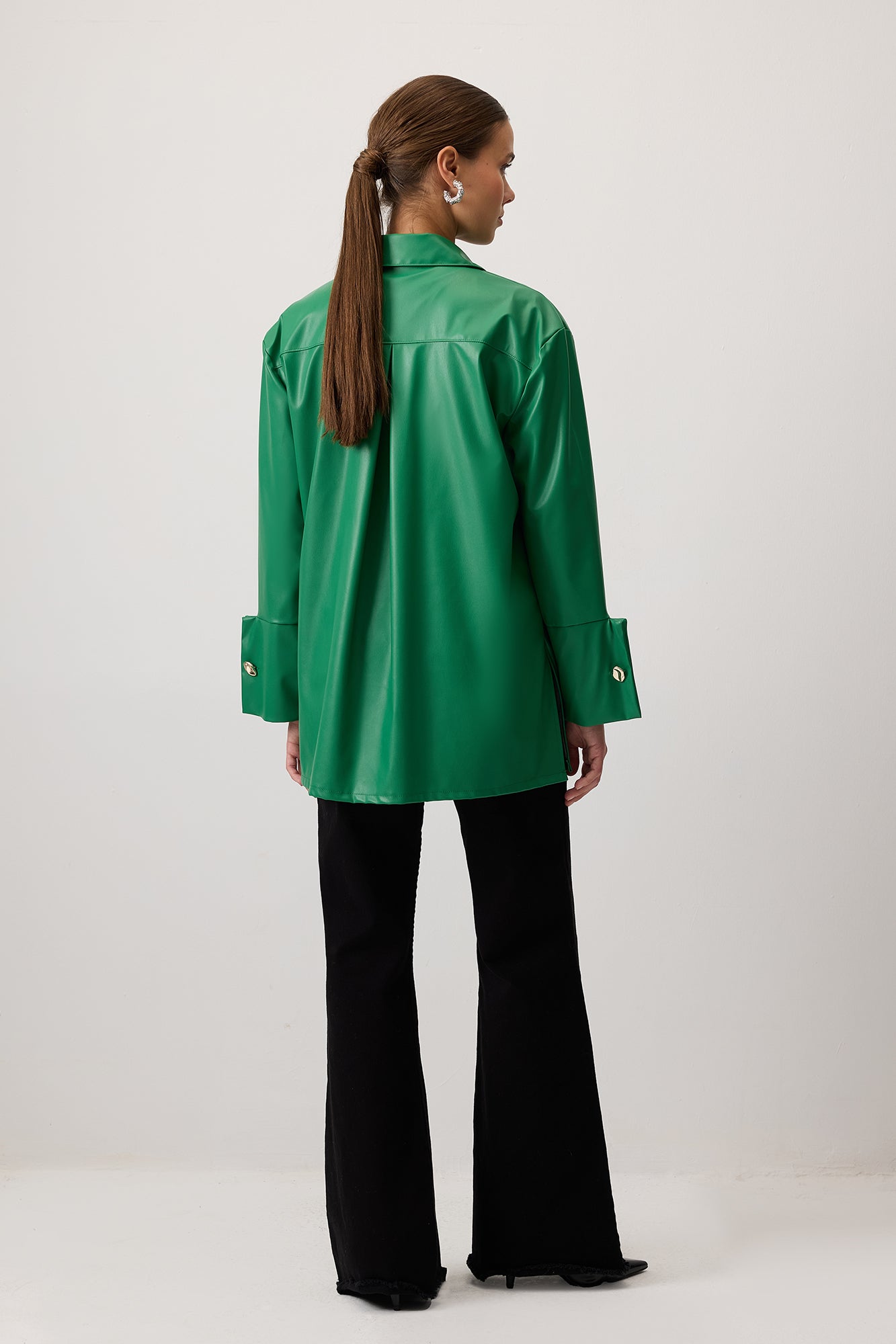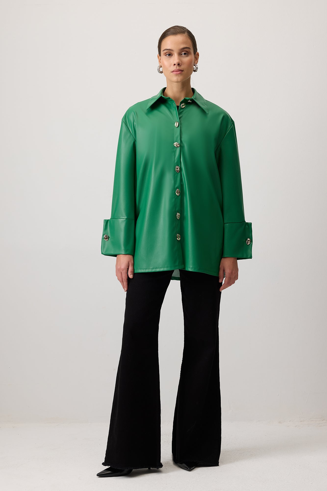 GENİŞ MANŞETLİ SUNİ DERİ GÖMLEK