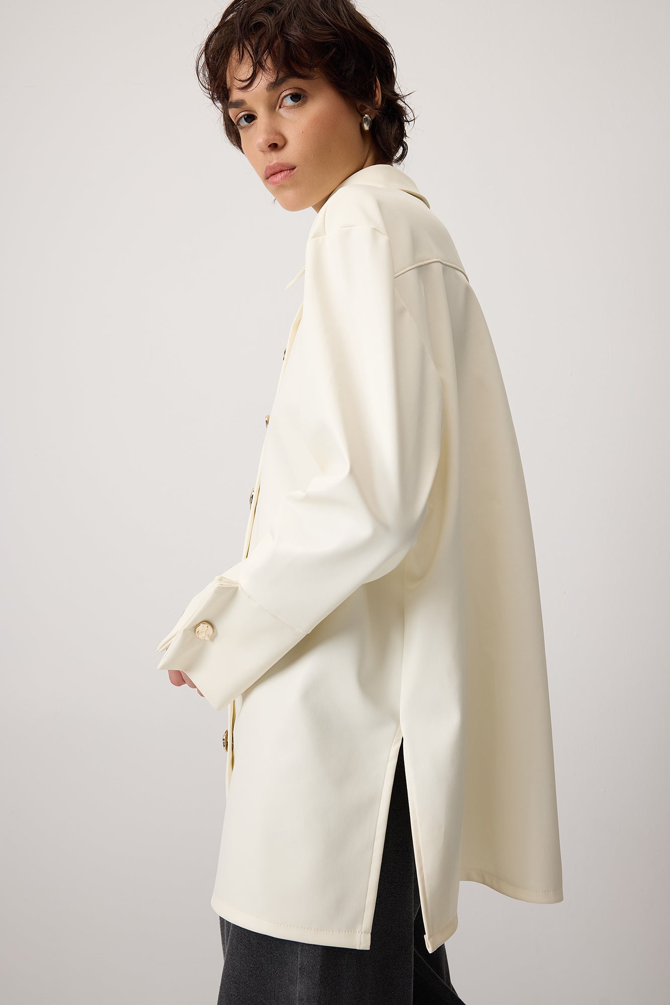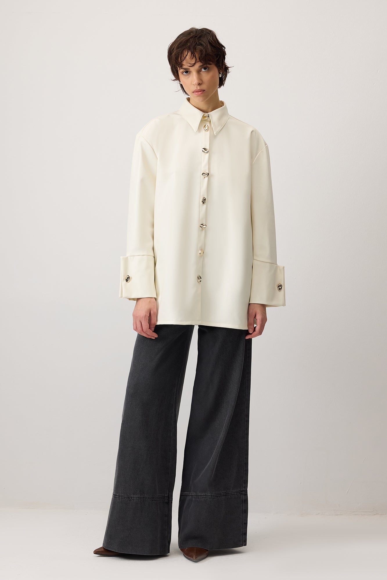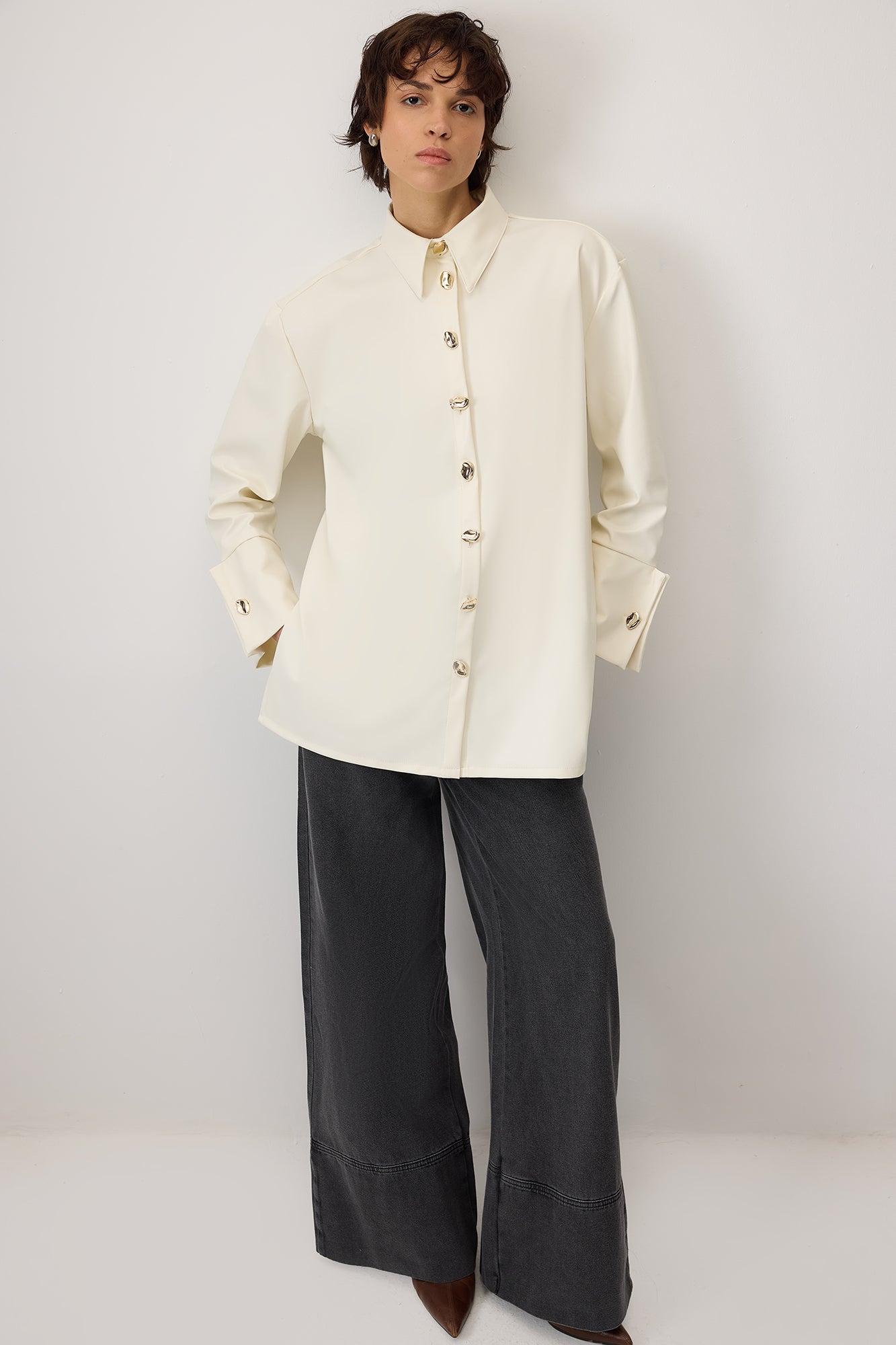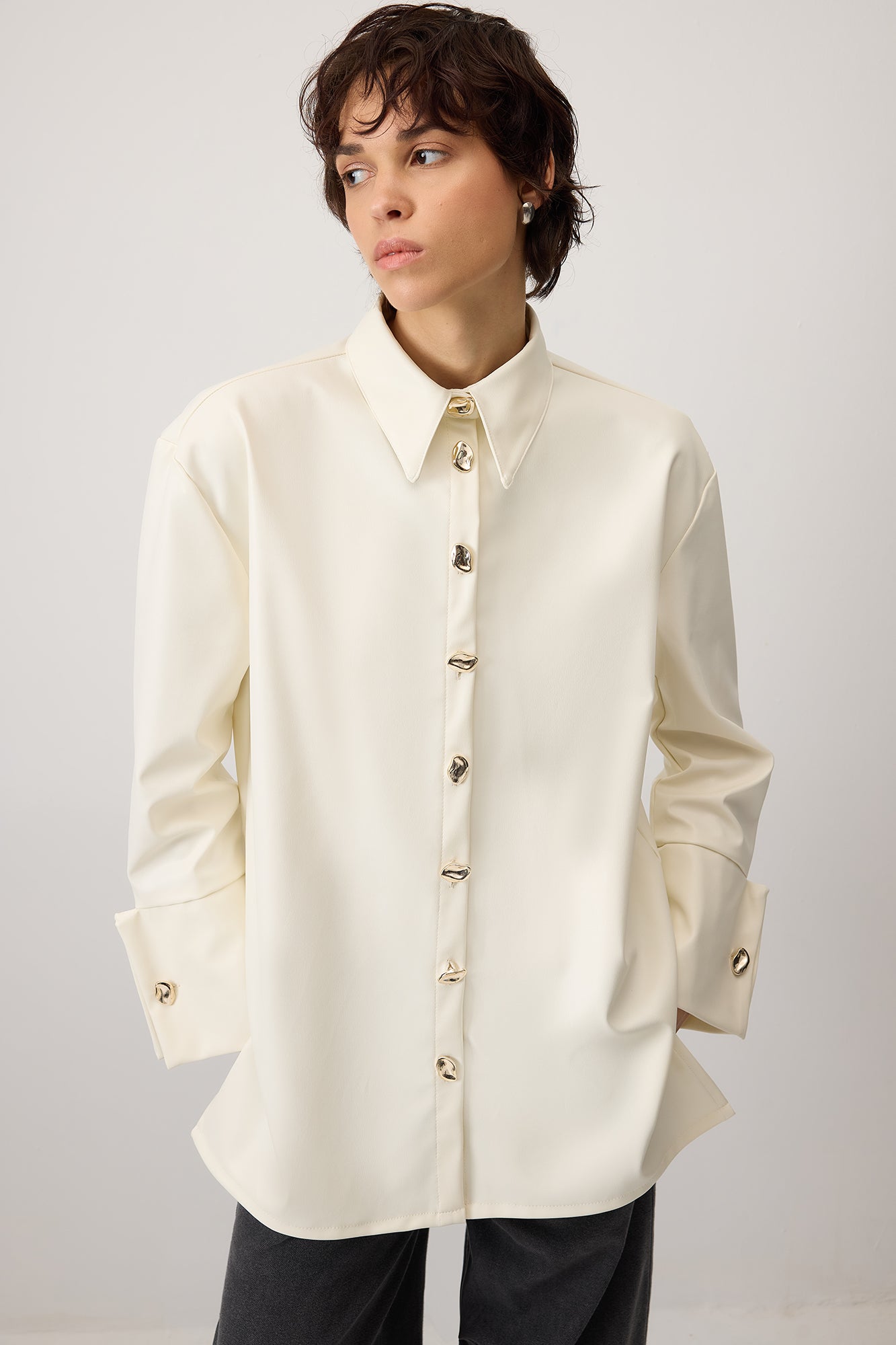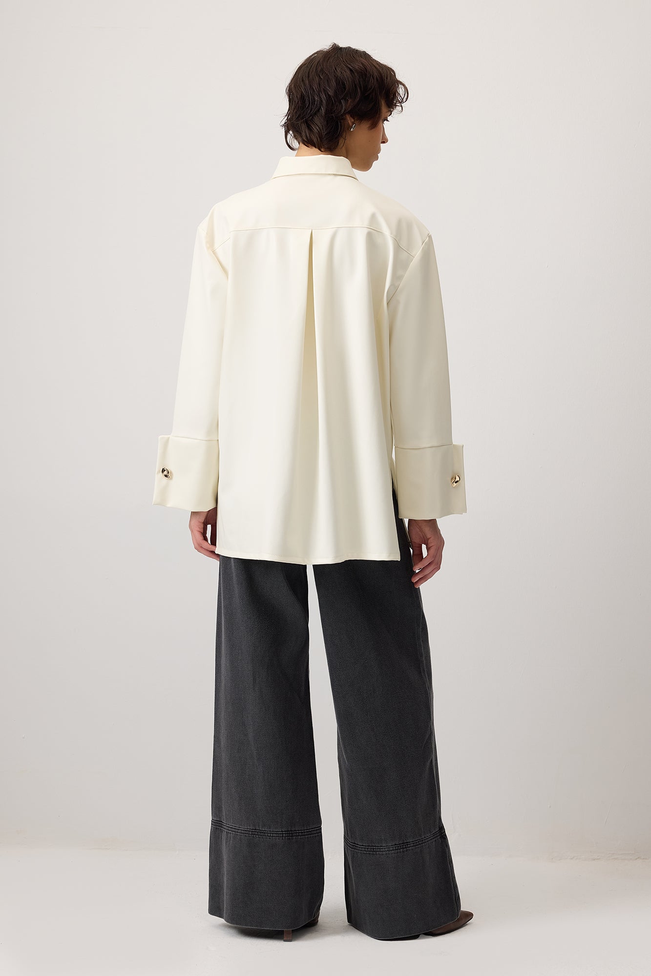 GENİŞ MANŞETLİ SUNİ DERİ GÖMLEK