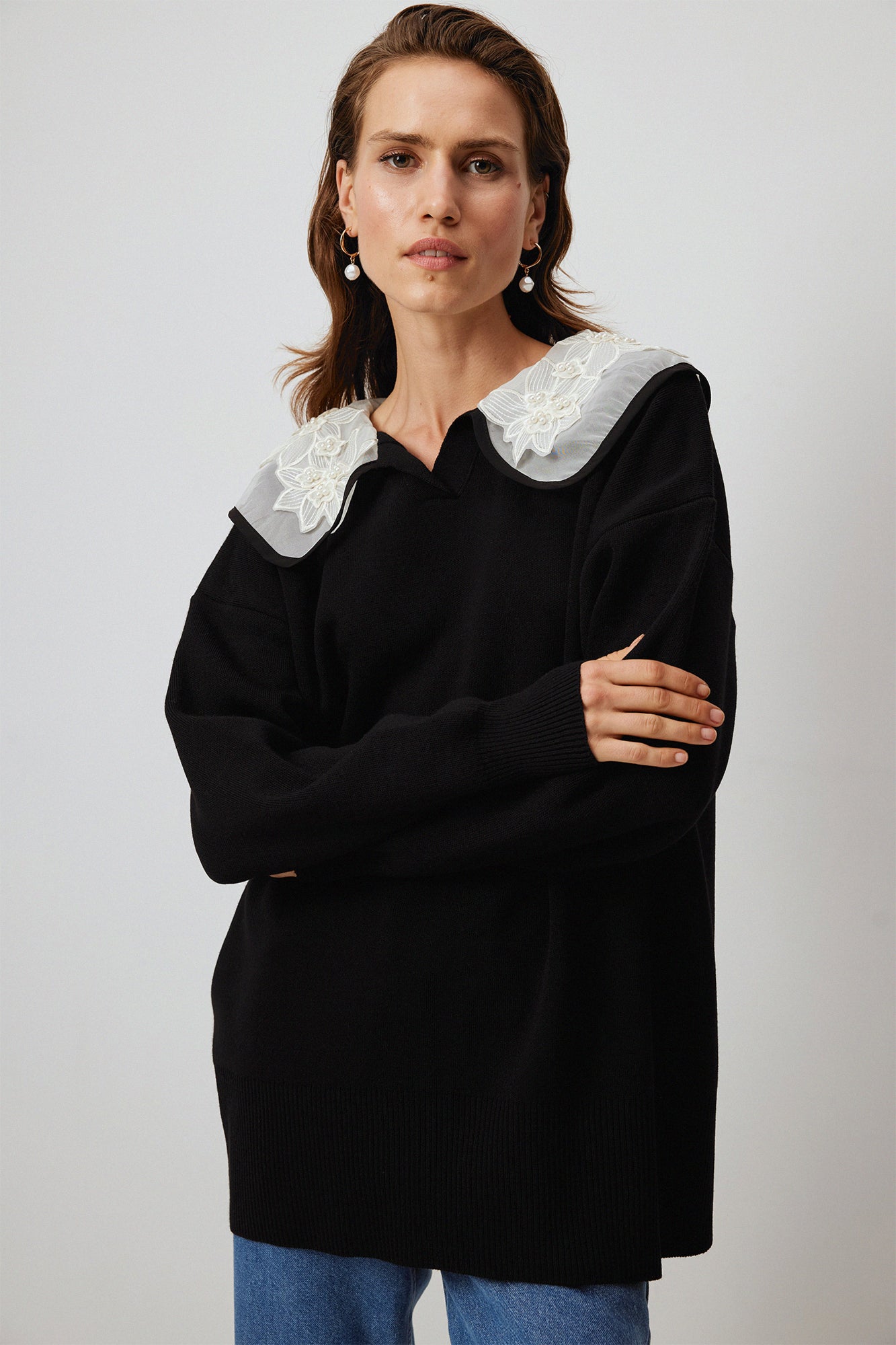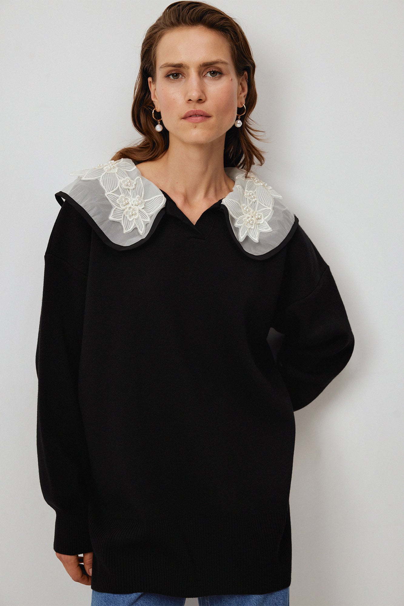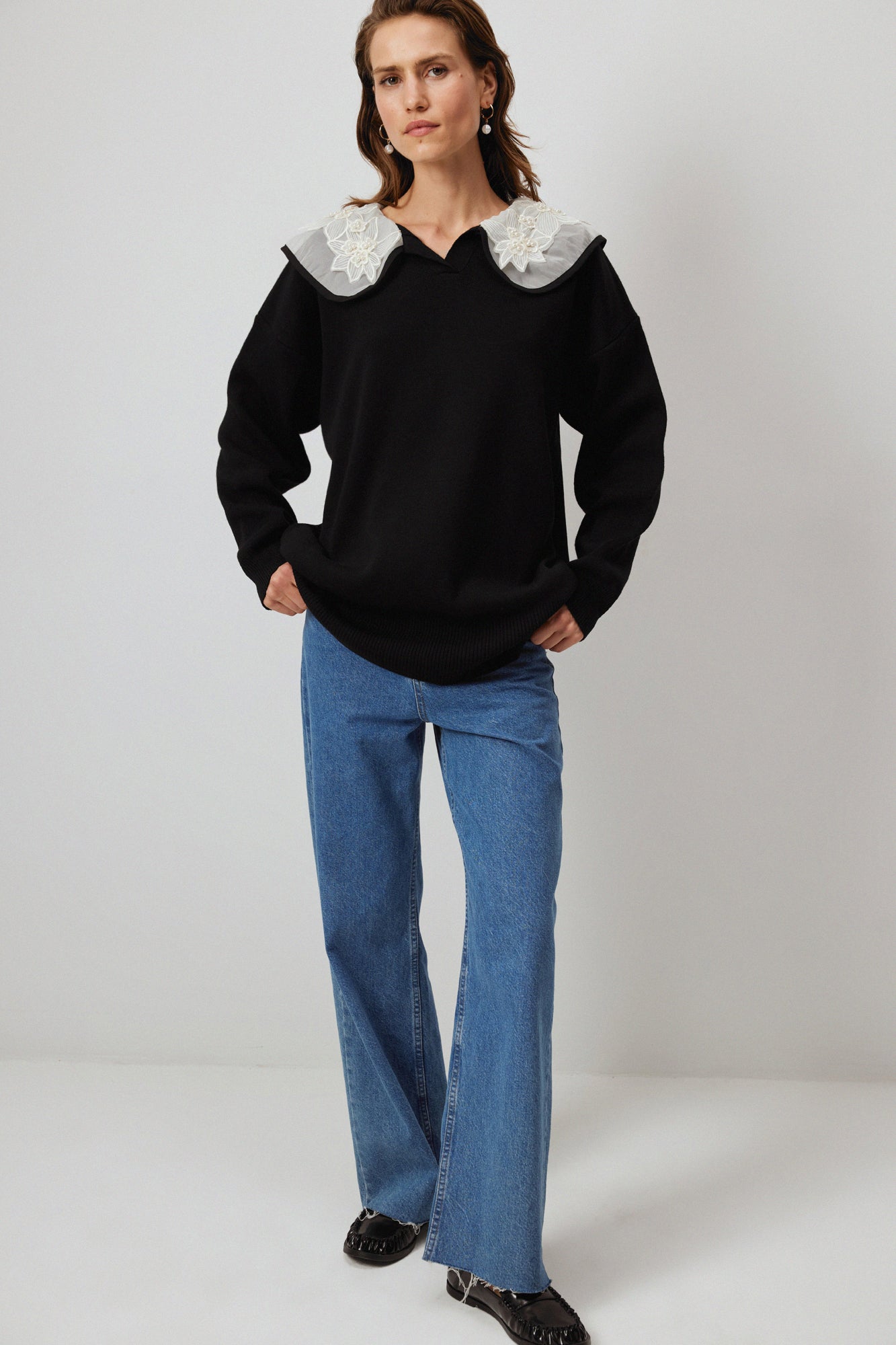 YAKASI İŞLEME DETAYLI TRİKO KAZAK