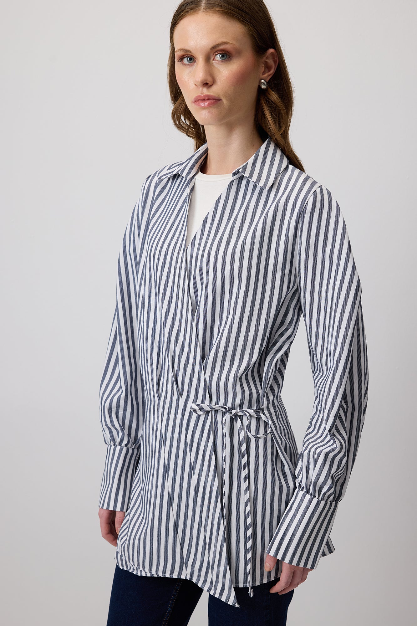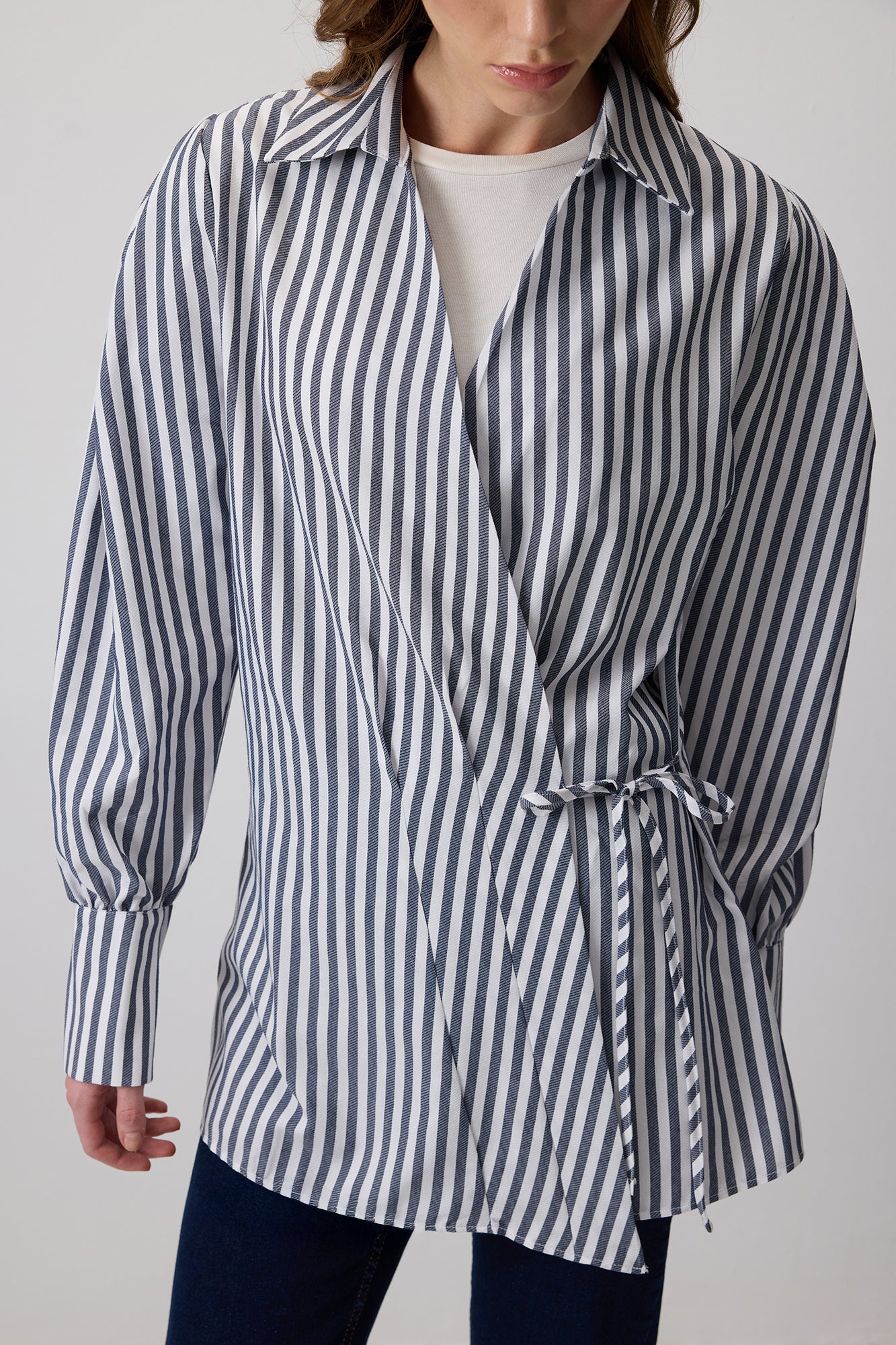 YANDAN BAĞLAMALI ÇİZGİLİ GÖMLEK