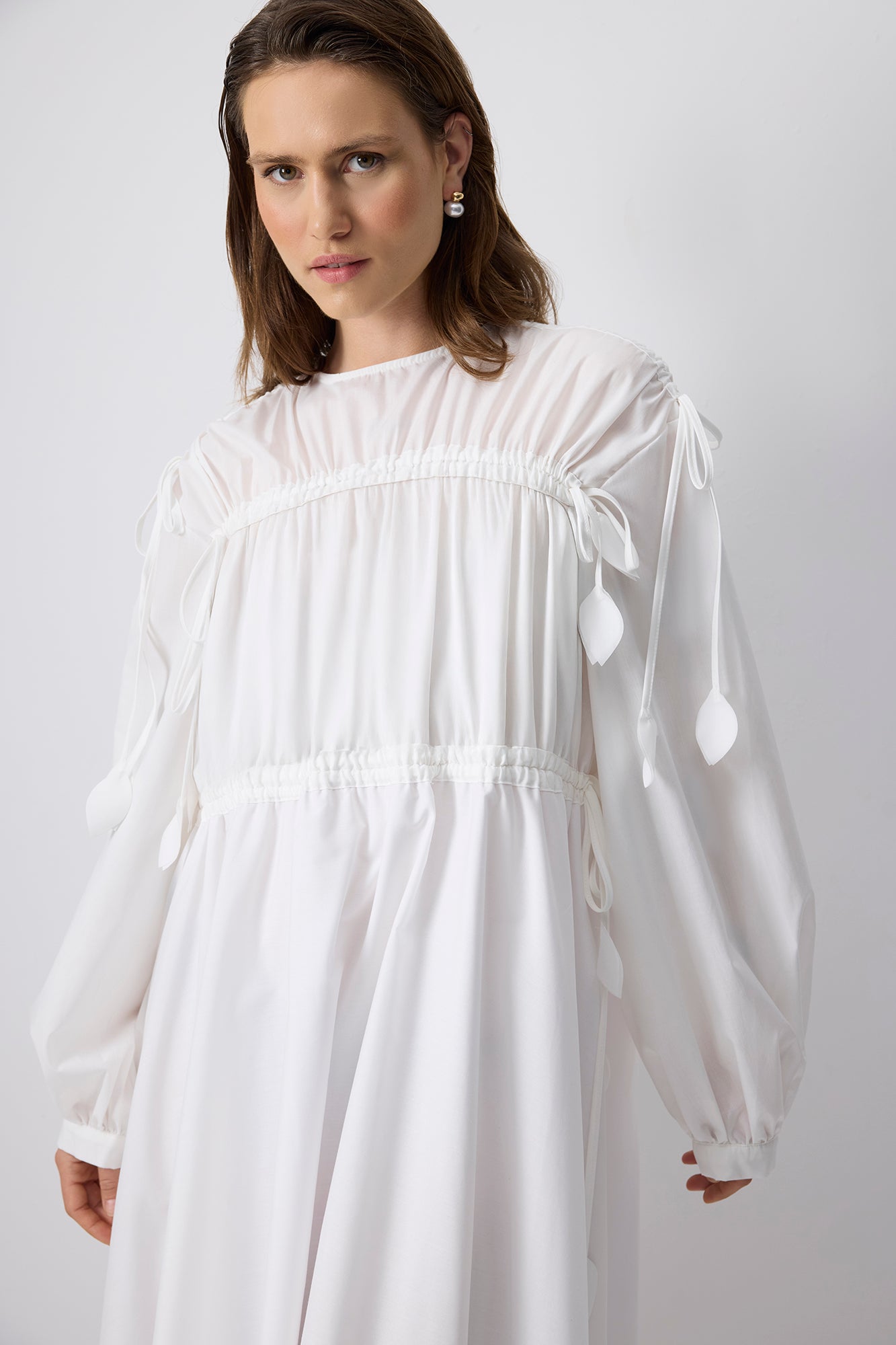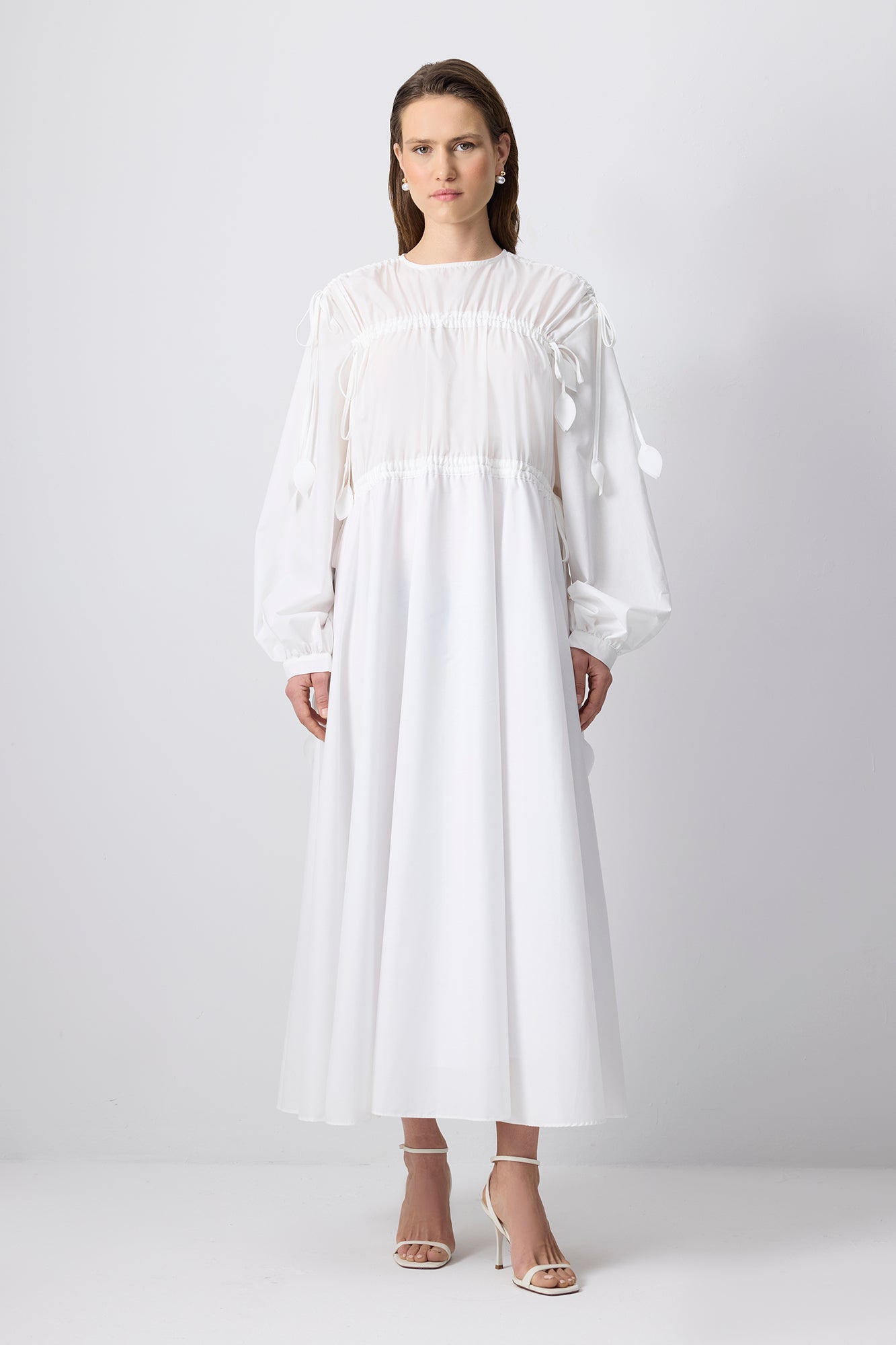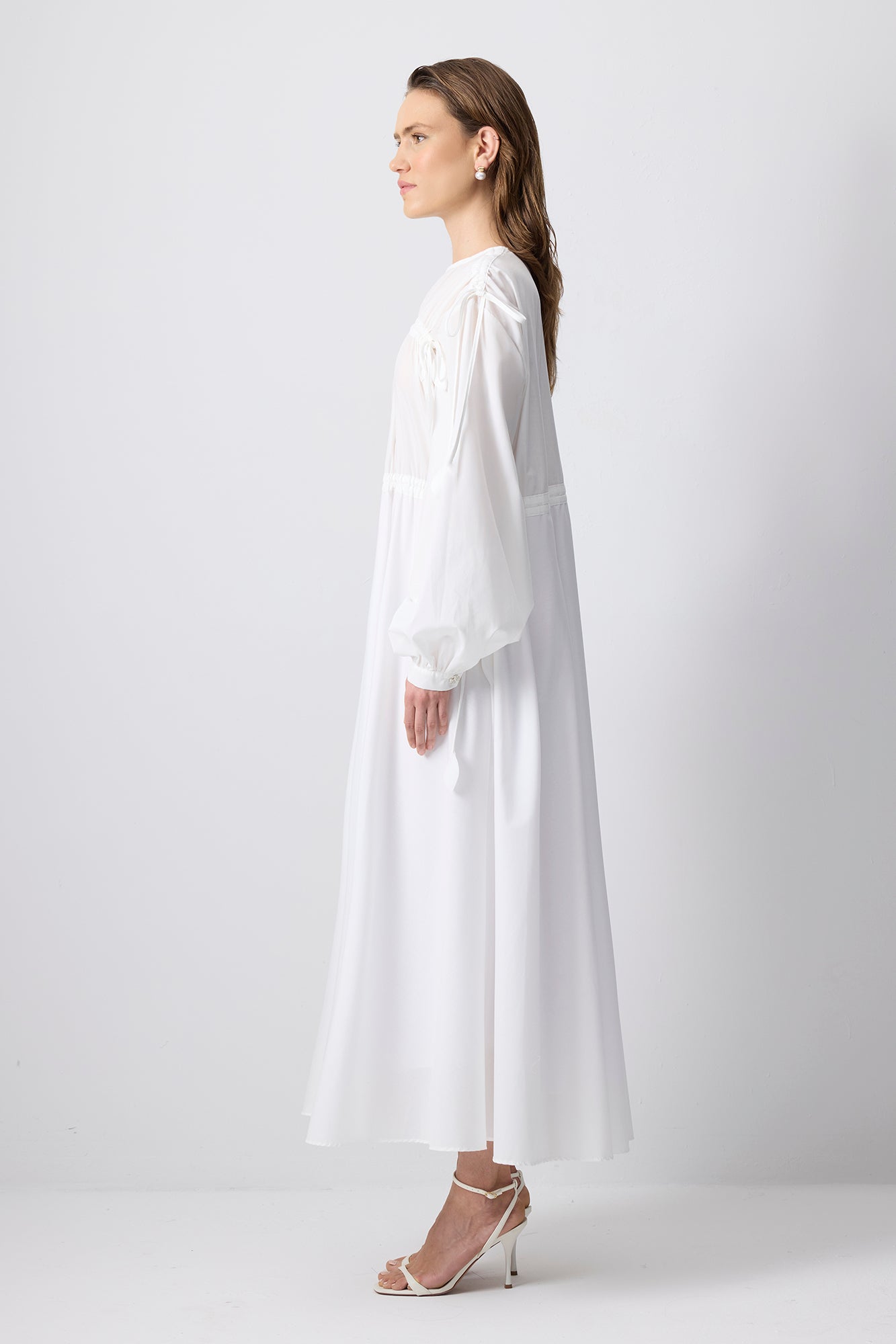 YAPRAK DETAYLI BİYELİ ELBİSE